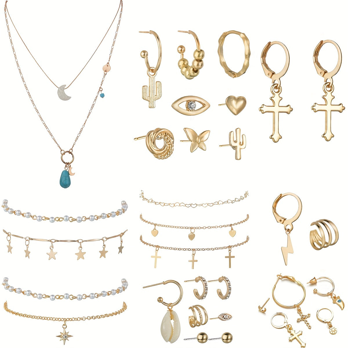 This vintage style jewelry set includes devil eye, cross, and heart designs, perfect for daily wear. Mix and match different pieces for a unique look.