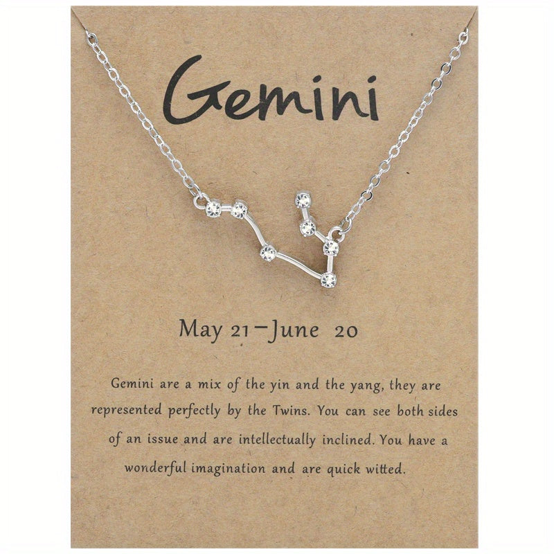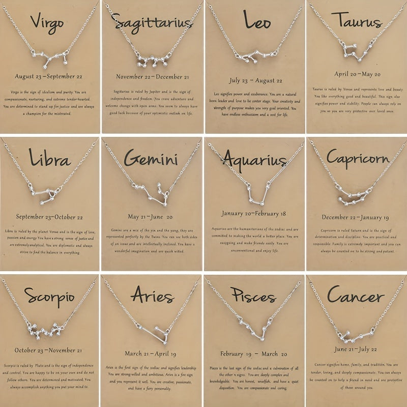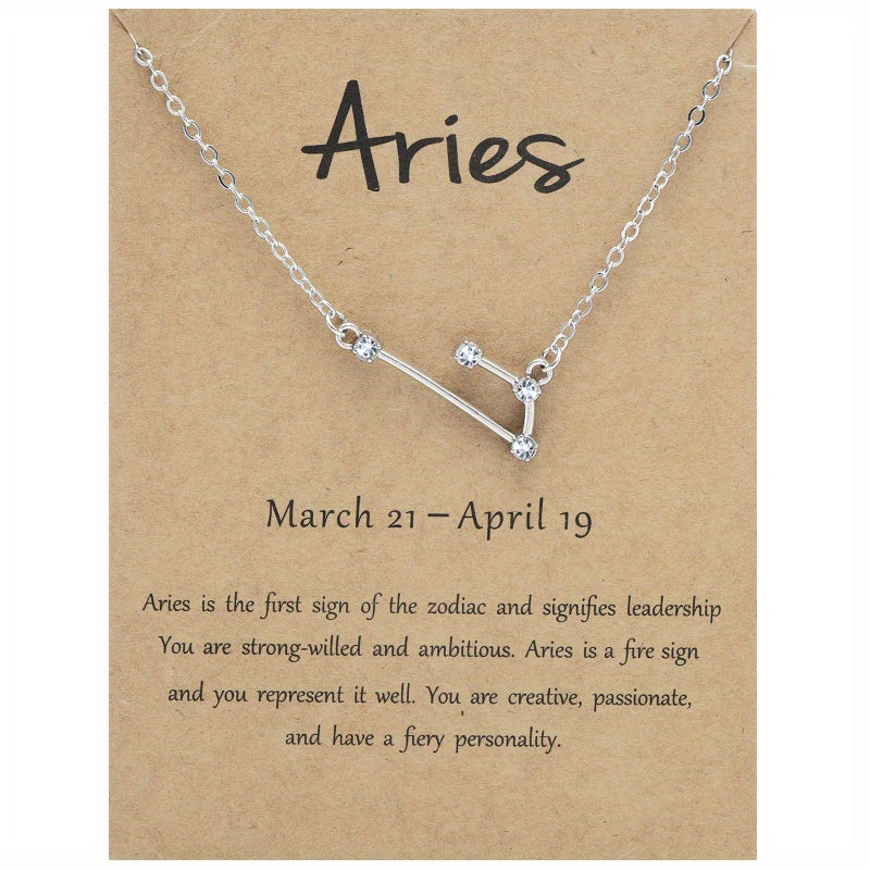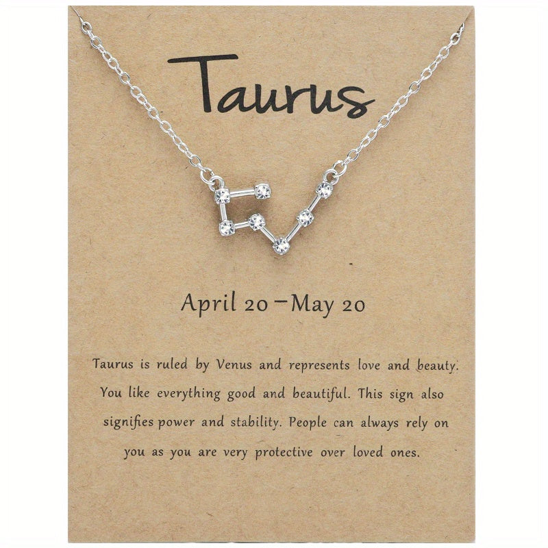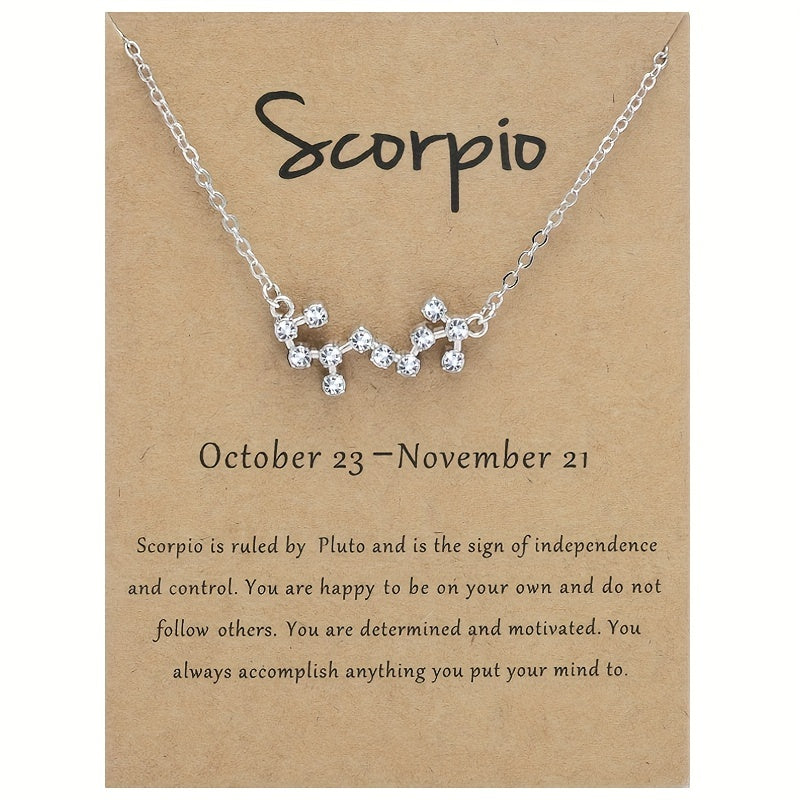 Beautifully crafted necklace with the twelve constellation chart pendant featuring inlaid rhinestones. A cross-border fashion accessory that showcases your zodiac sign in style.