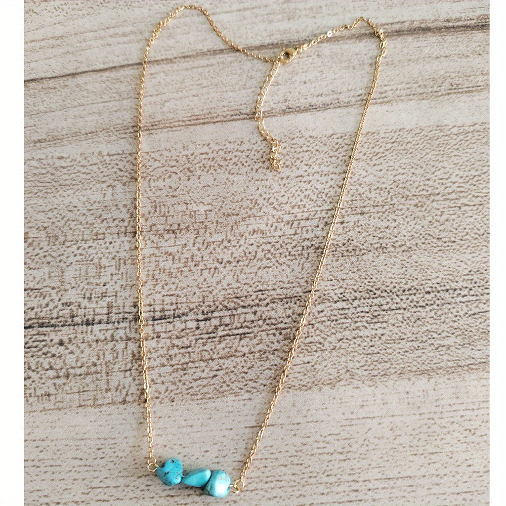 18K Plated Chain Choker Turquoise Bar Necklace Gemstone Jewelry