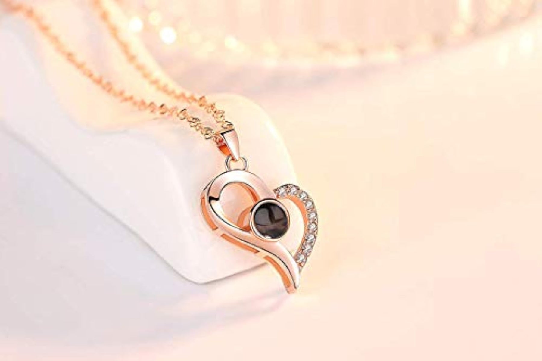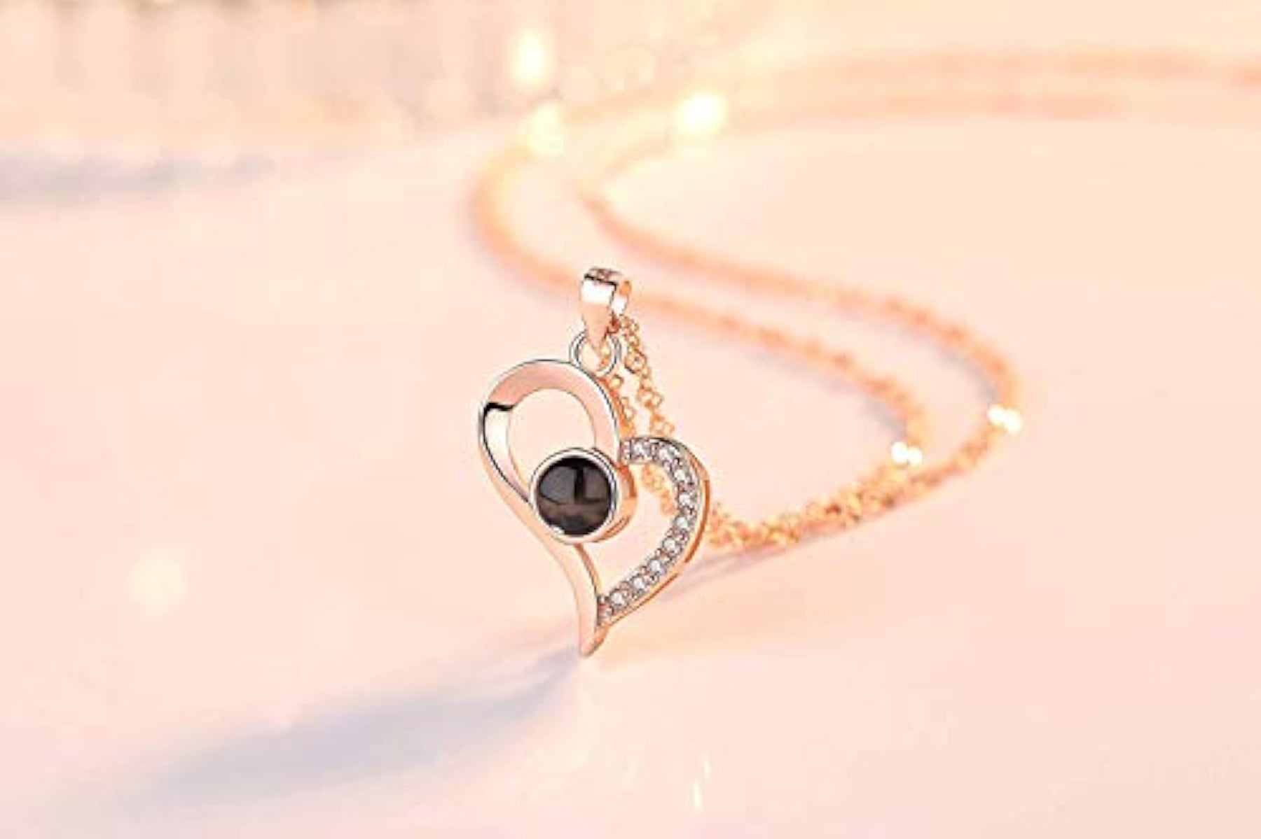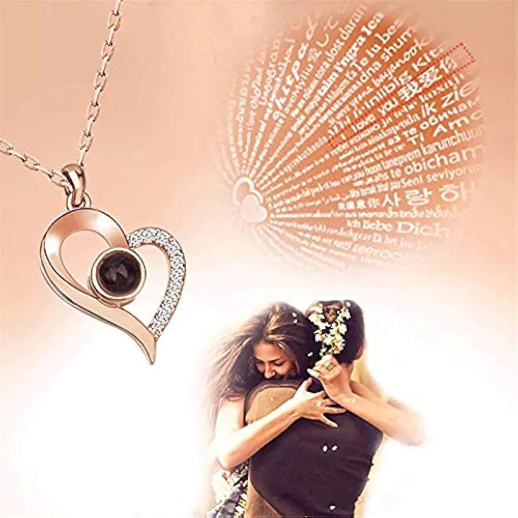 Express your love with this stylish heart pendant chain that says 'I love you' in 100 different languages. Perfect for Valentine's Day or any special occasion.