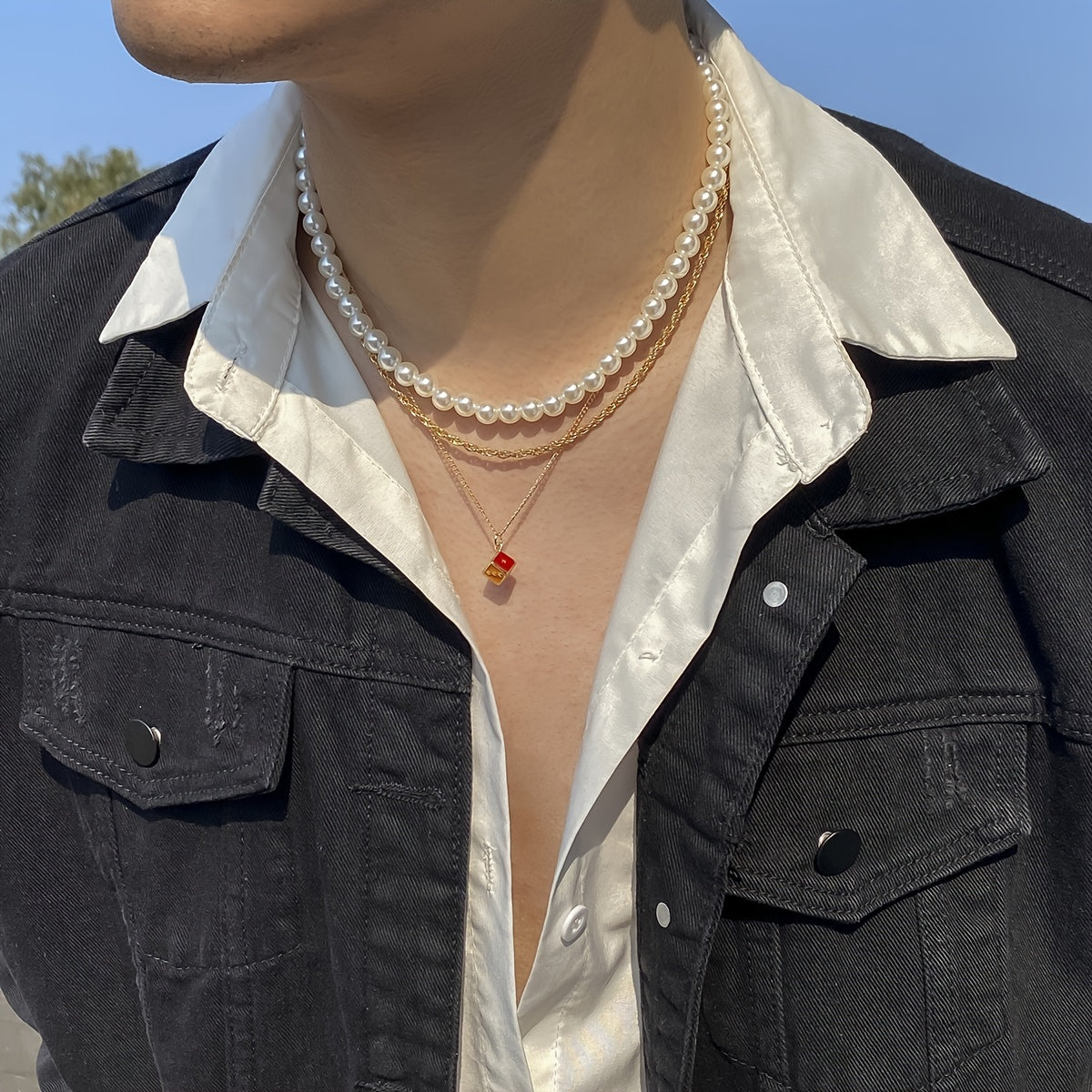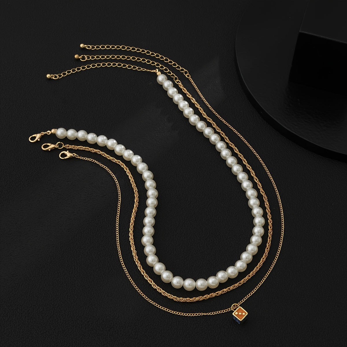 3pcs Dripping Oil Dice Pearl Necklaces Set