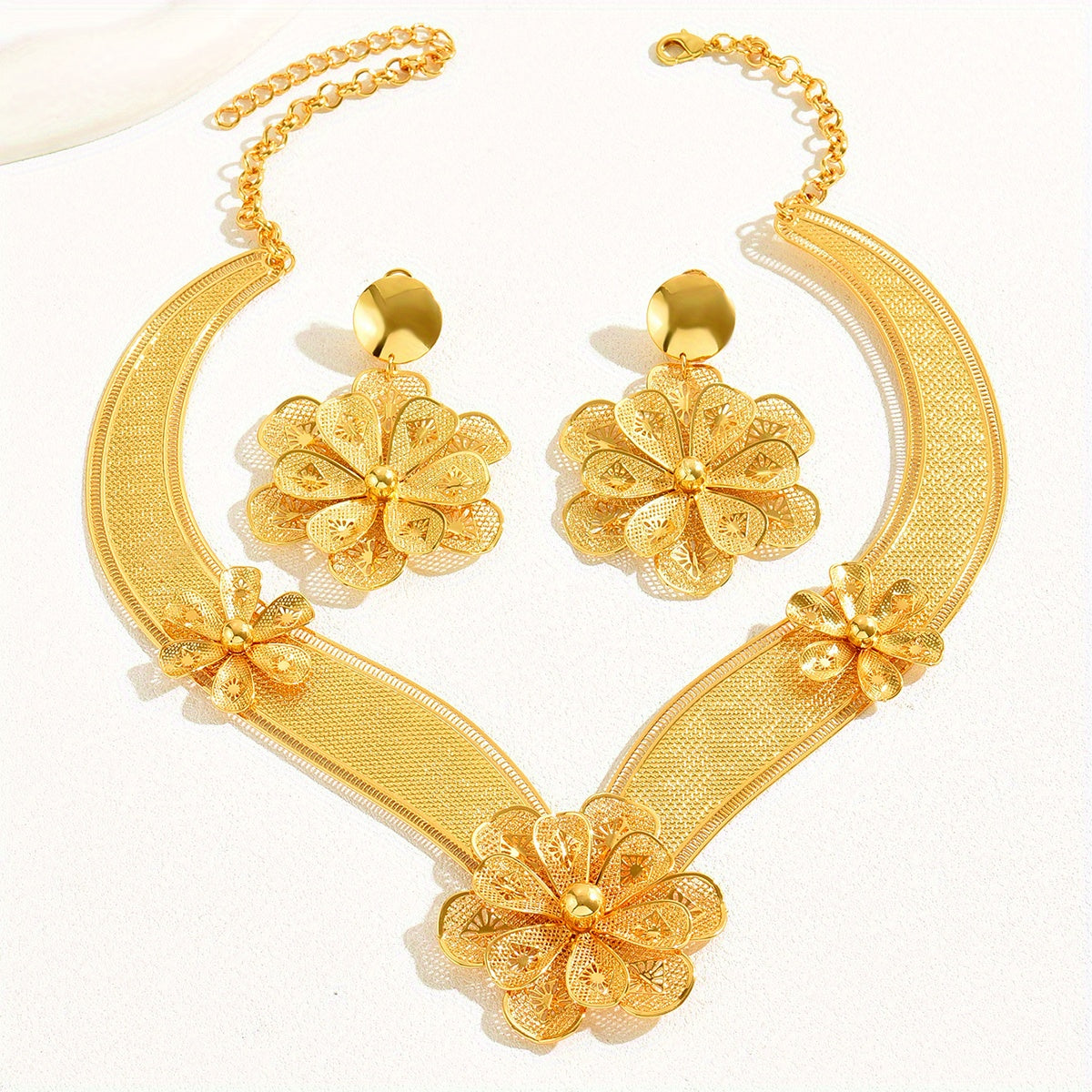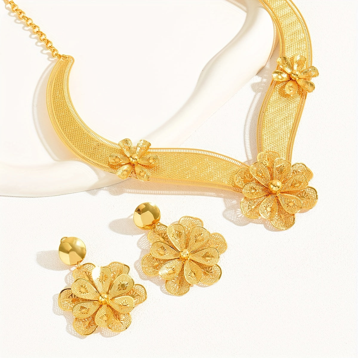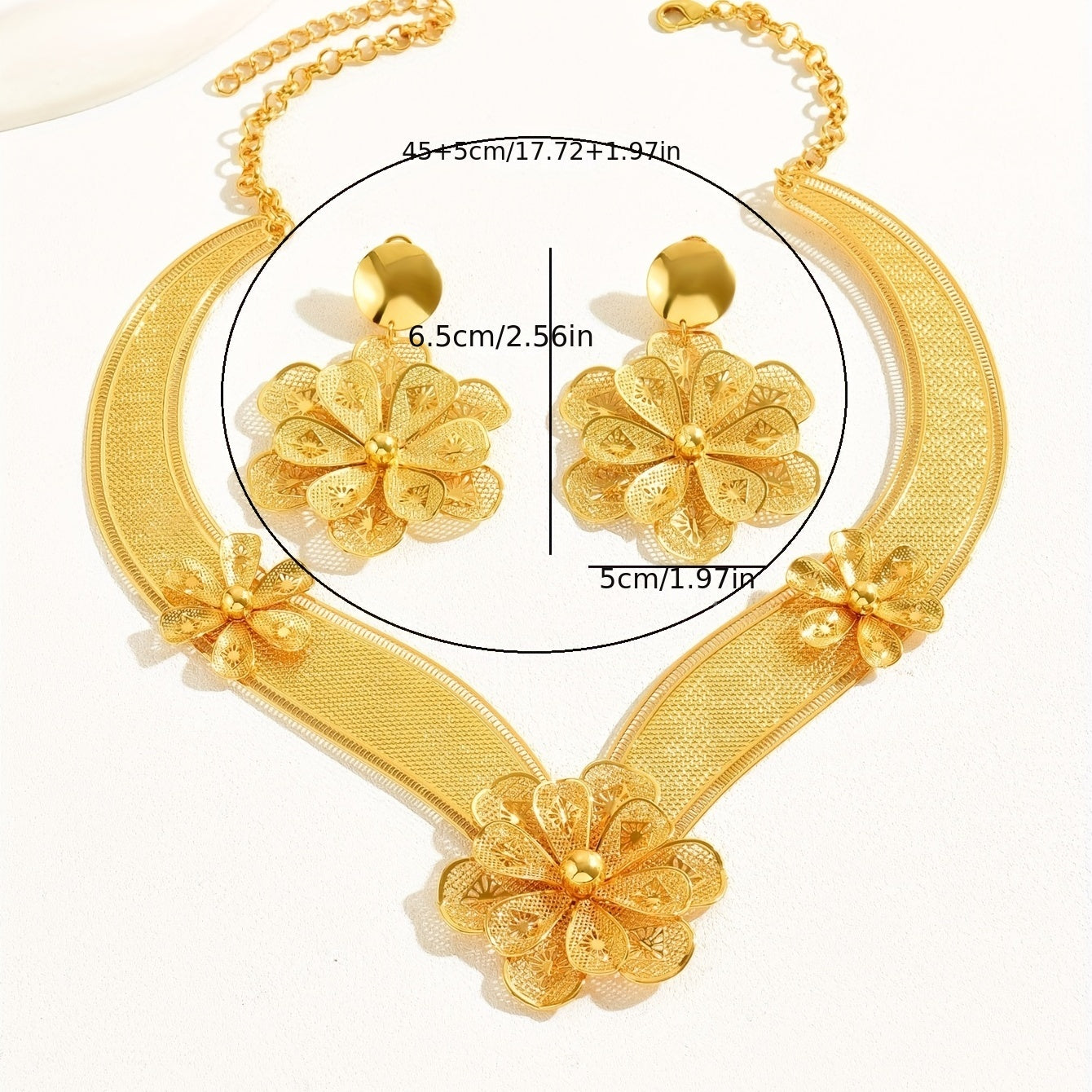 Complete your daily outfits with this 3-piece jewelry set including earrings and necklace. The dainty flower design adds a touch of elegance. Ideal for gifting during Christmas.