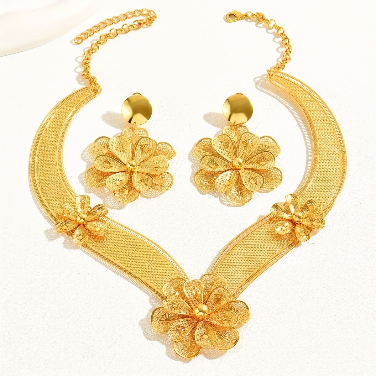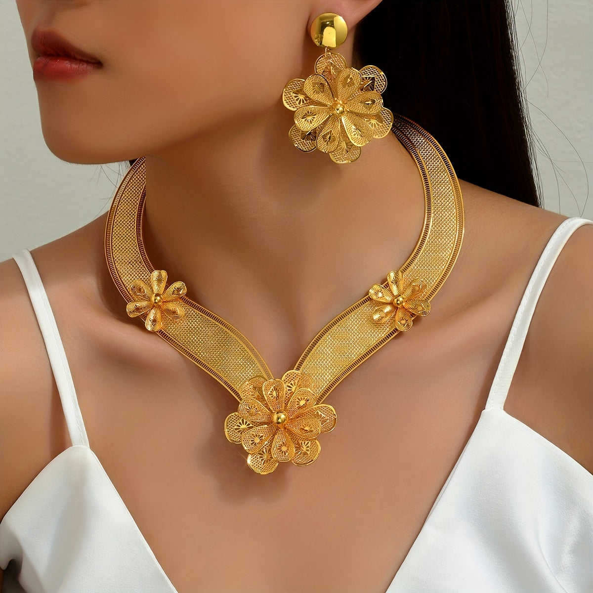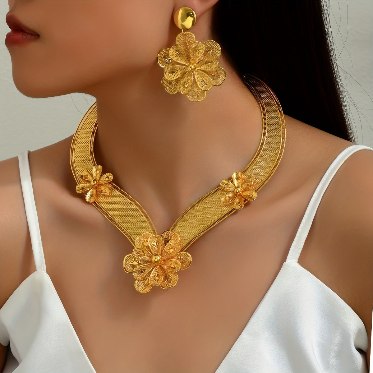 Complete your daily outfits with this 3-piece jewelry set including earrings and necklace. The dainty flower design adds a touch of elegance. Ideal for gifting during Christmas.