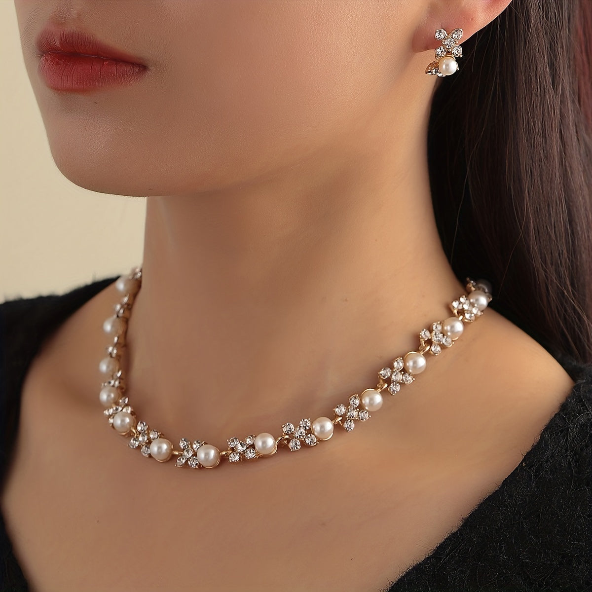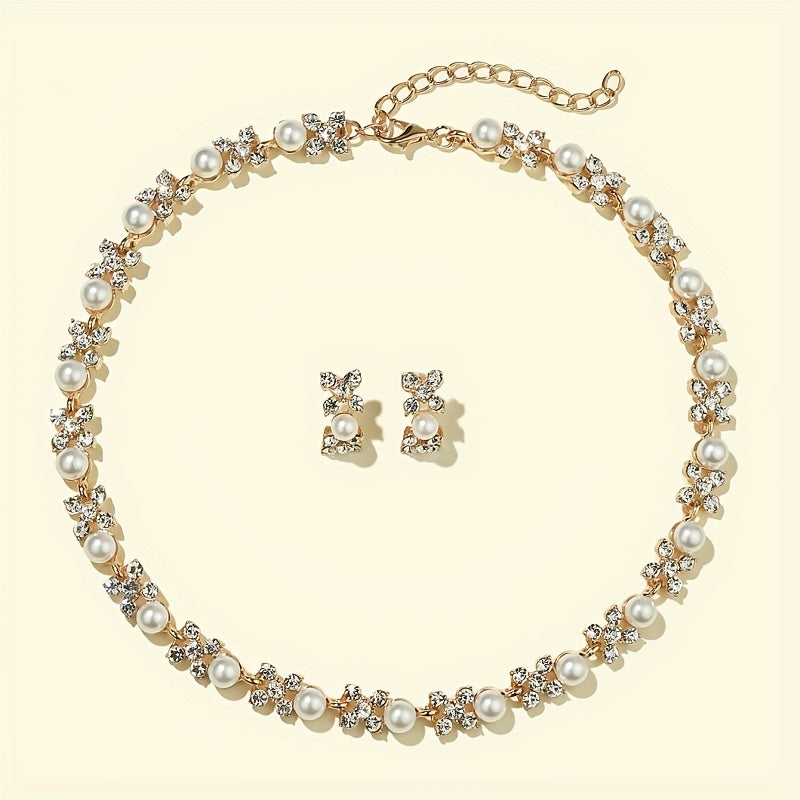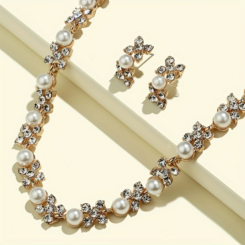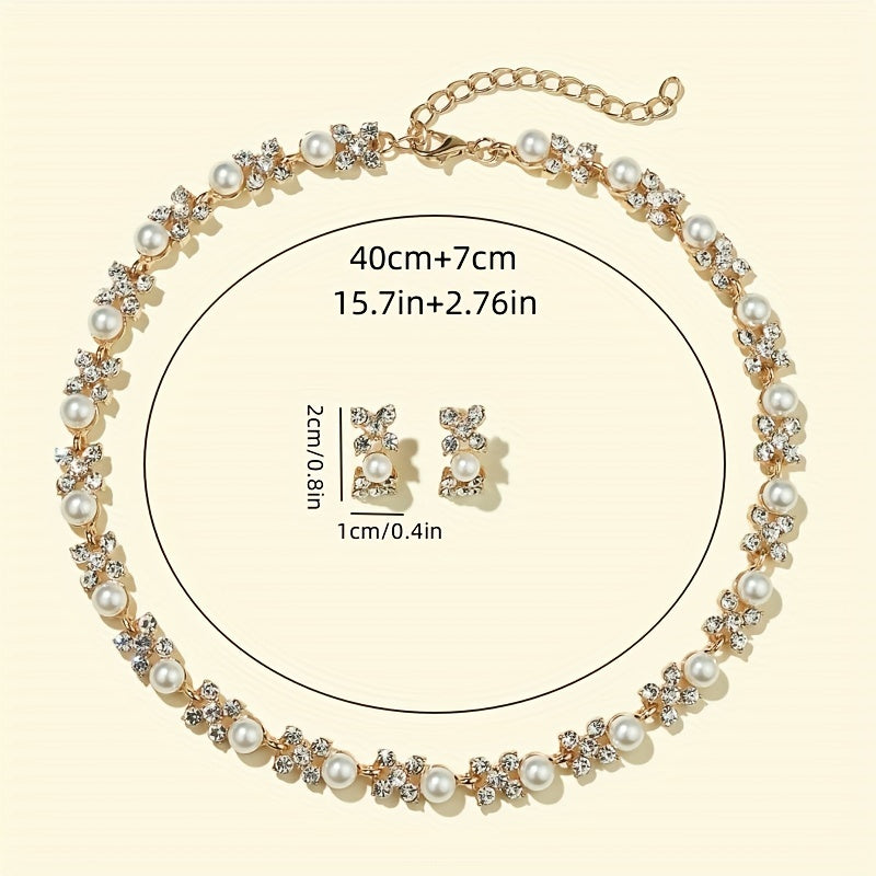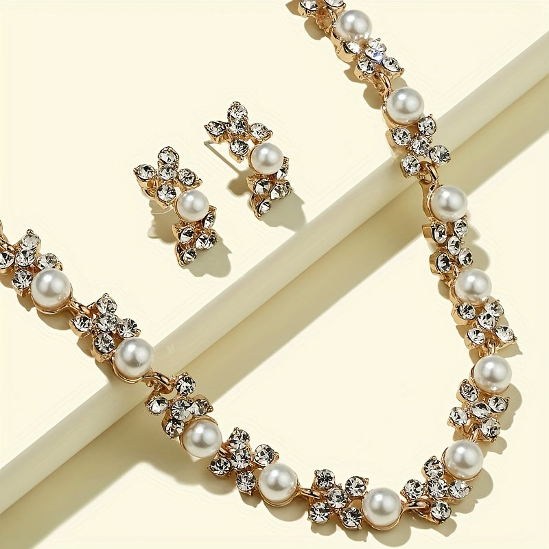 Complete your evening party look with this elegant 3-piece jewelry set featuring inlaid rhinestone and milky stone. Perfect for a dainty birthday gift for females.