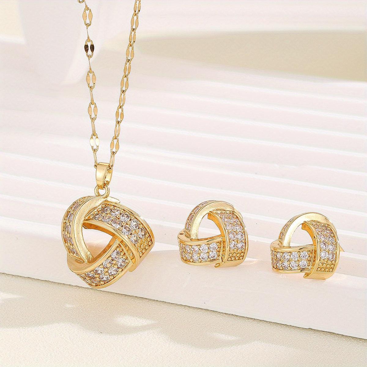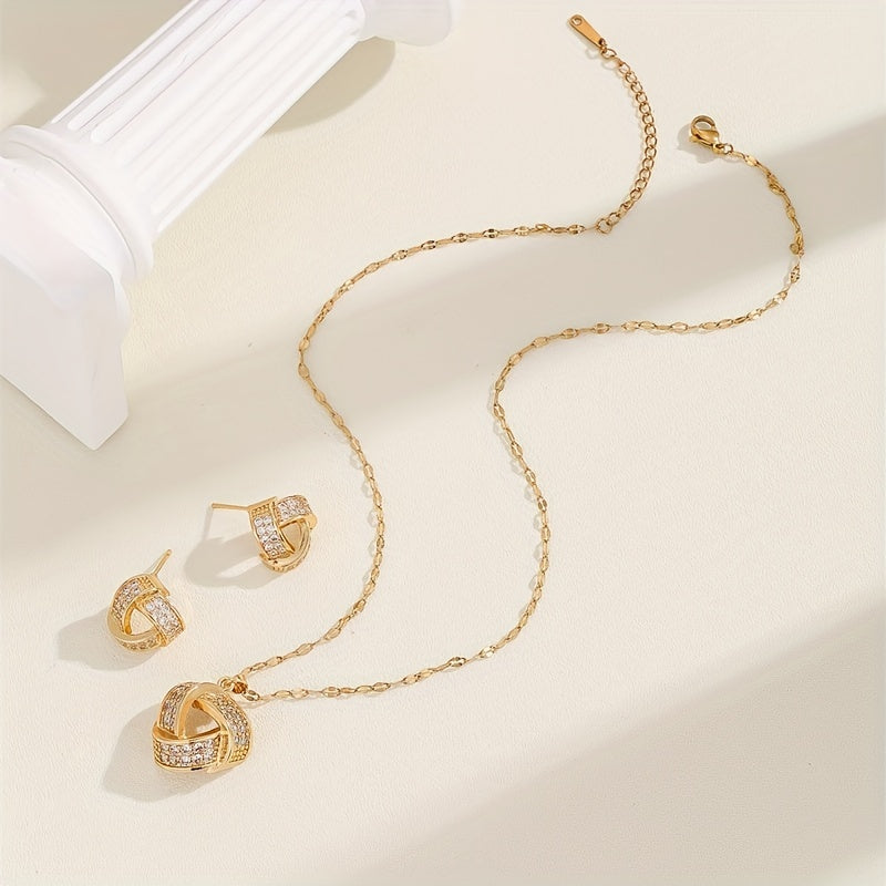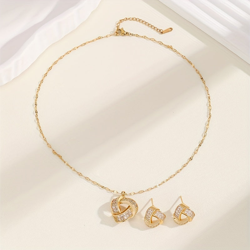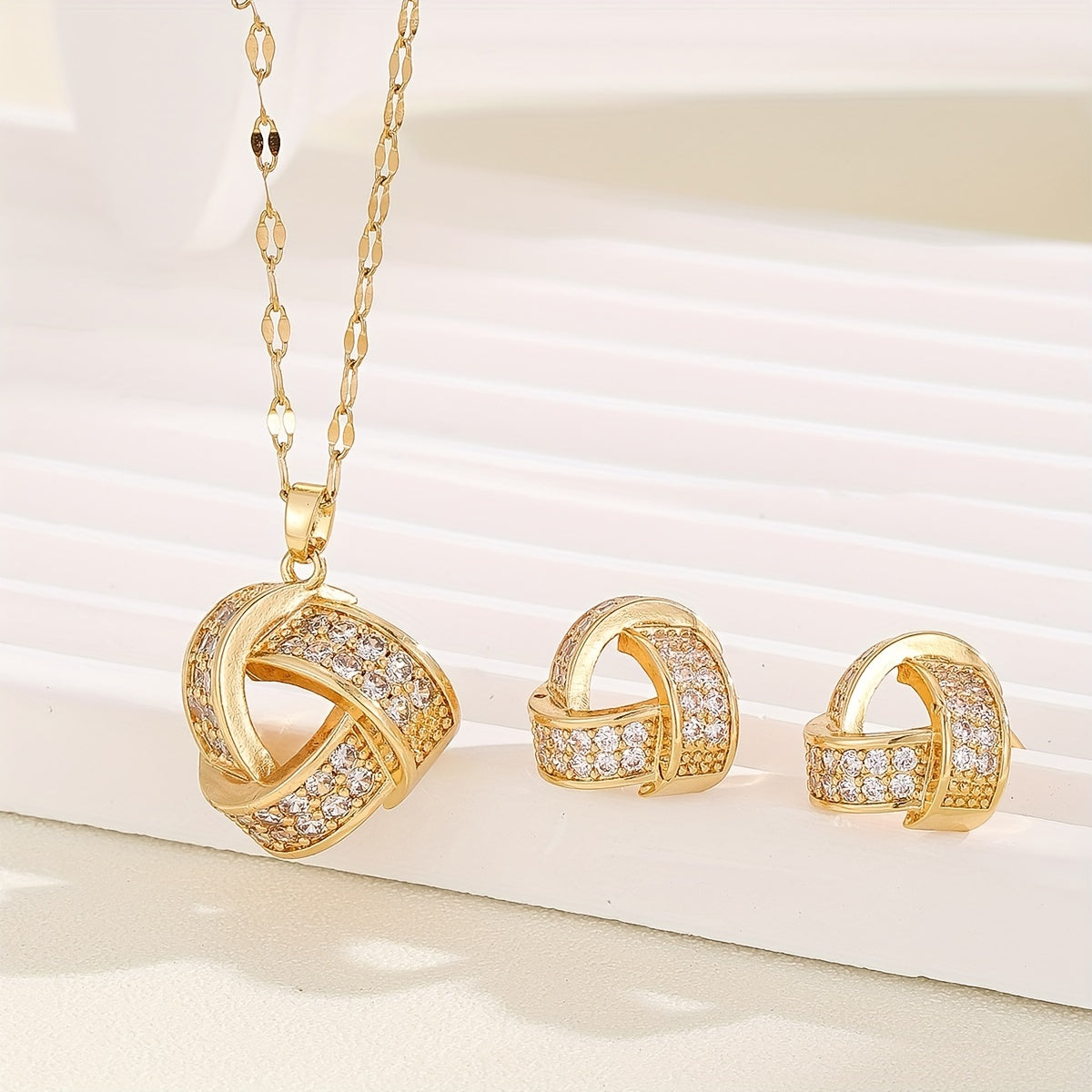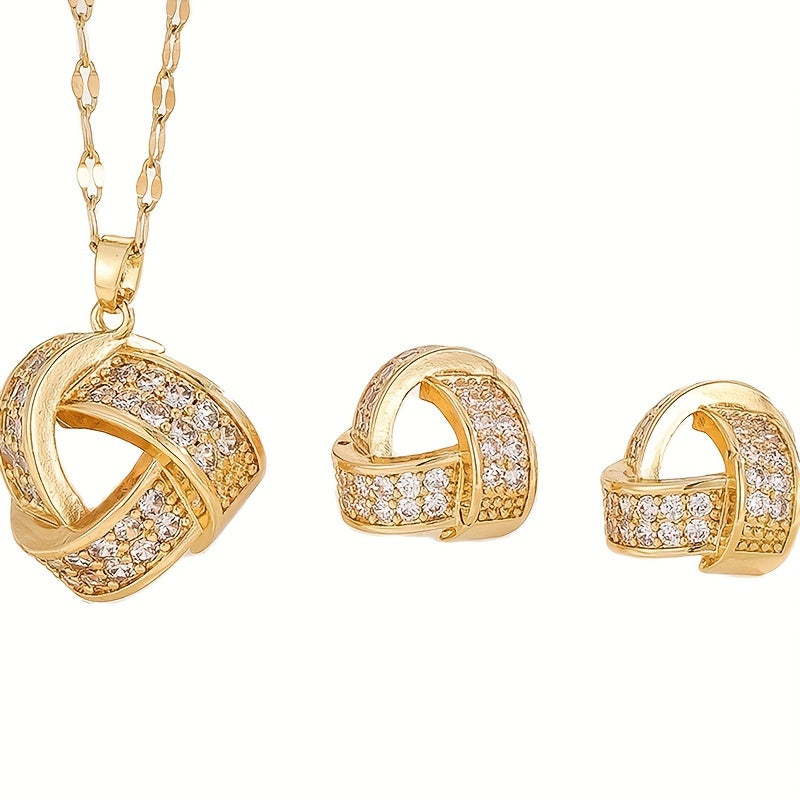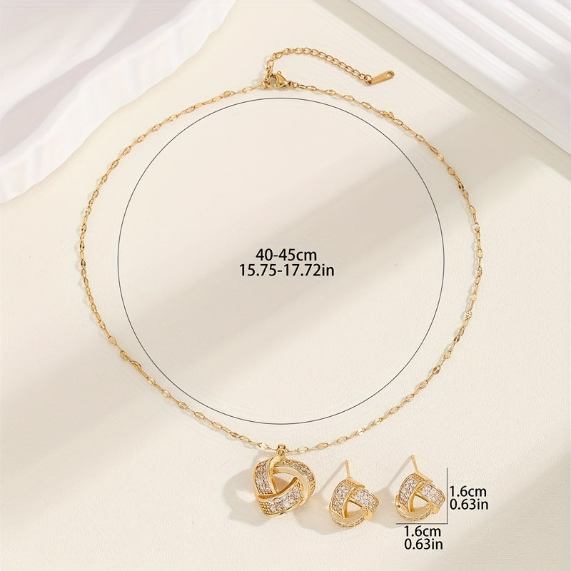 Add a touch of elegance to your look with this 3-piece jewelry set featuring earrings and necklace. Crafted with 18k gold plating and sparkling zircon inlay, this set is perfect for both daily wear and special occasions.