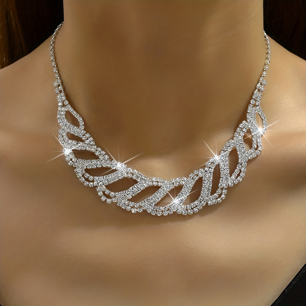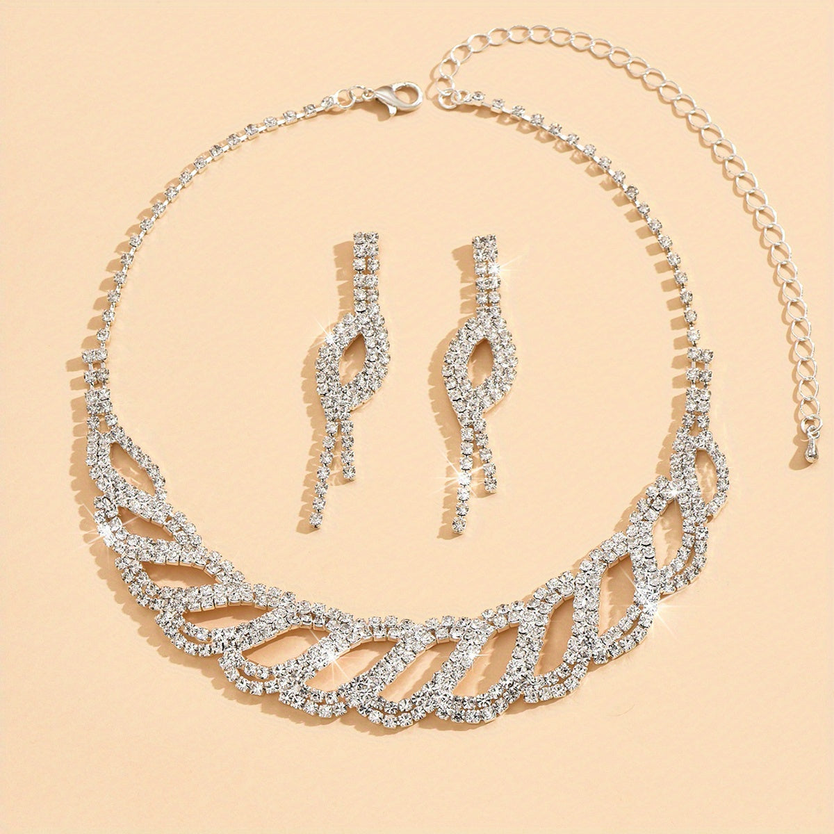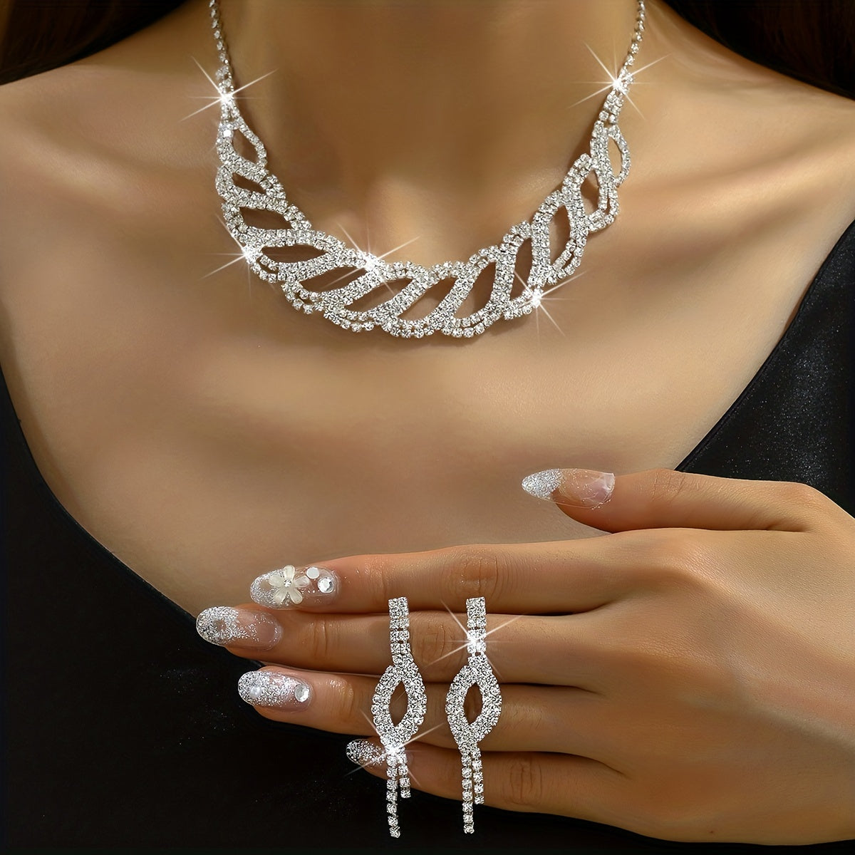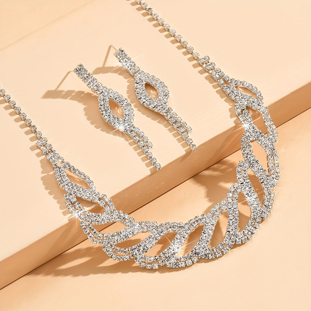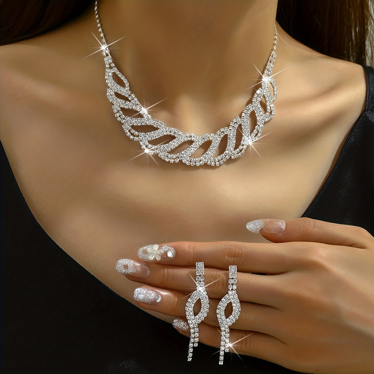 Complete your evening party look with this 3-piece jewelry set featuring dainty earrings and a necklace. The silver-plated design is accented with sparkling rhinestones for a touch of elegance.