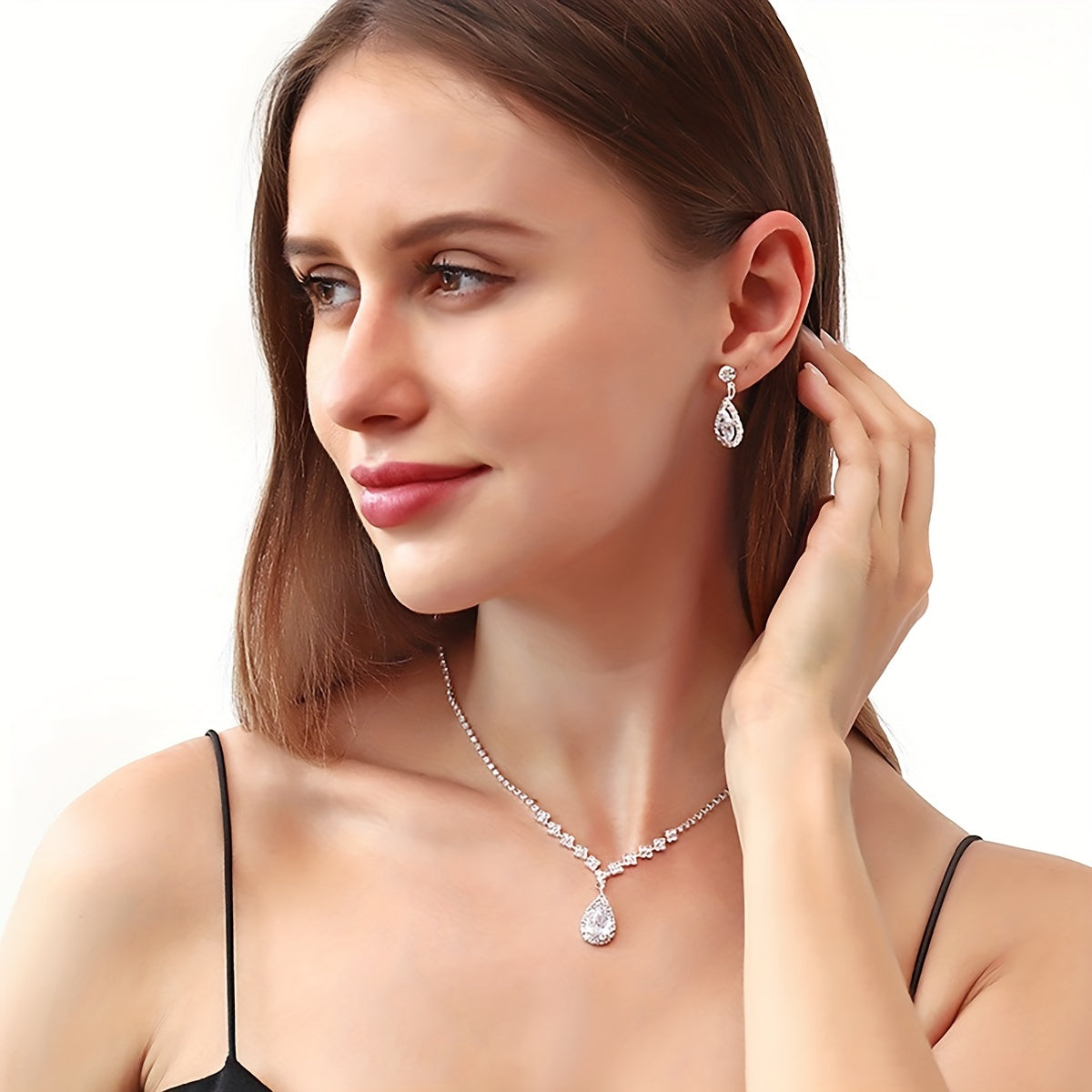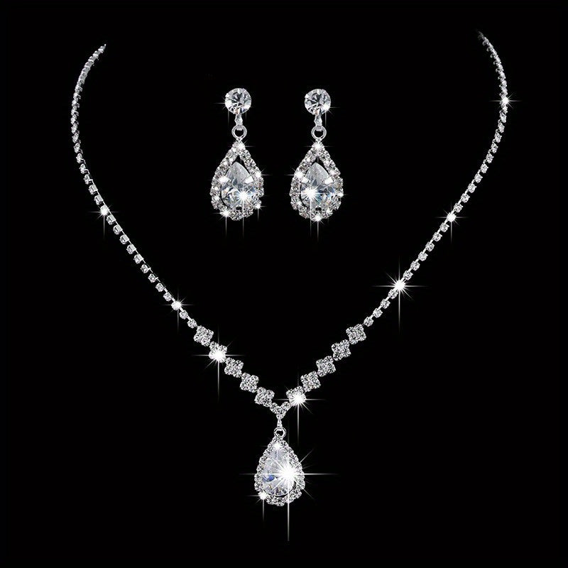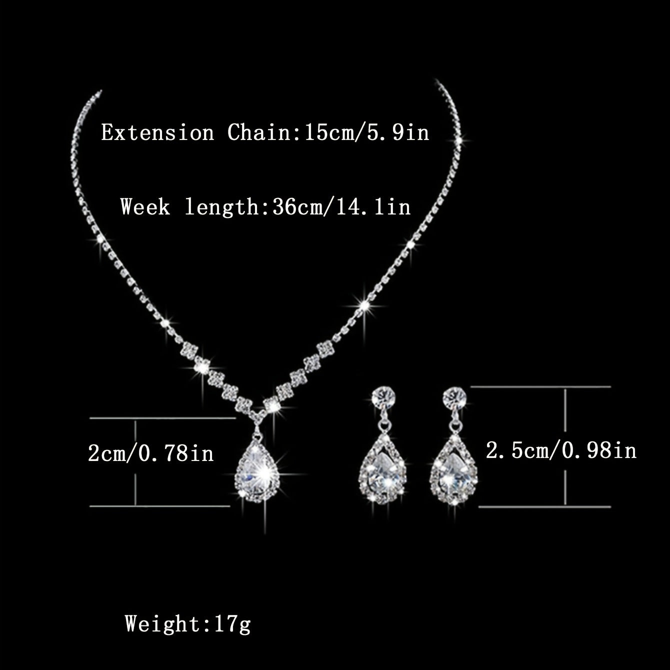 Complete your evening party look with this dainty jewelry set. The set includes a pair of earrings and a necklace, all silver plated and adorned with sparkling rhinestones. Makes a perfect birthday gift for her.