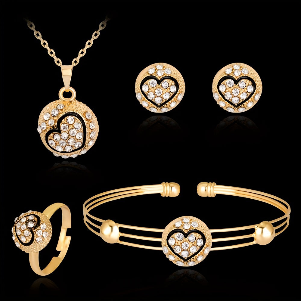 Complete your look with this dainty jewelry set featuring a necklace, bracelet, earrings, and a ring. Perfect for parties, birthdays, or Christmas gifts.