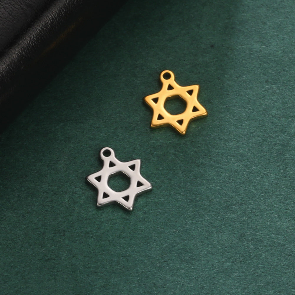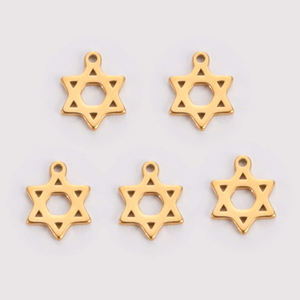 Enhance your jewelry making with these 5pcs Star Of David Triskele Cross Charms. Made of stainless steel, perfect for necklaces, bracelets, and Wicca accessories for men.