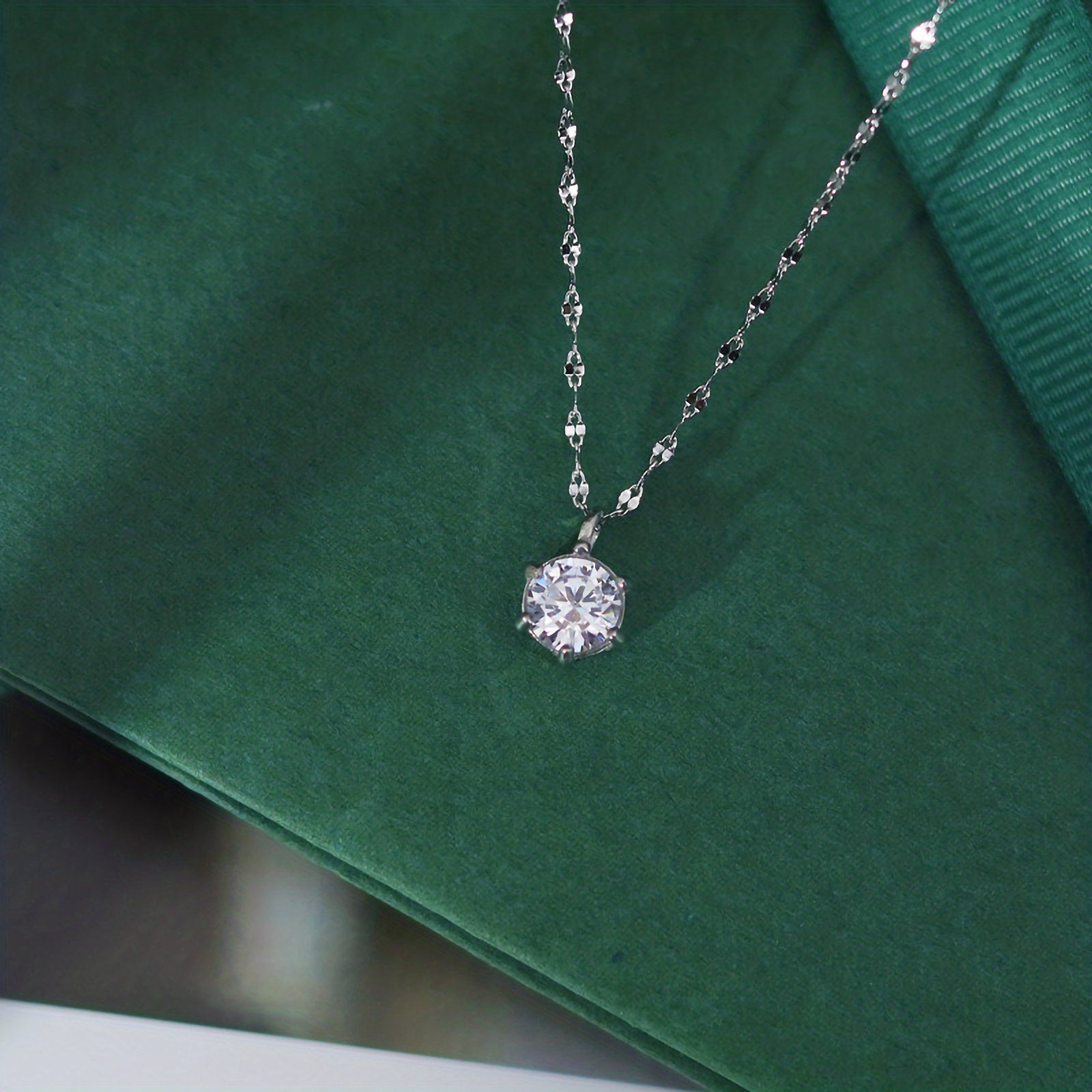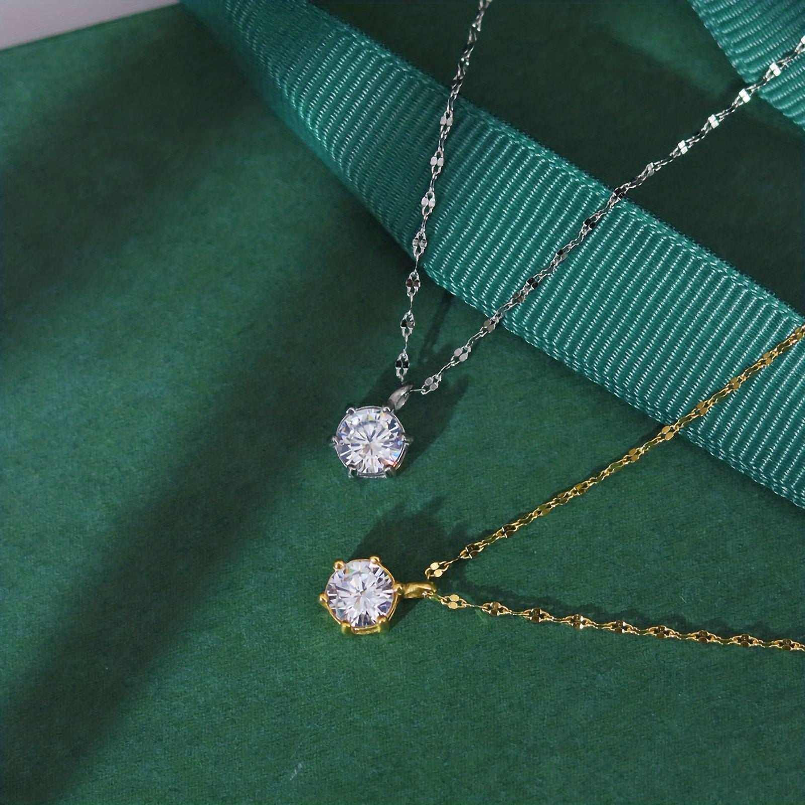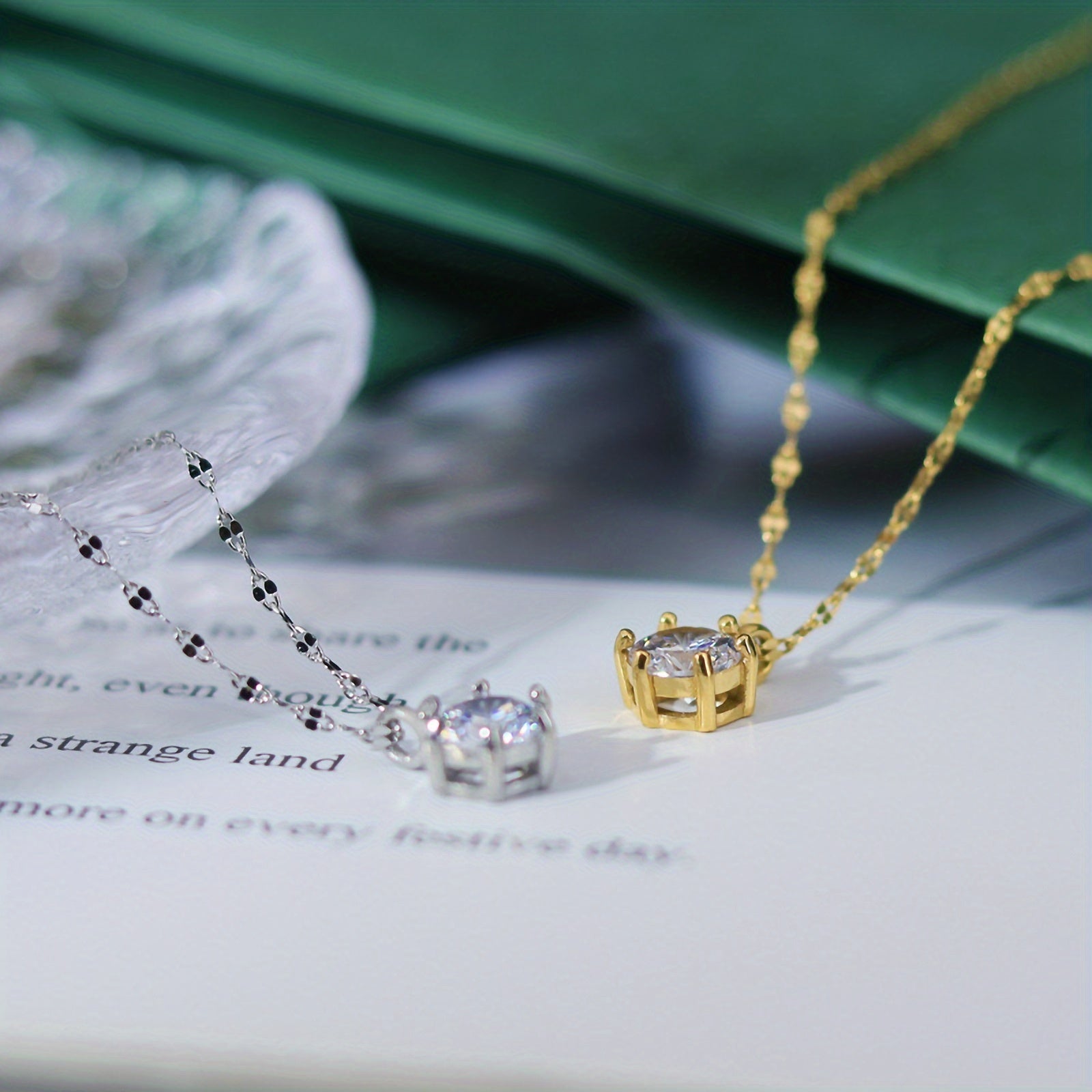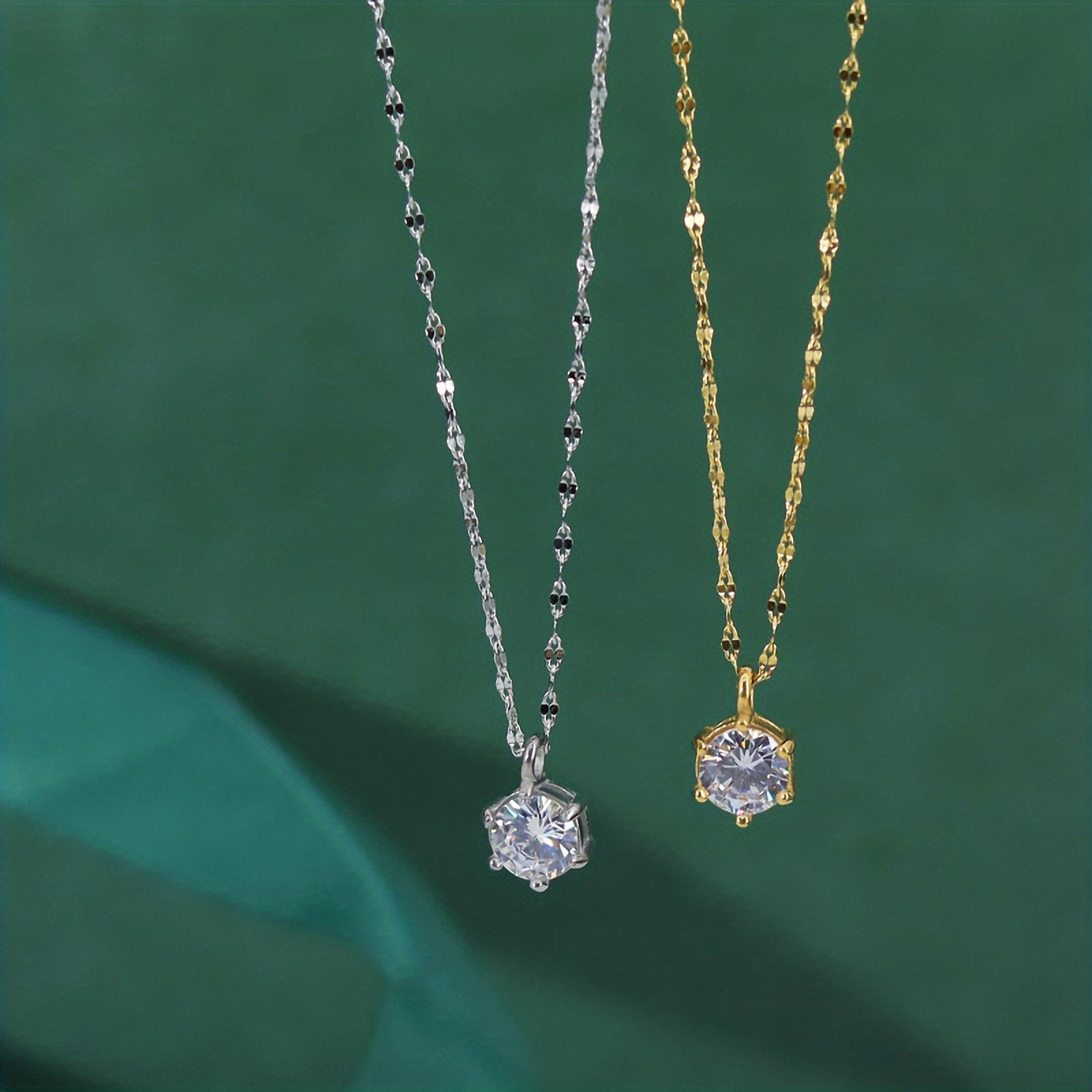 This elegant pendant necklace features 6 claws zircon petal design, made of stainless steel with 18K gold plating.