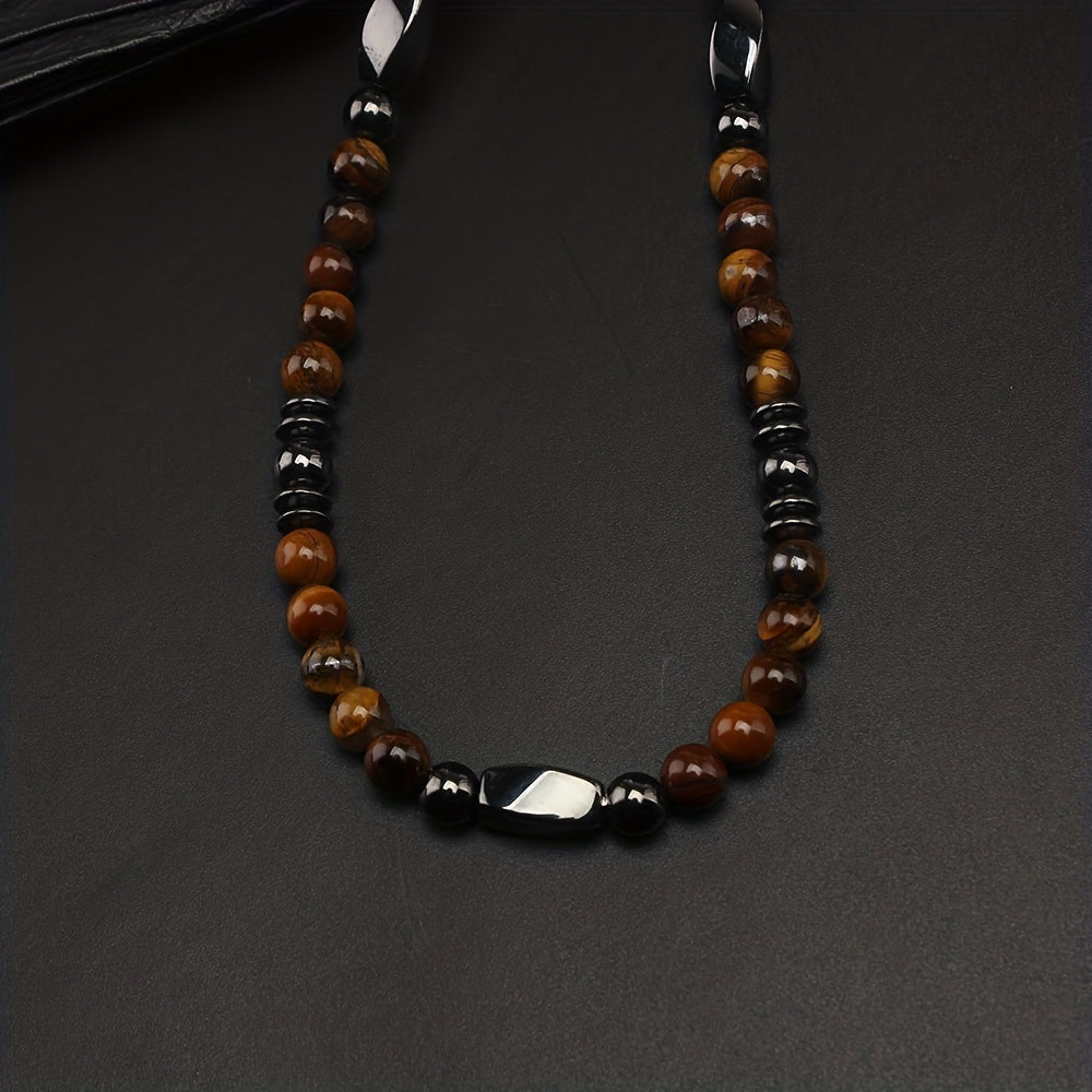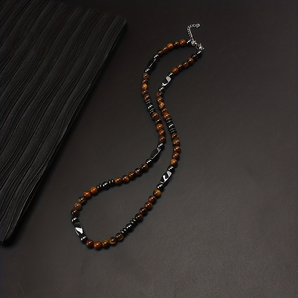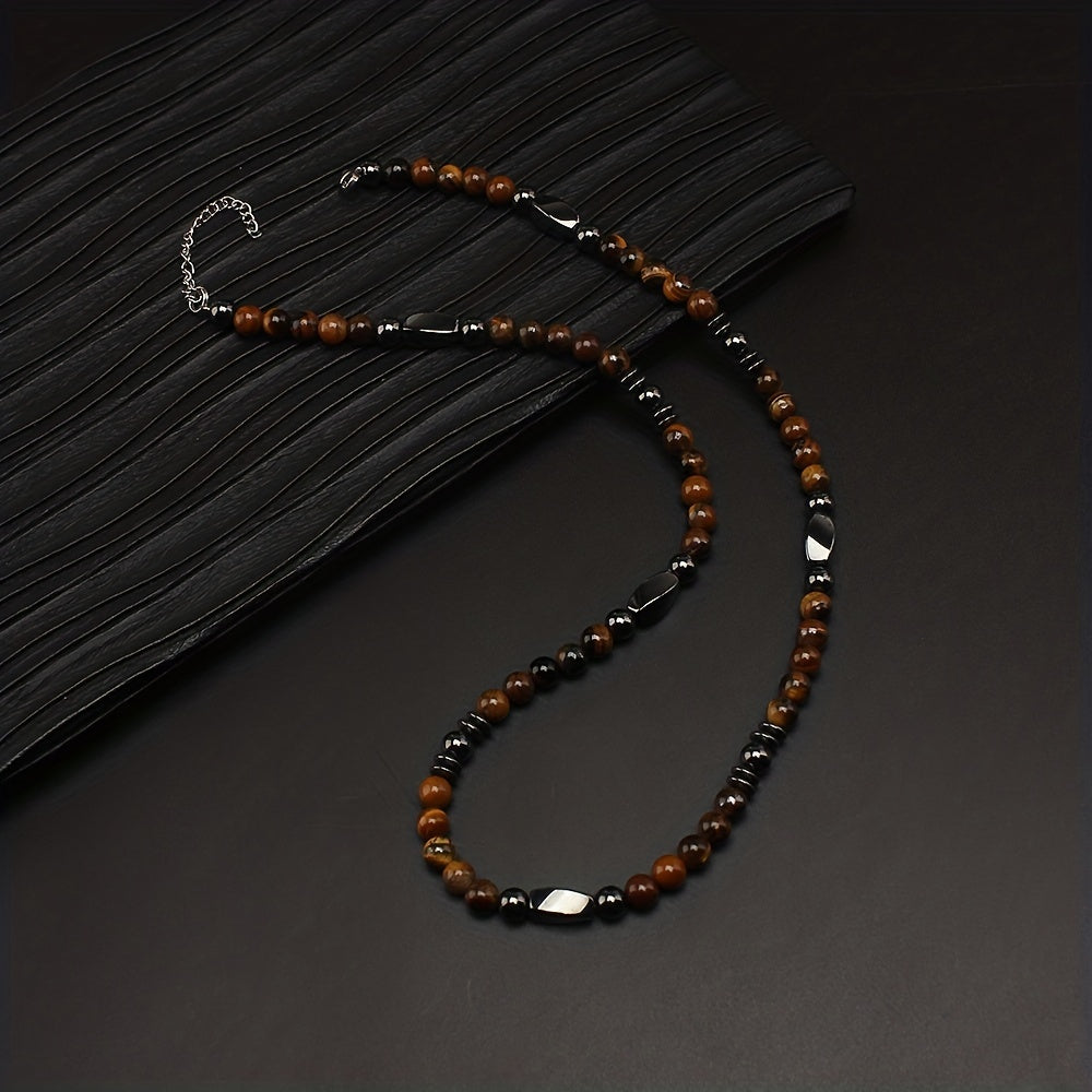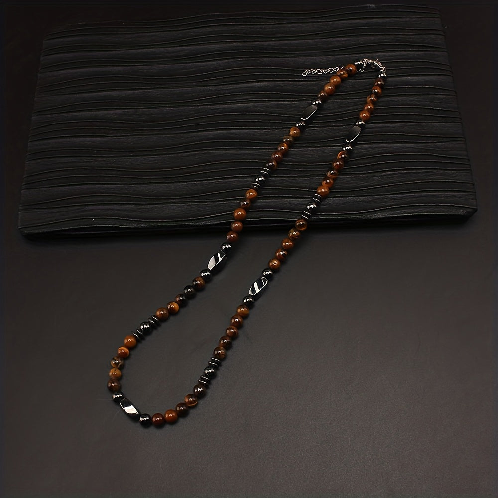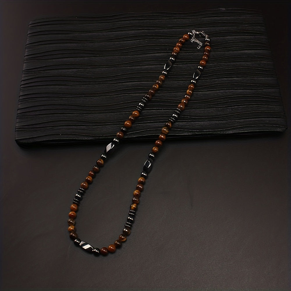 This stunning necklace features natural yellow Tiger's Eye beads, known for their gallstone four sided design. Perfect for men's jewelry collection.