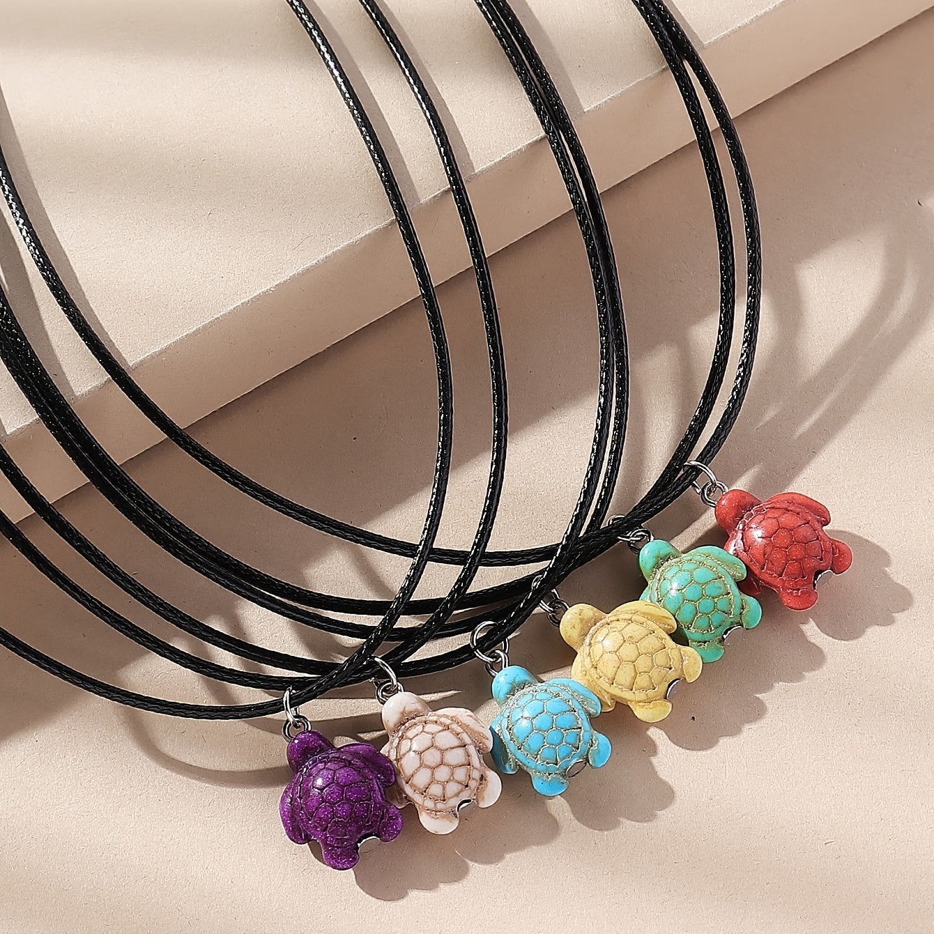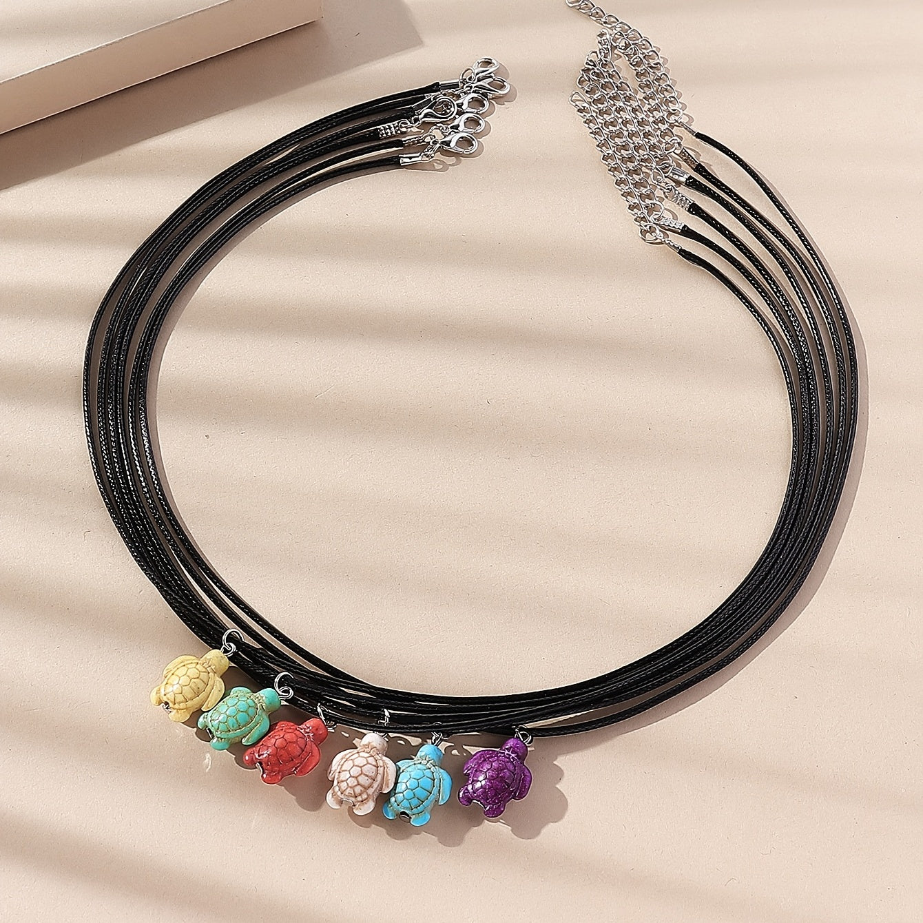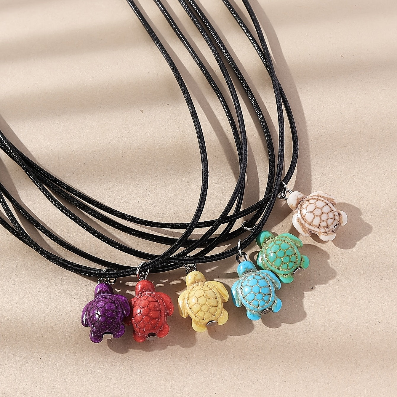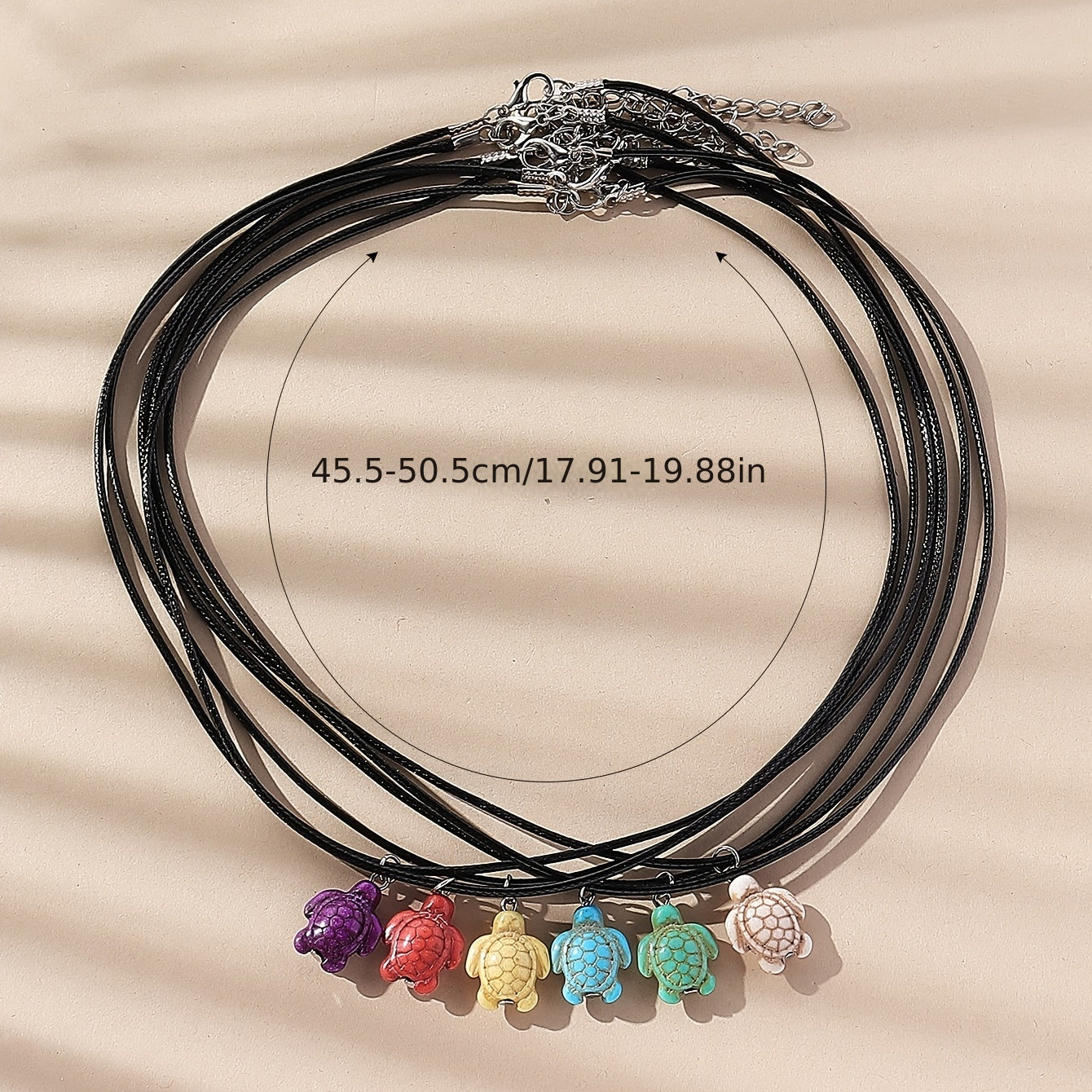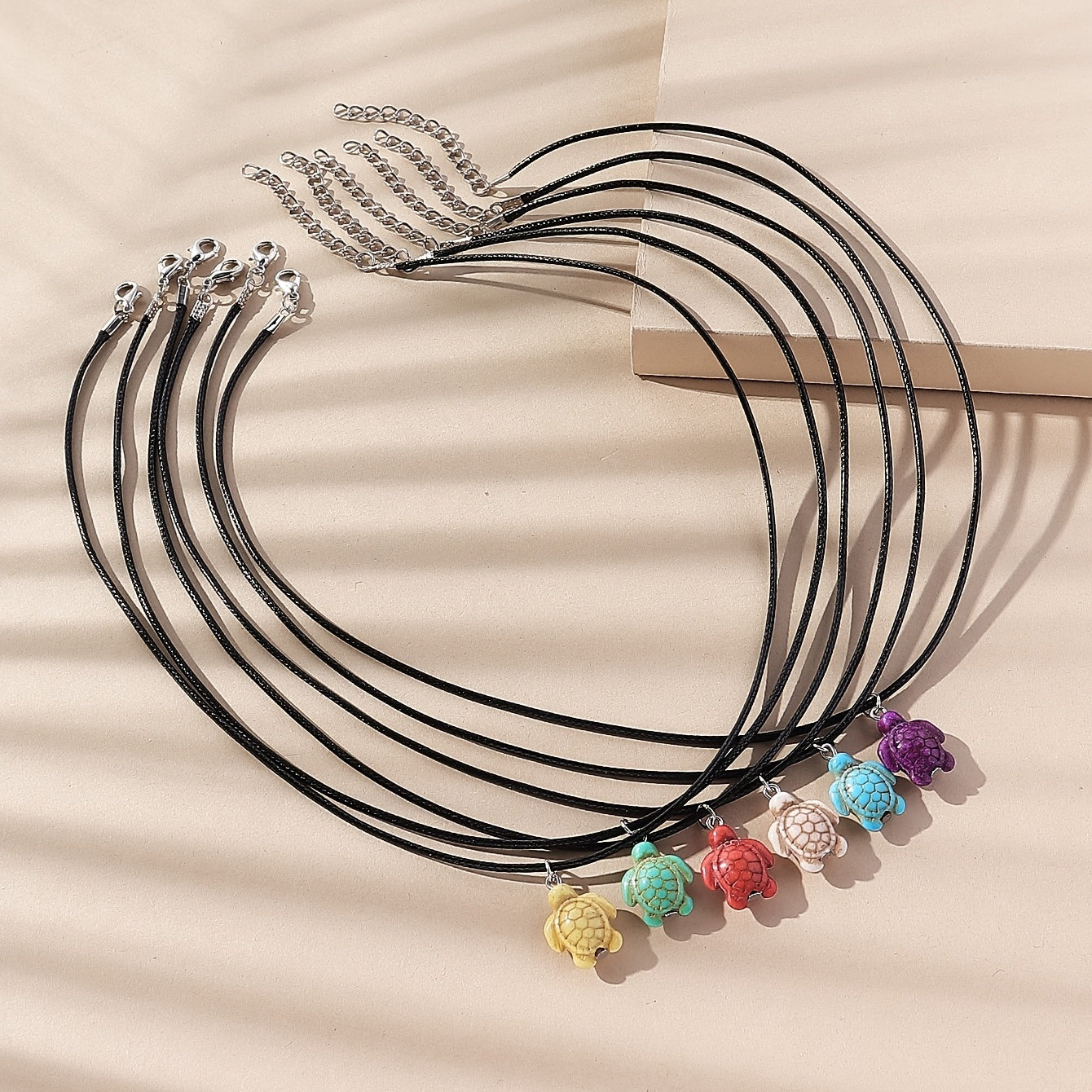 6pcs Pine Stone Lucky Turtle Rope Necklace Women's Jewelry