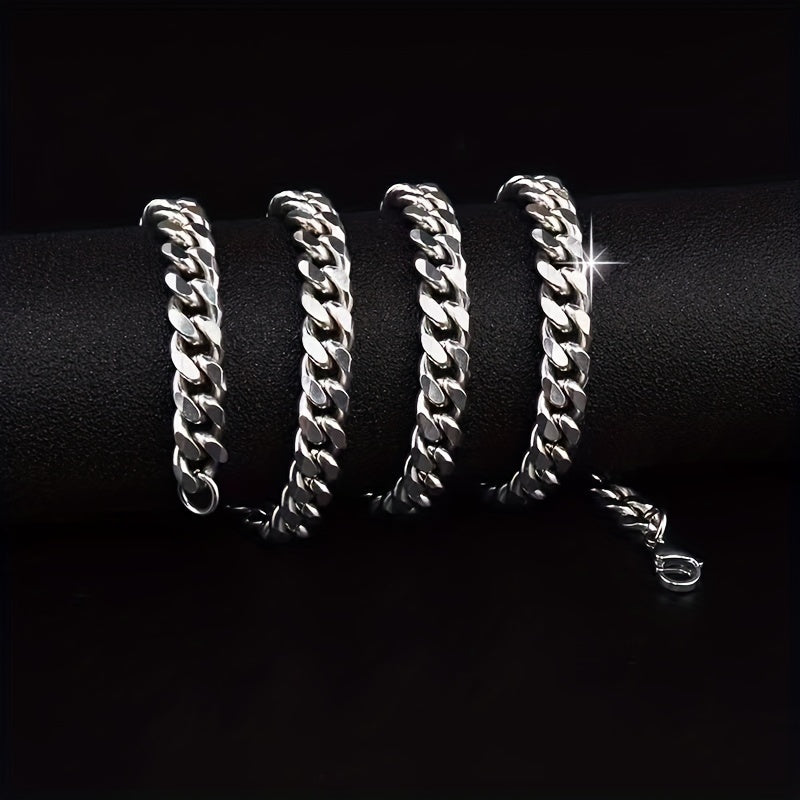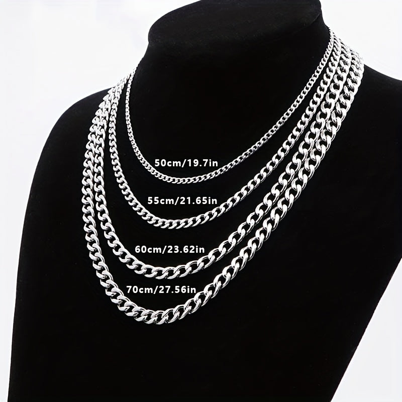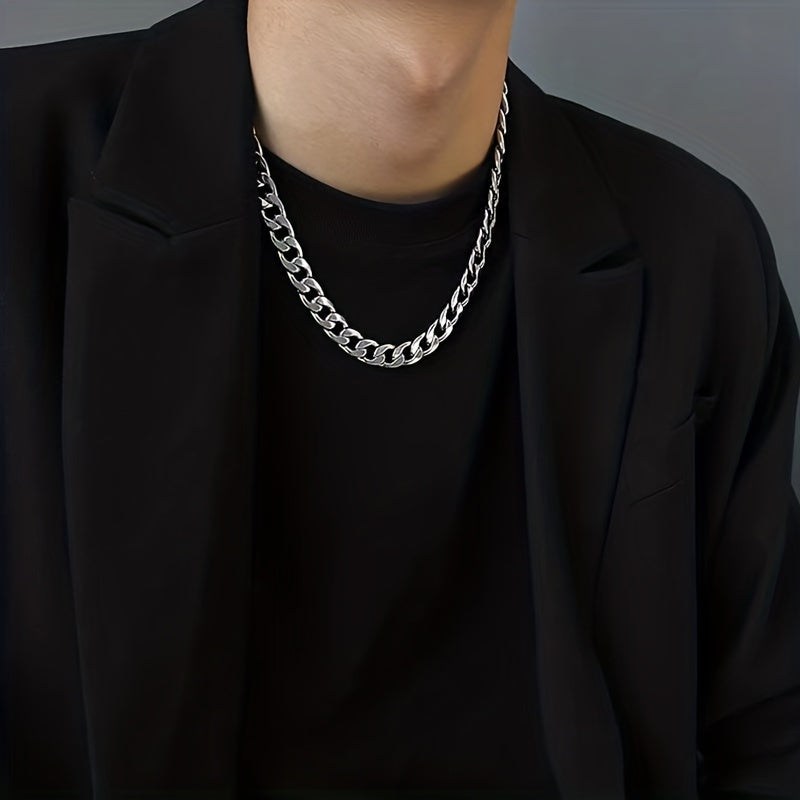 This men's and women's silver chain necklace features a 7mm Cuban chain design. Made of high-quality stainless steel, this silver men's necklace is a versatile accessory for any outfit.