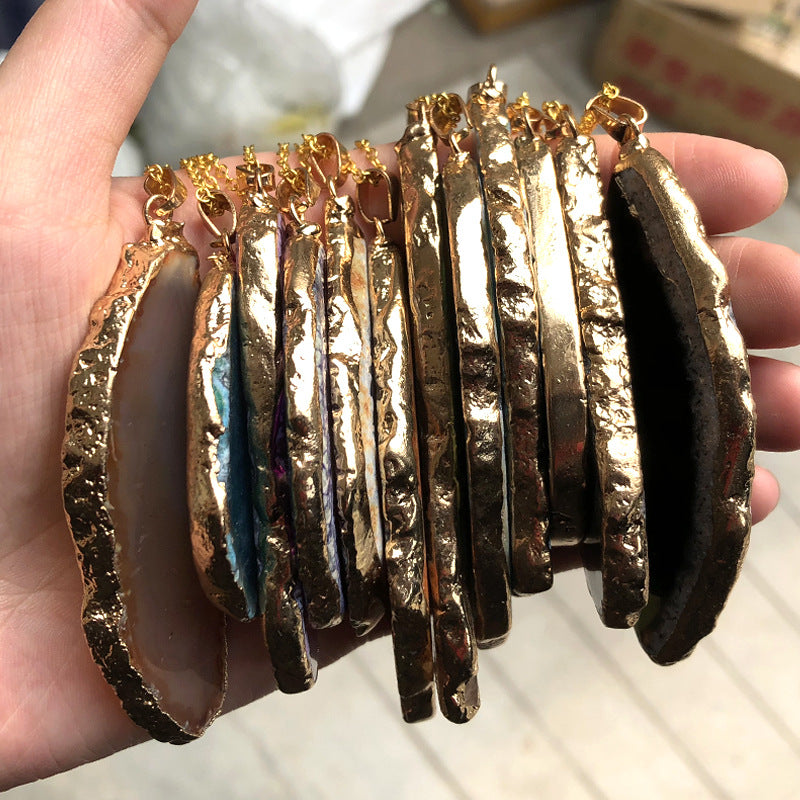 Elevate your style with this unique Agate Raw Stone Slice pendant necklace set on a fashionable sweater chain.