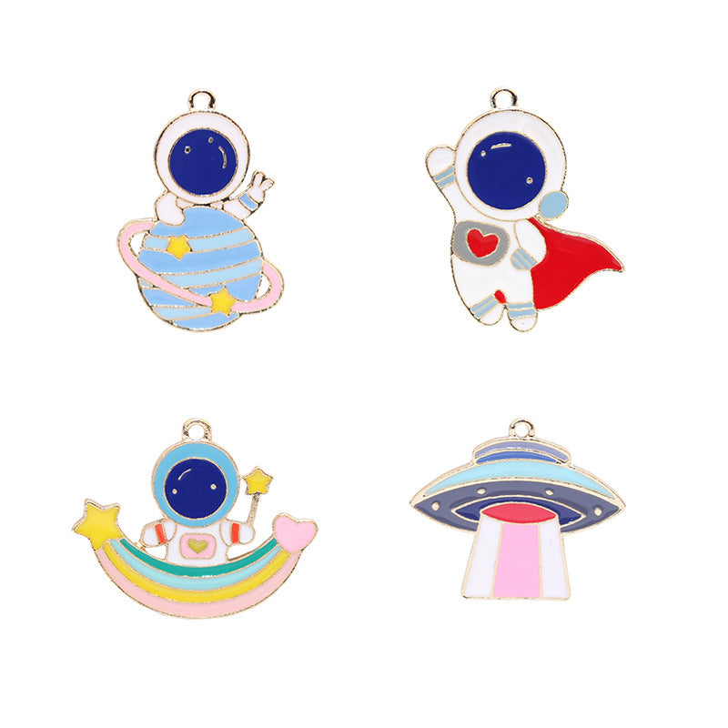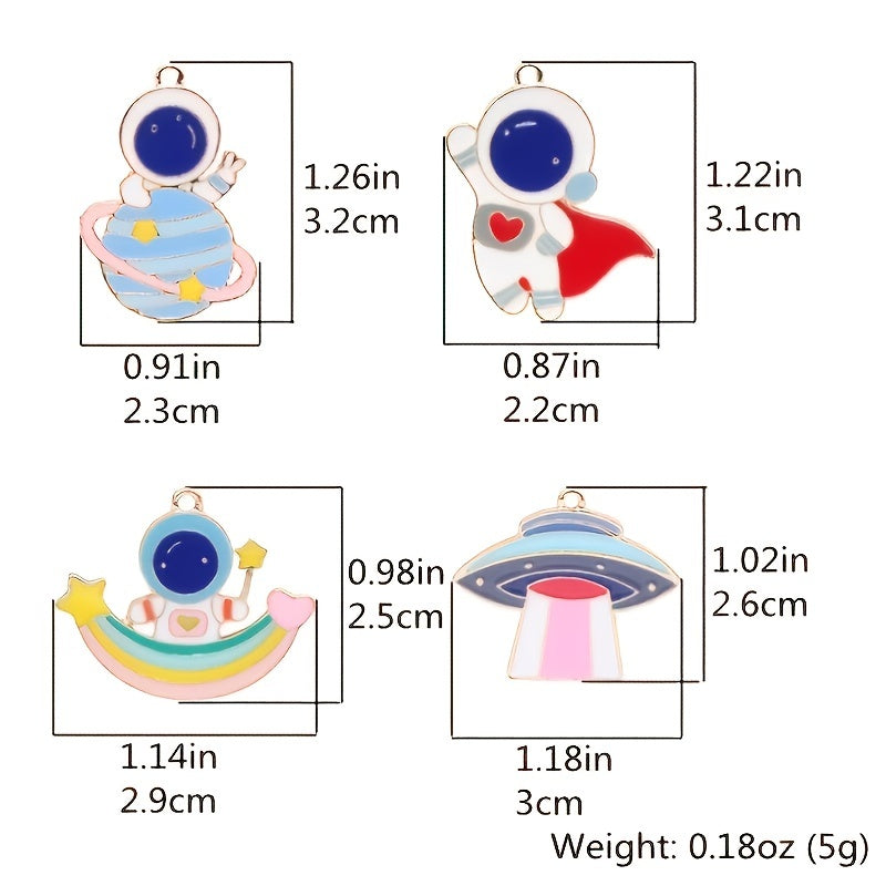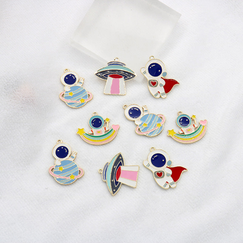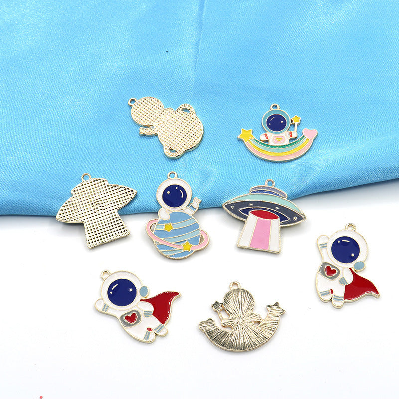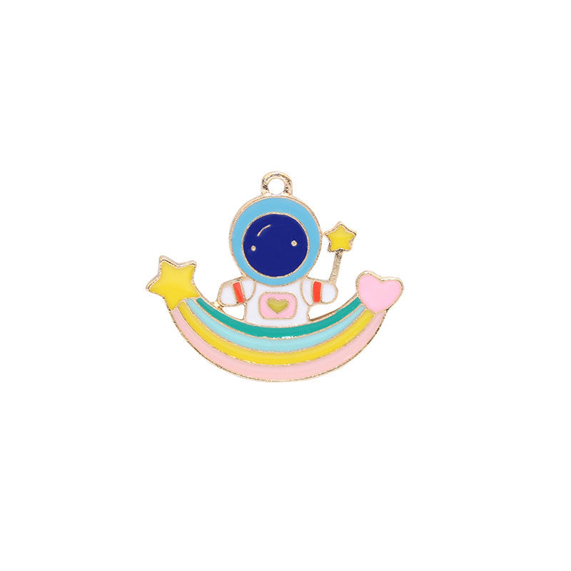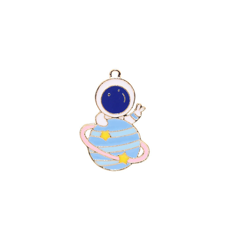 Create your own DIY jewelry with this cute cartoon astronaut spaceman pendant. Perfect for keychains or necklaces, this small pendant is a fun accessory for space enthusiasts.