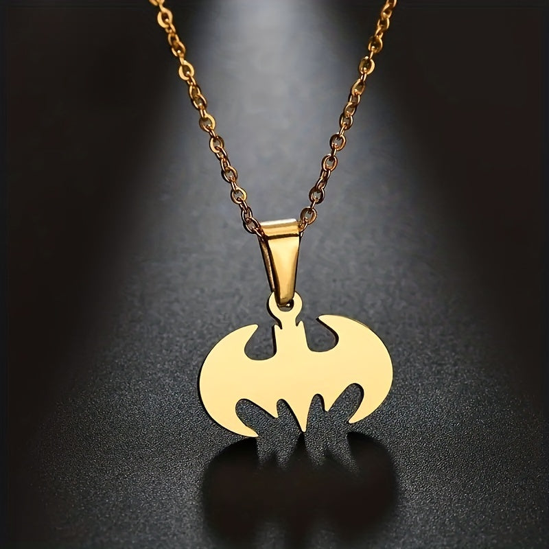 This creative bat pendant necklace is made of glossy stainless steel, perfect for men's jewelry collection.