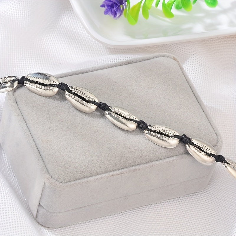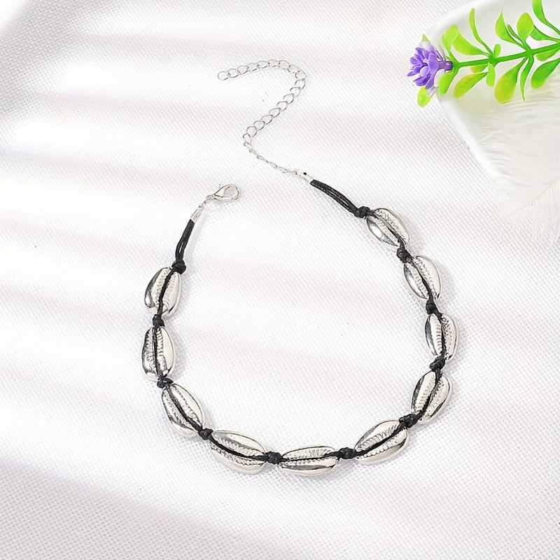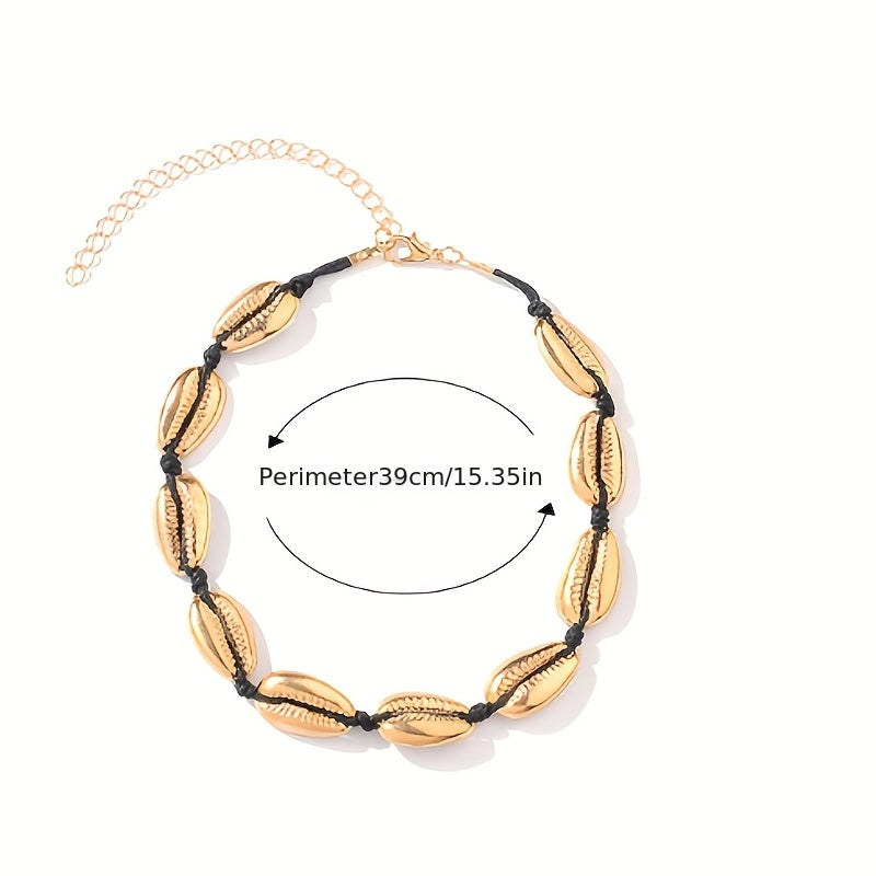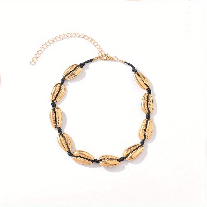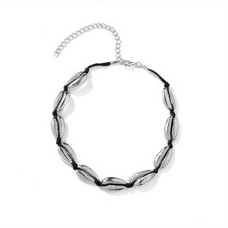 Add a touch of Bohemian style to your outfit with this short necklace featuring shell charms.