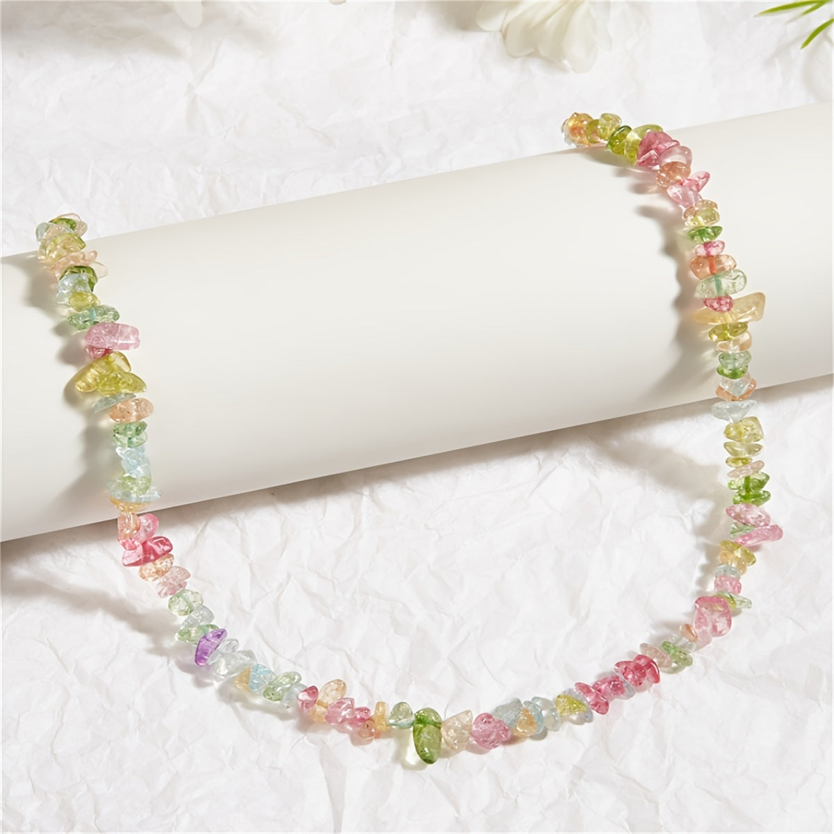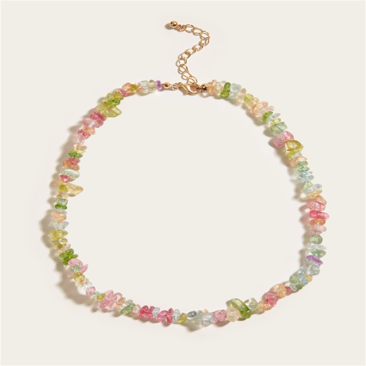 Add a touch of bohemian style to your outfit with this colorful beaded necklace. Perfect for weddings or everyday wear.