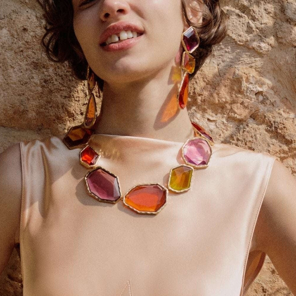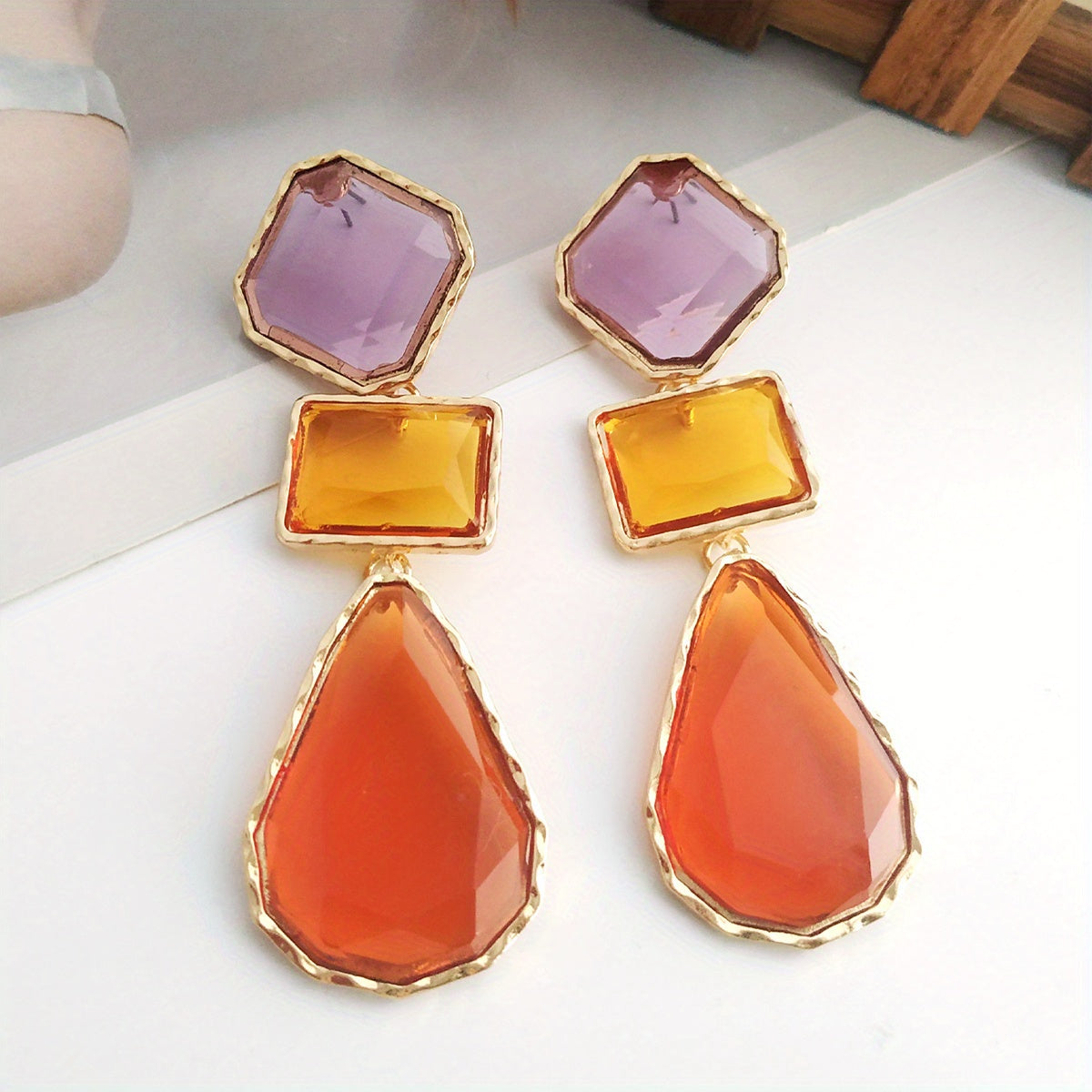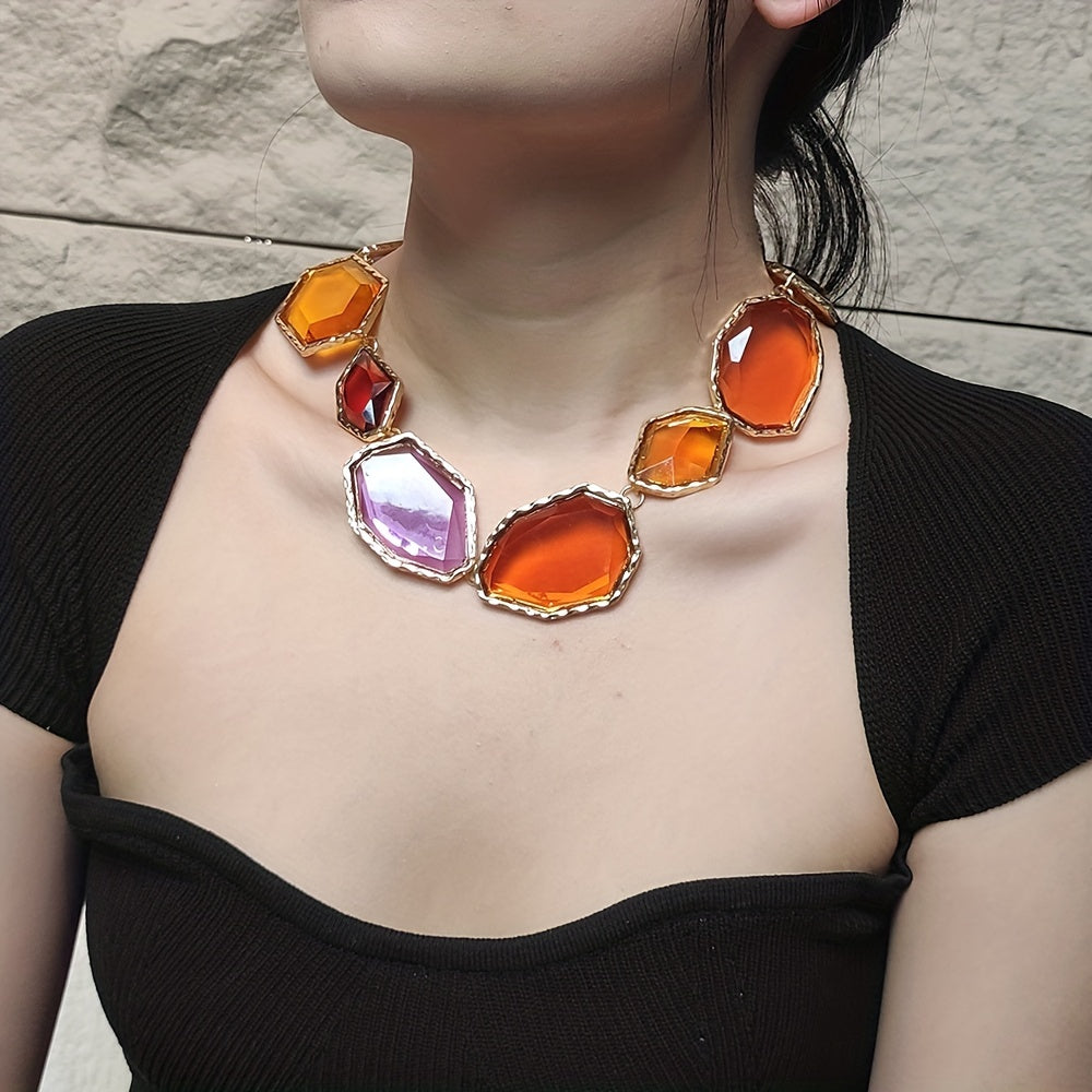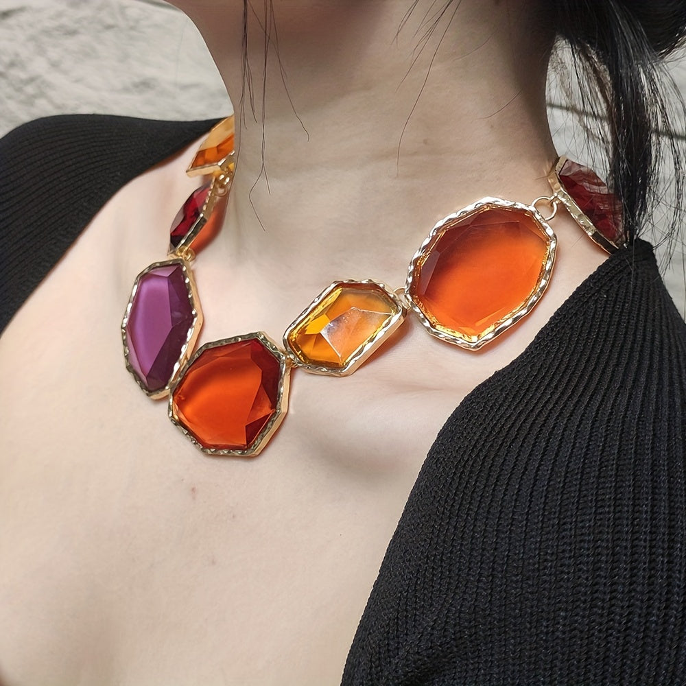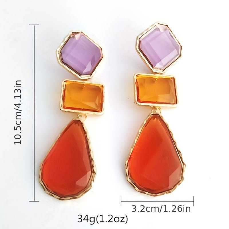 Enhance your style with this bohemian banquet dress party jewelry set featuring multicolor geometric shape earrings and necklace.