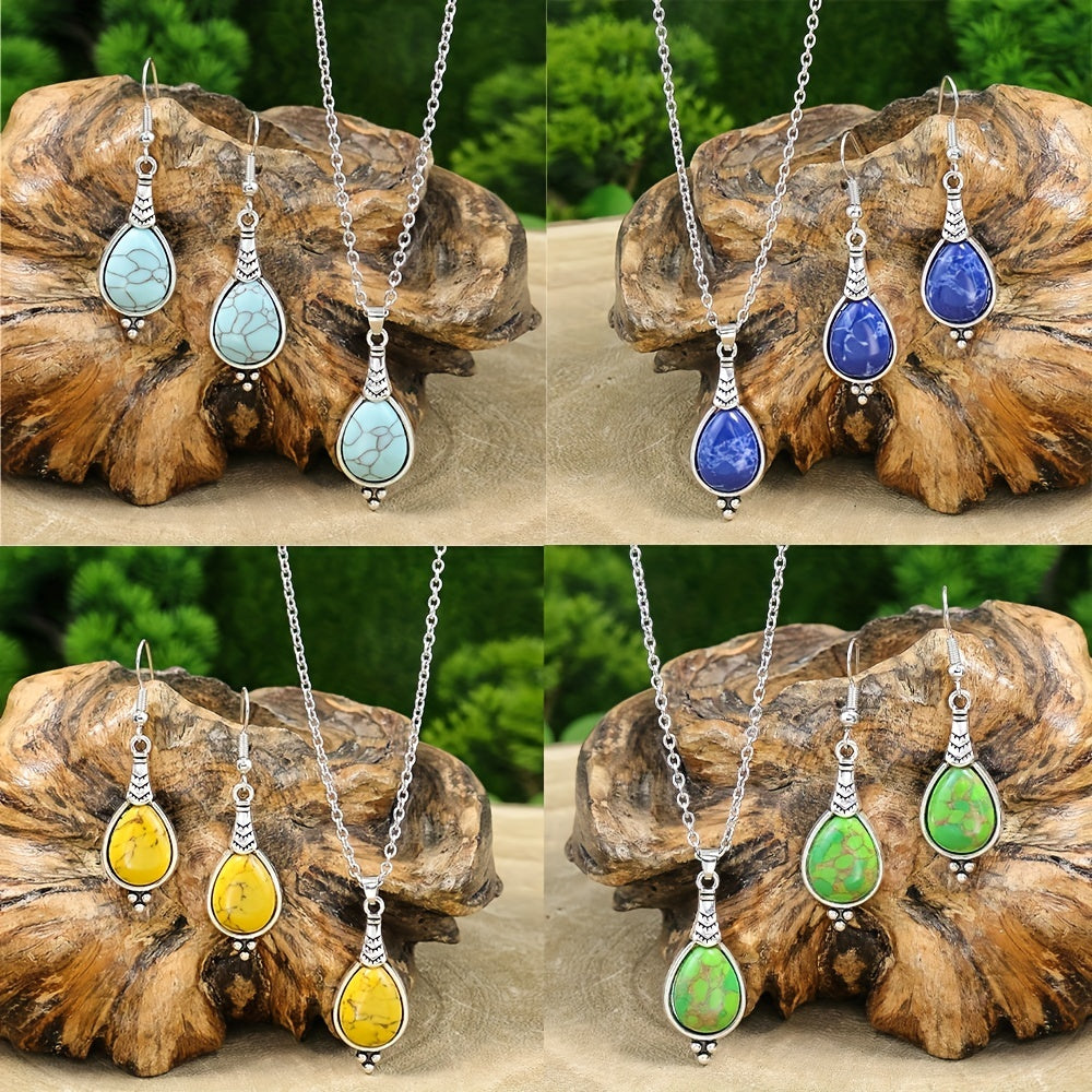 Complete your holiday beach look with this boho style oval shape multicolor gemstone jewelry set. Perfect for women and girls.