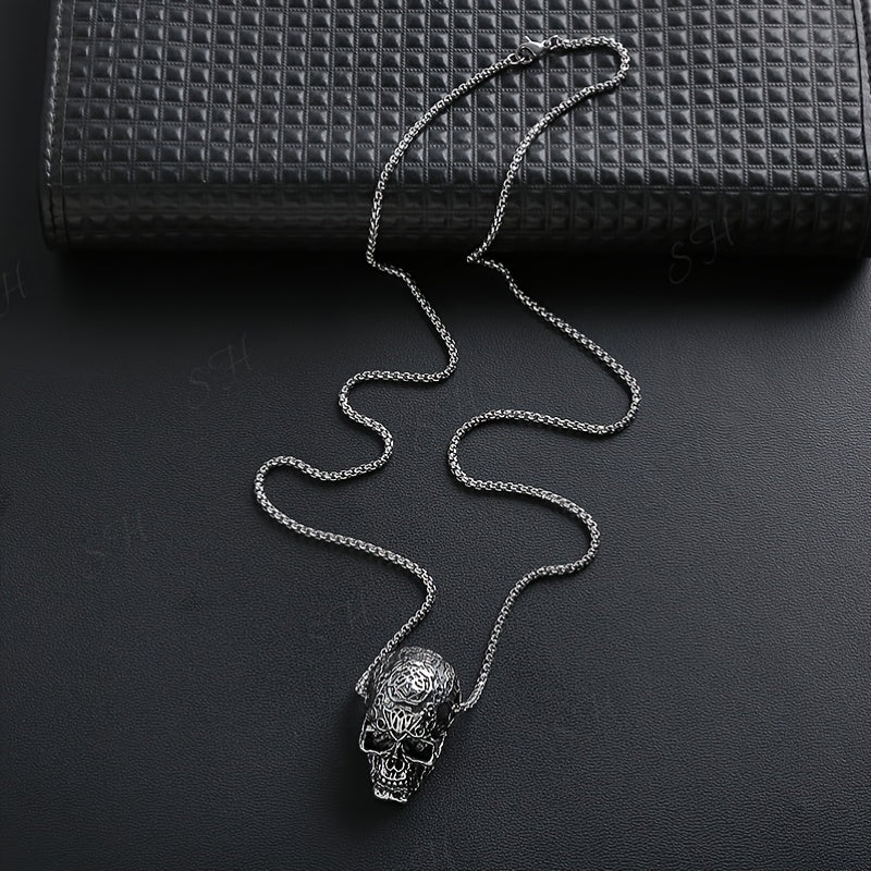 This stainless steel necklace features a skull pendant, perfect for adding a touch of personality and style to your outfit. Ideal as a gift for someone who loves unique accessories.