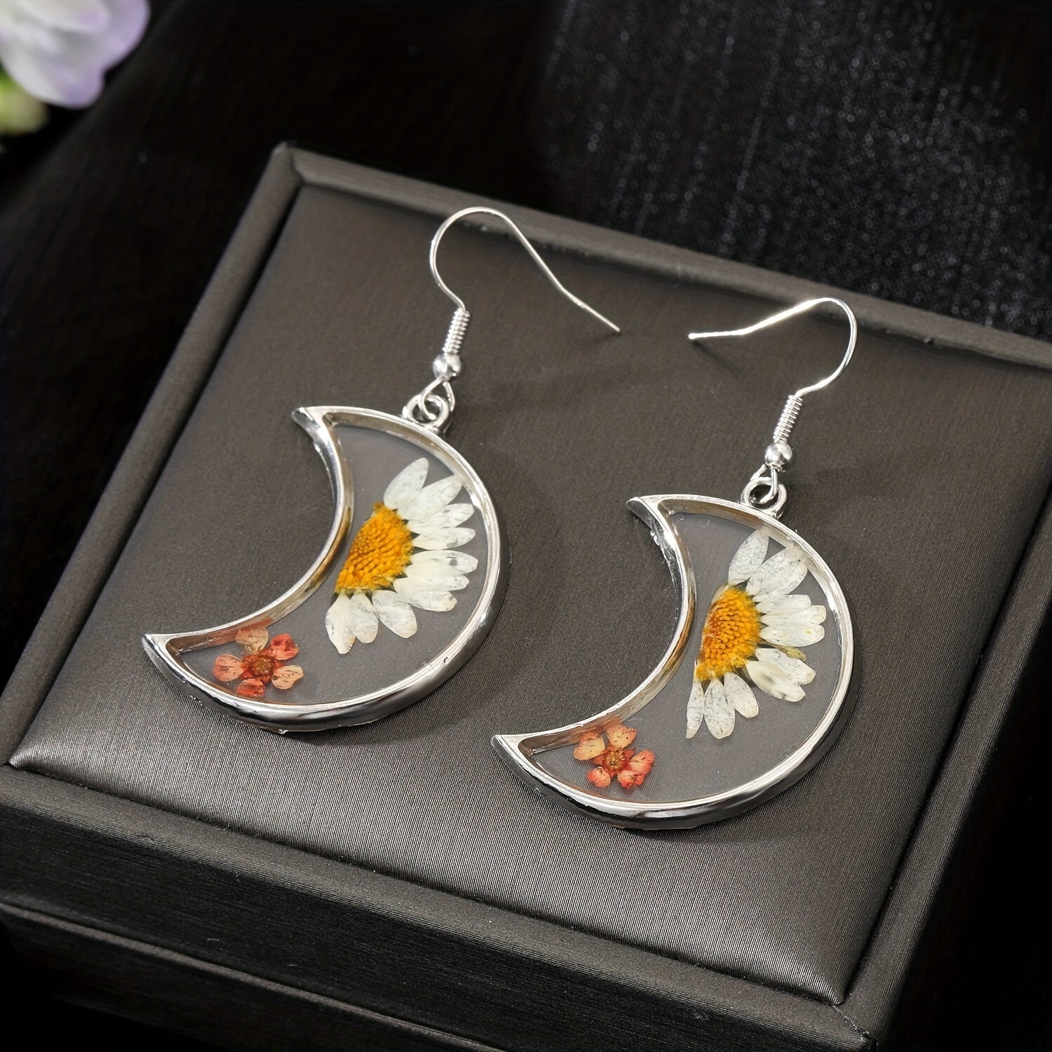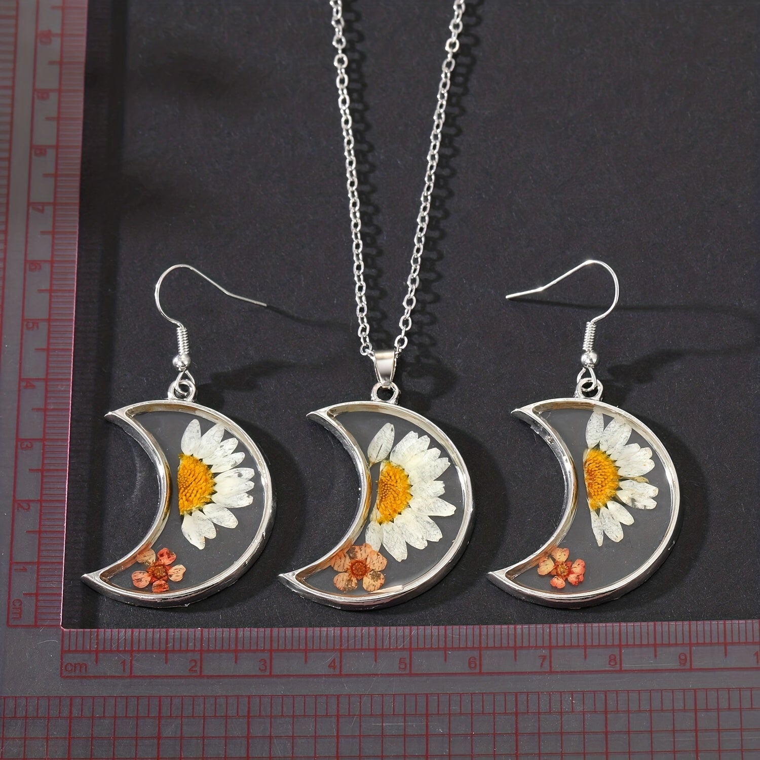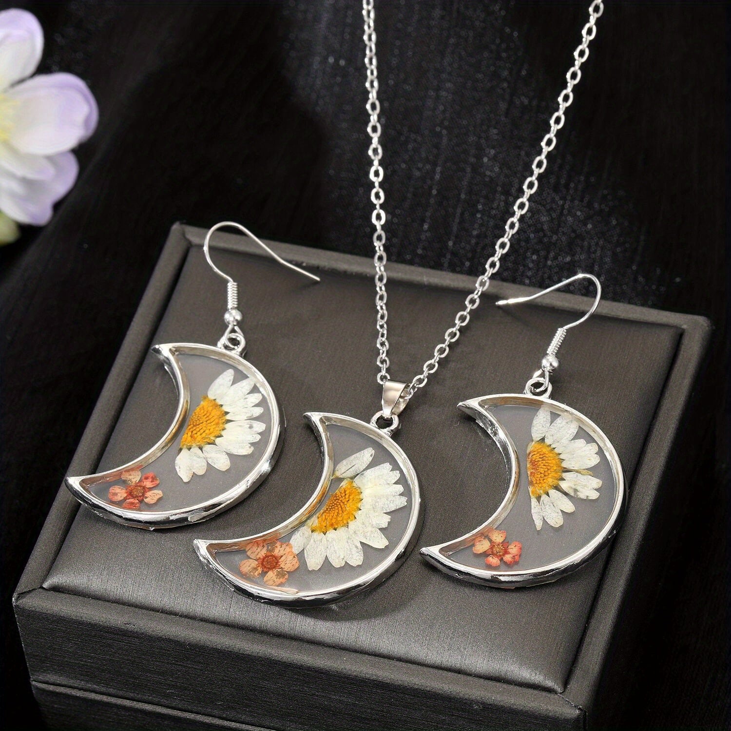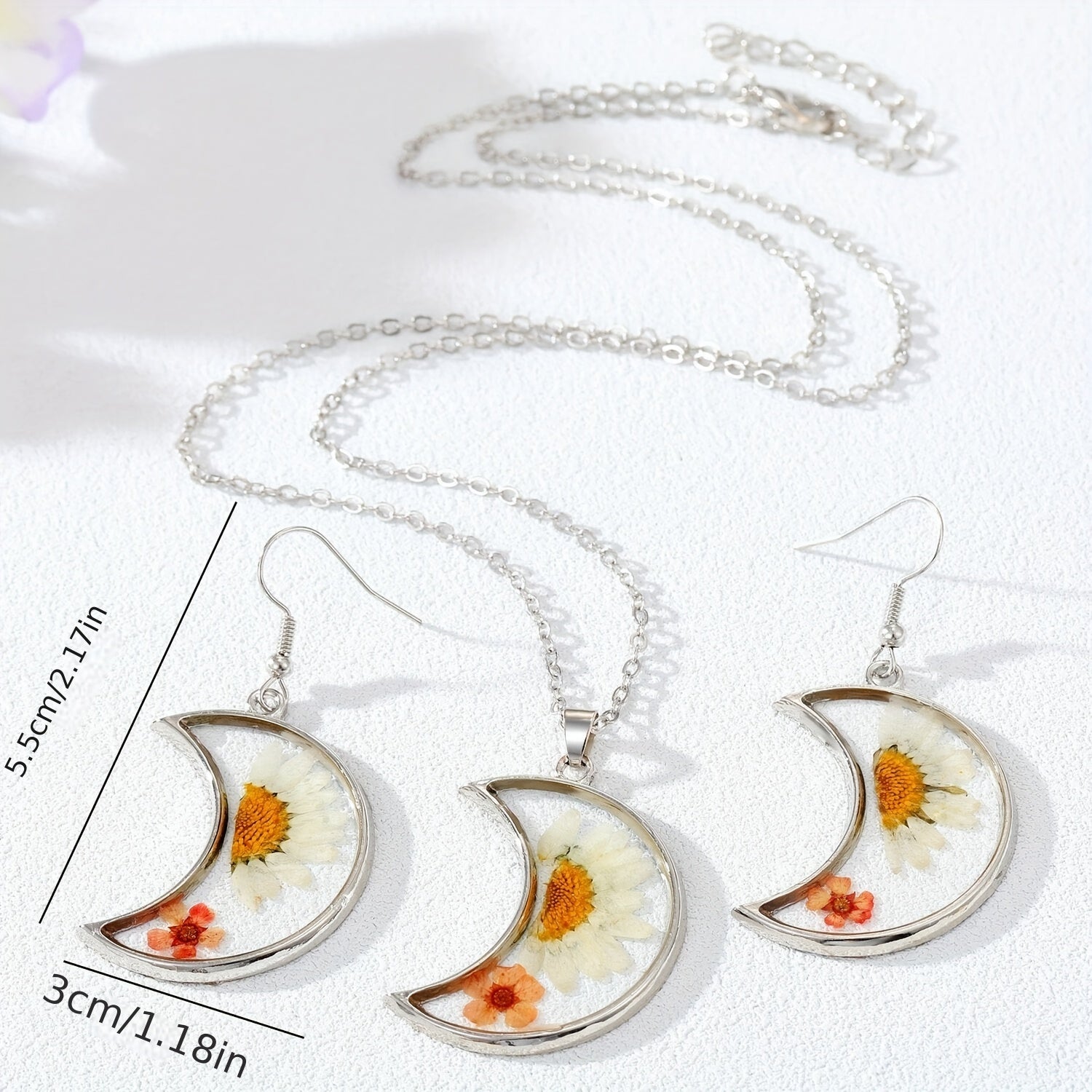 Boho Silver Resin & Dry Flower Jewelry Set - Dainty Summer Access