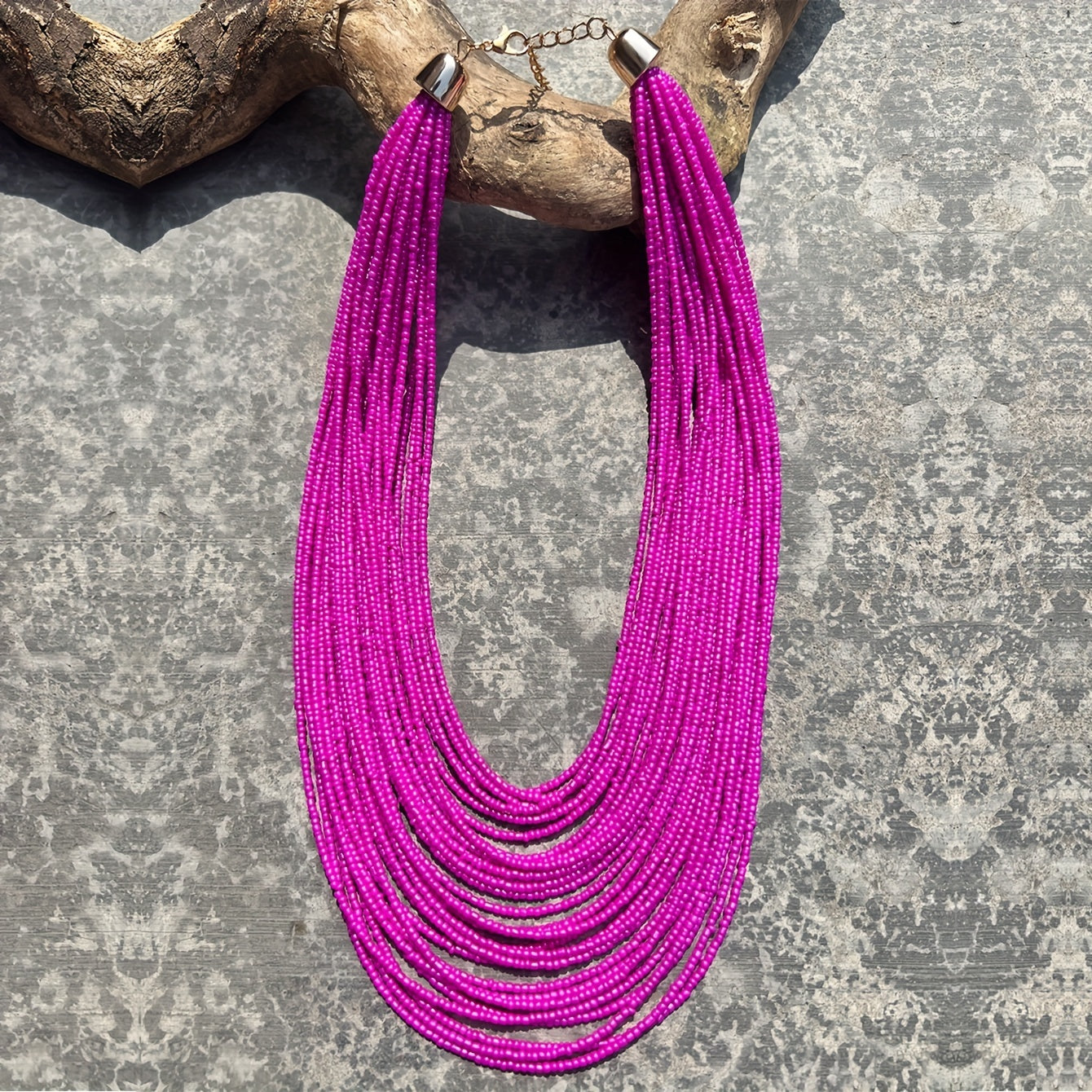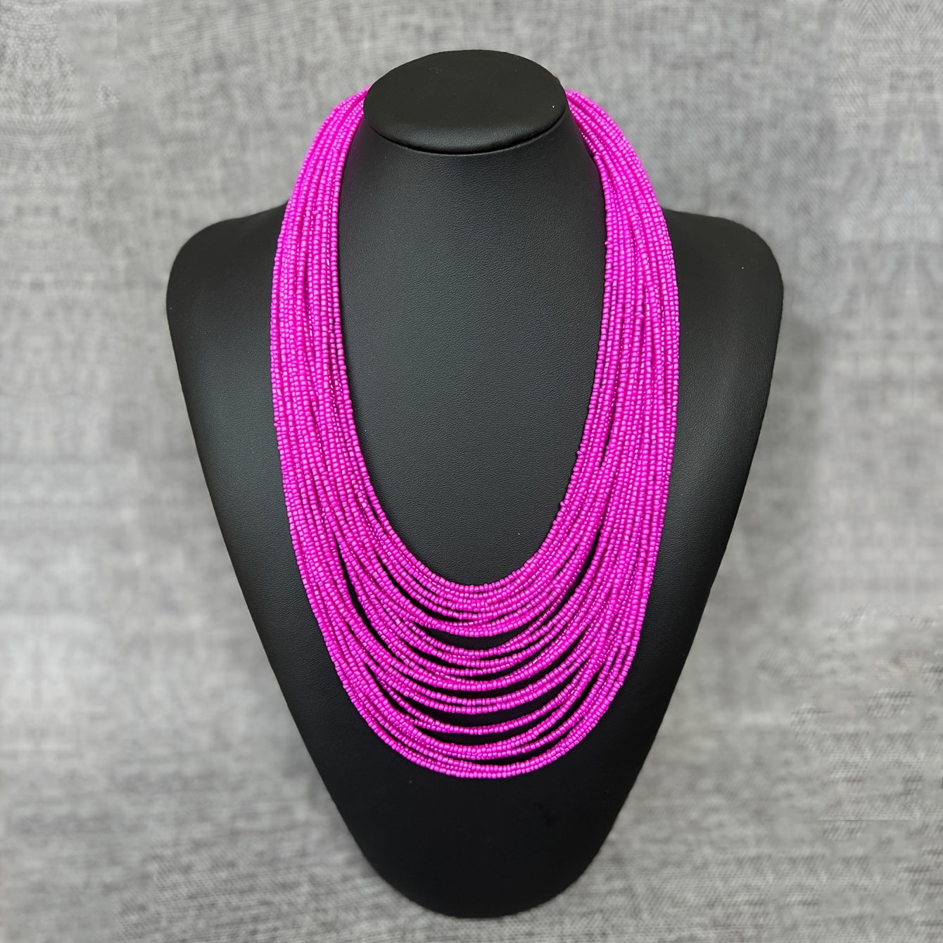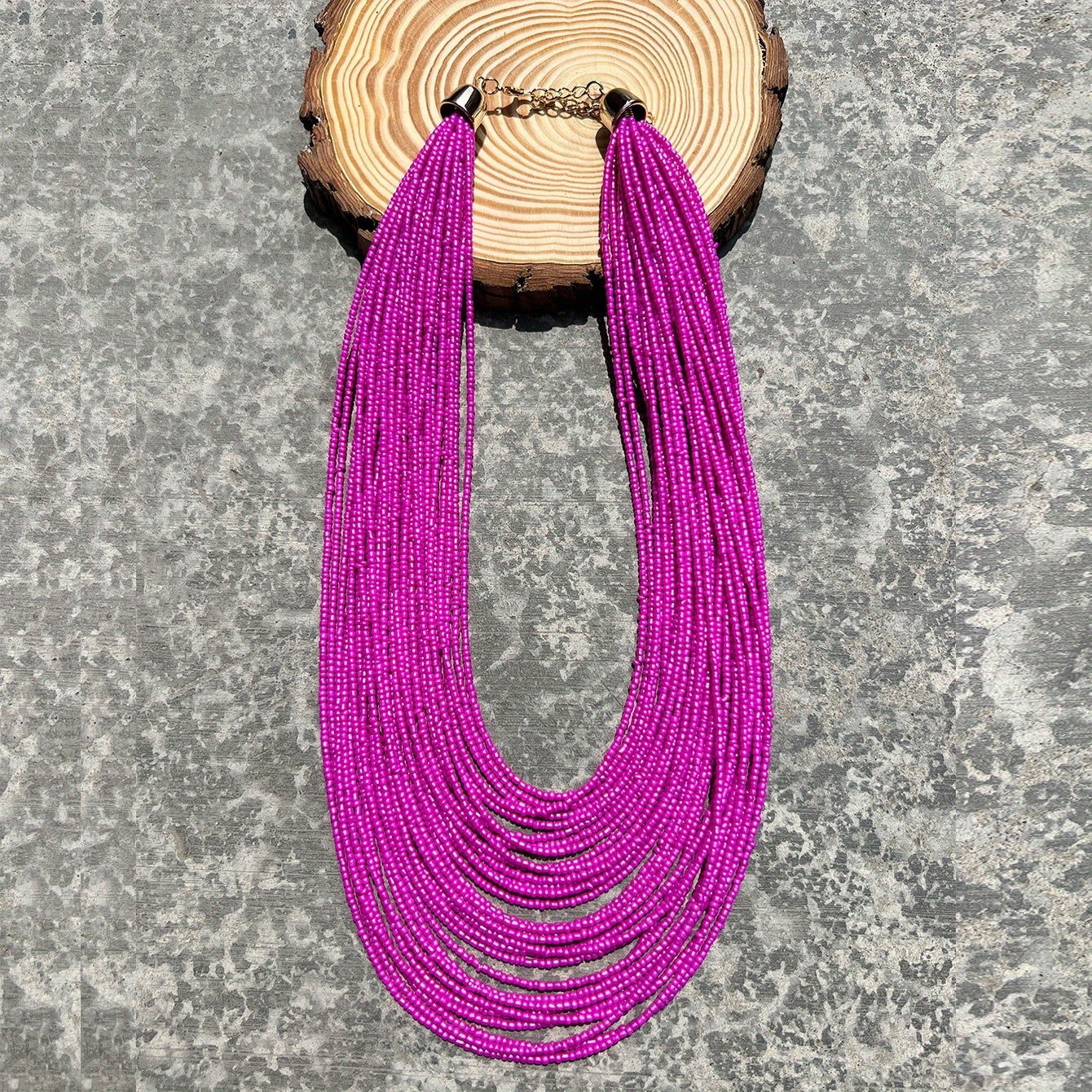 Add a touch of style to your look with this multilayer rose red bead necklace. Perfect for holiday gatherings or everyday wear.