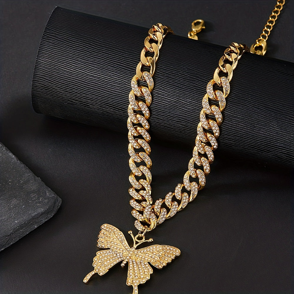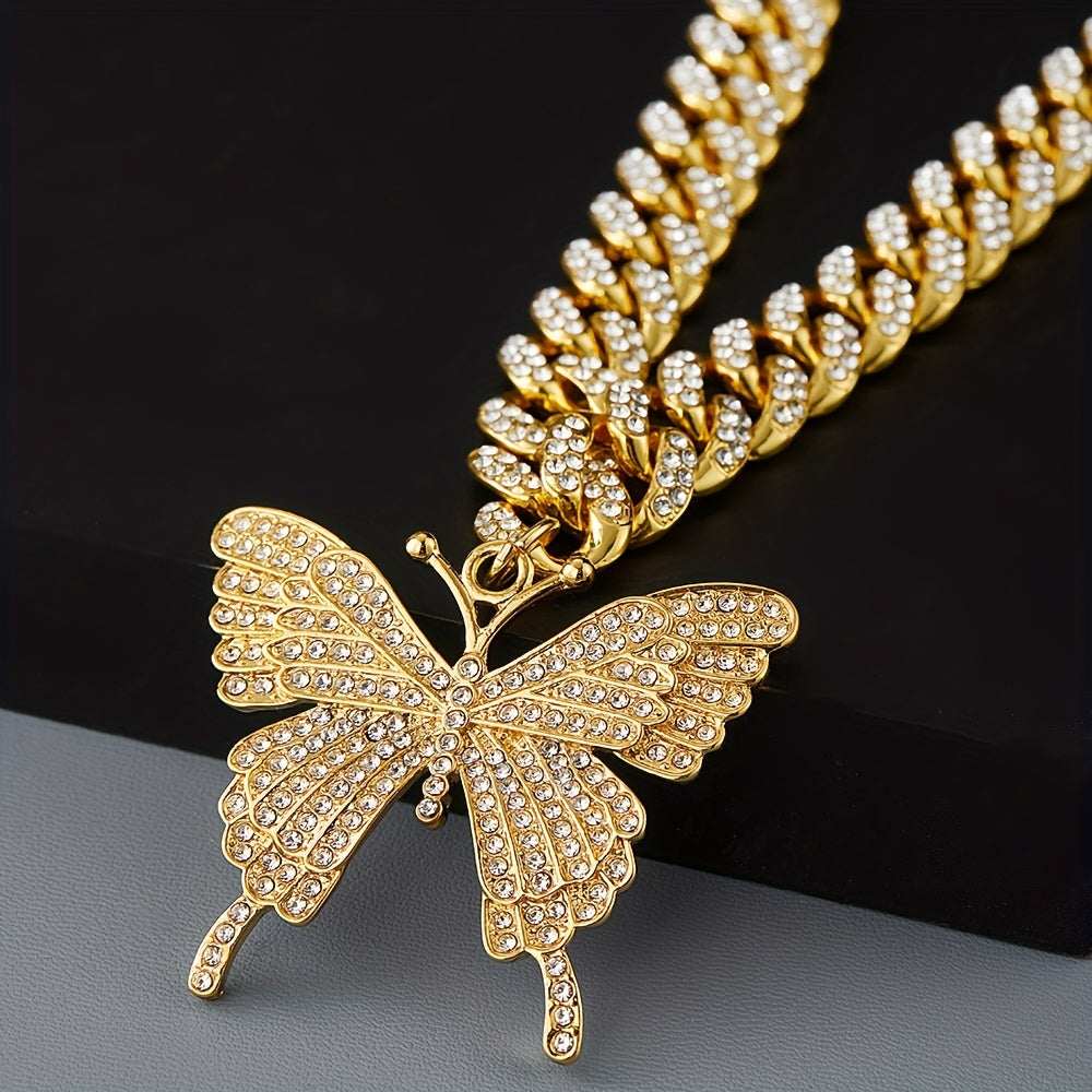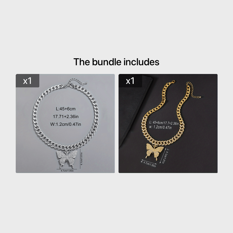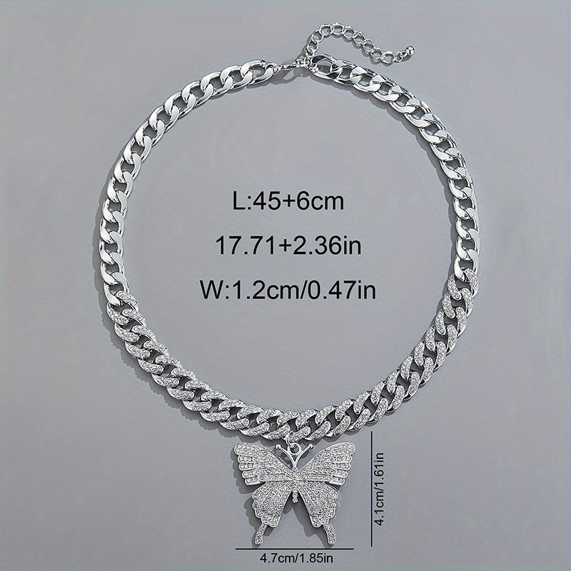 This butterfly choker necklace features a sparkly rhinestone pendant on a bling golden or silver chain. Perfect for women and girls who love butterflies and want to add a touch of glamour to their outfit.