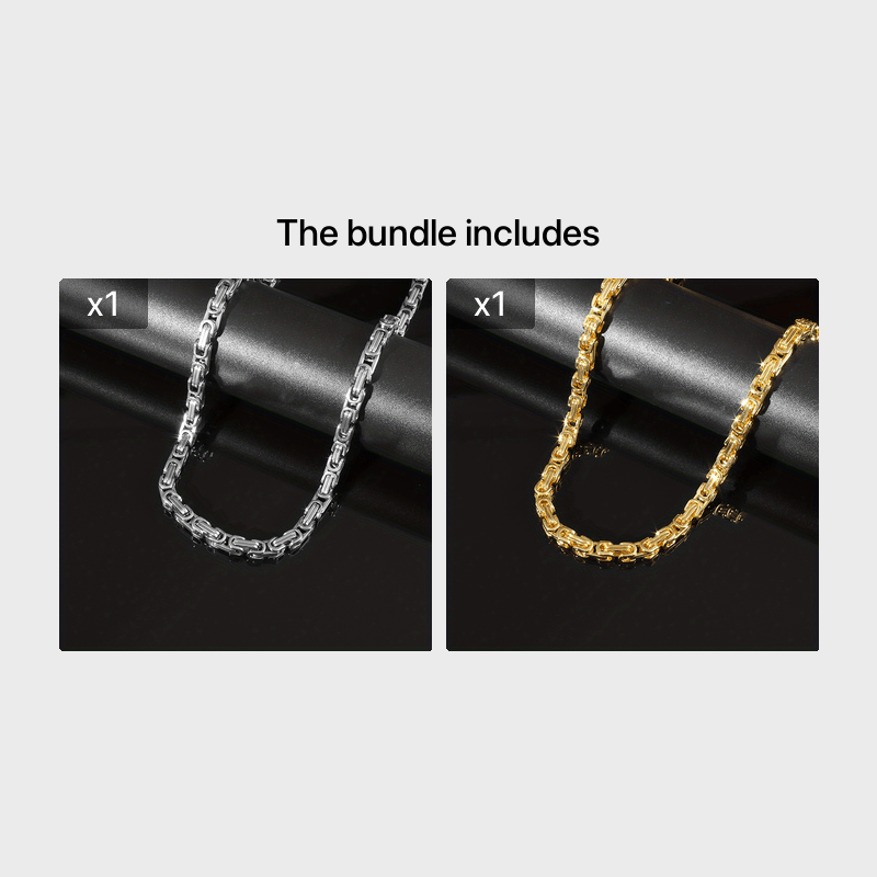 Stylish stainless steel rope chain necklace in golden and silver tones, suitable for both men and women.