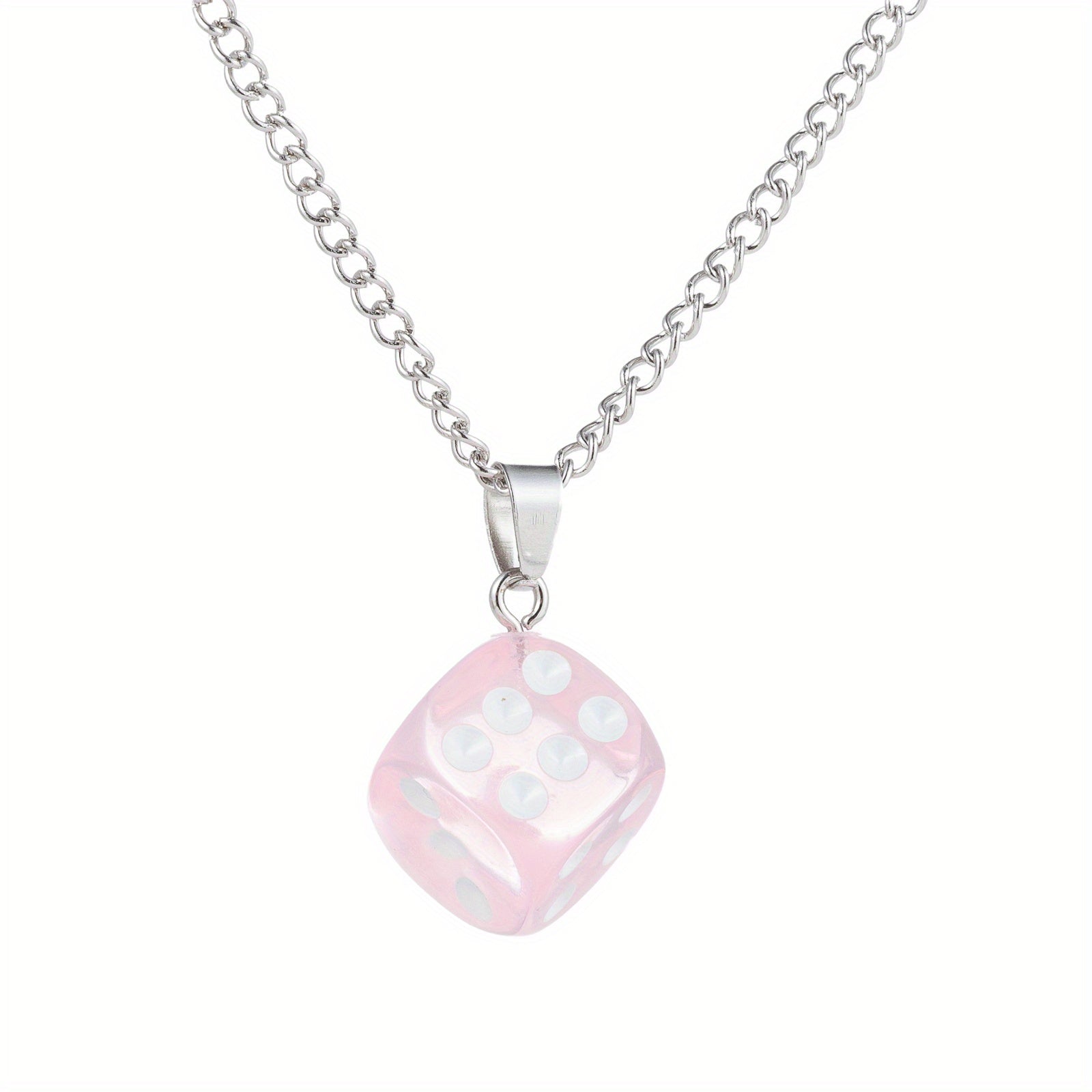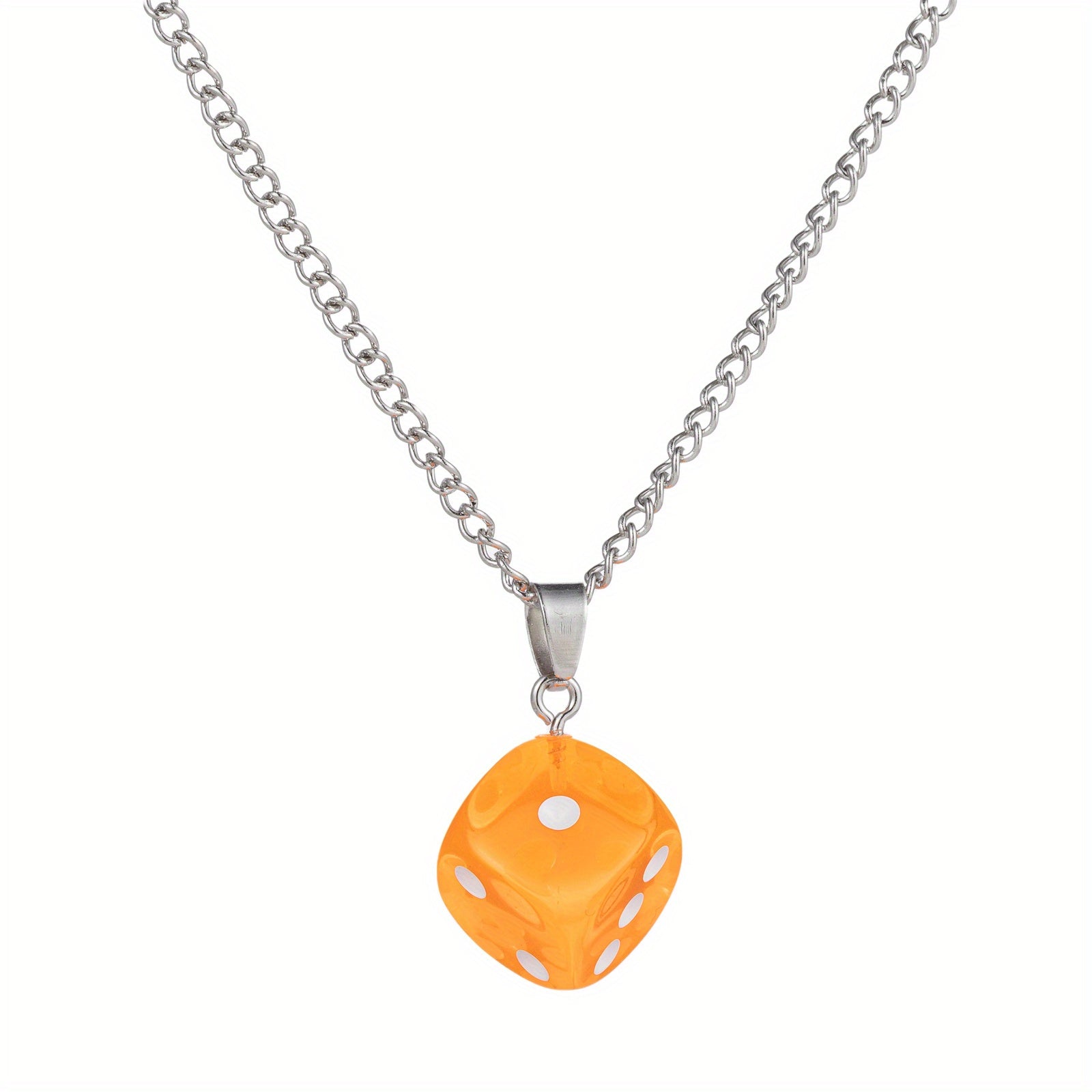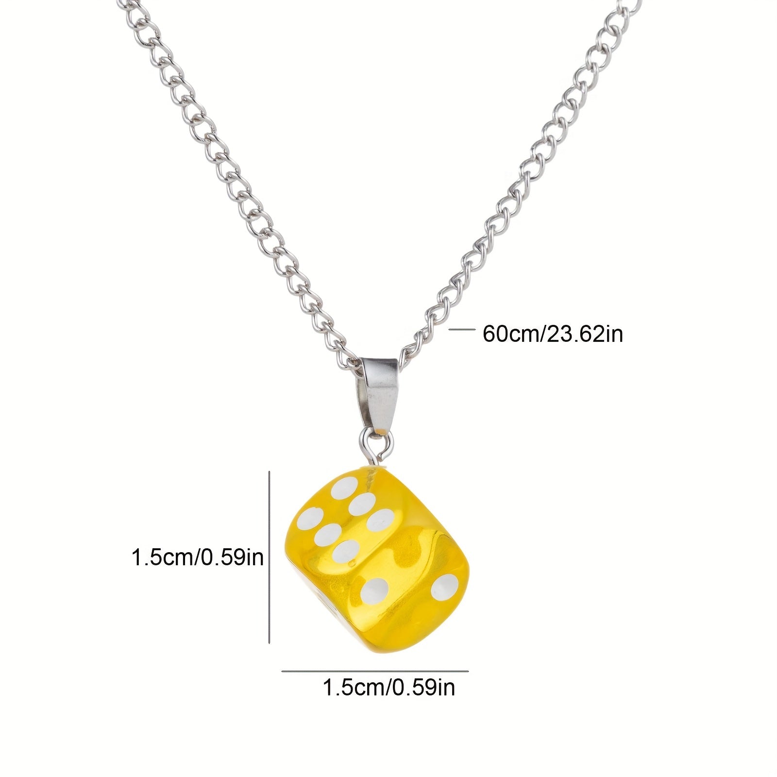 Add a pop of color to your outfit with this acrylic dice pendant necklace. The silver long chain adds a touch of elegance to the fun design.
