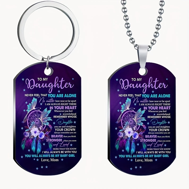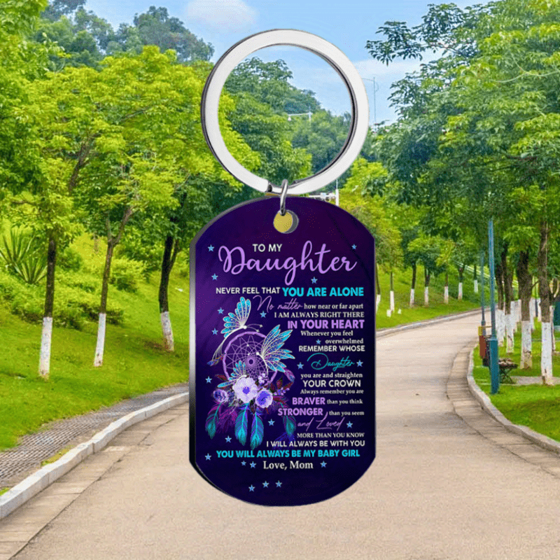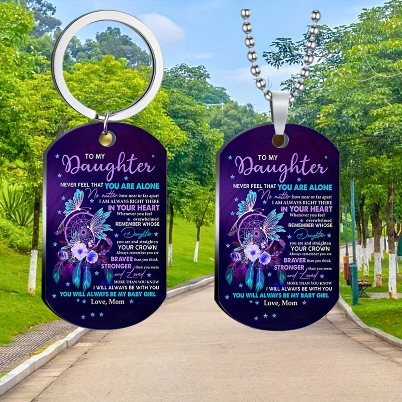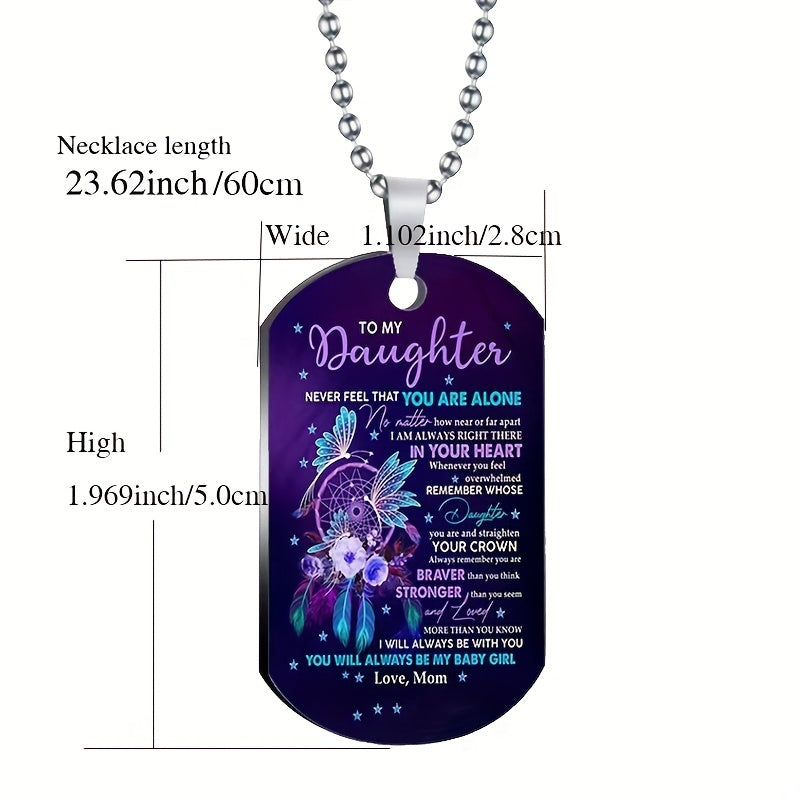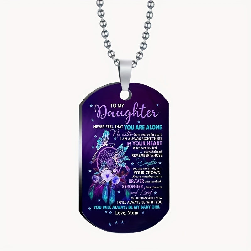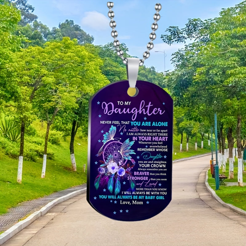 Beautifully crafted stainless steel tag featuring colorful flowers and flying bird, perfect gift for your daughter on birthdays and holidays.