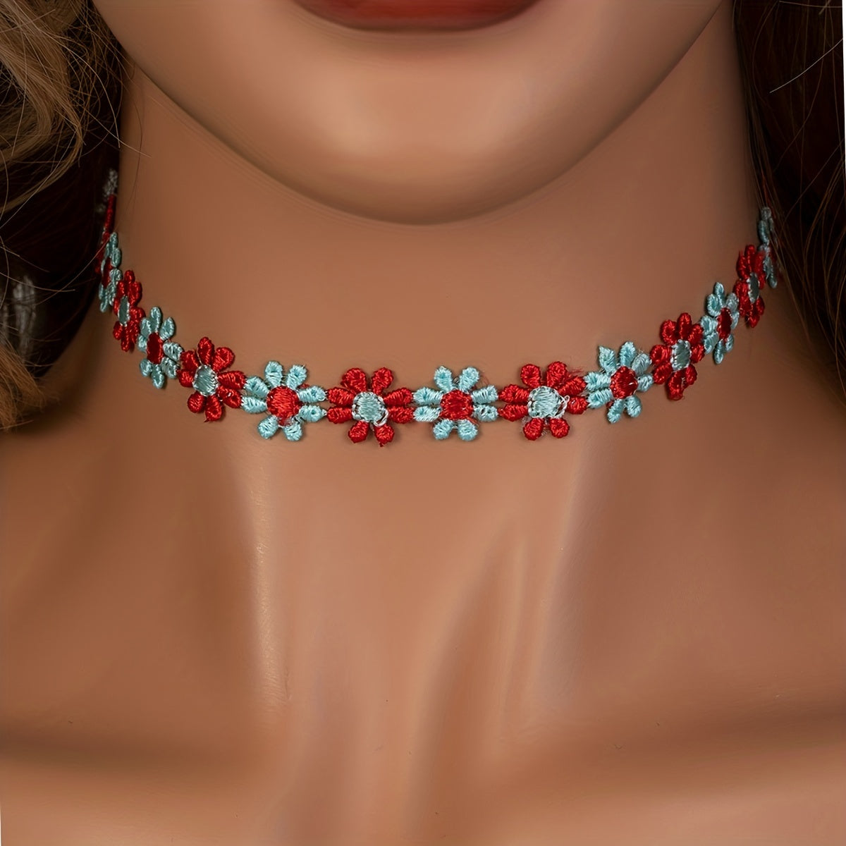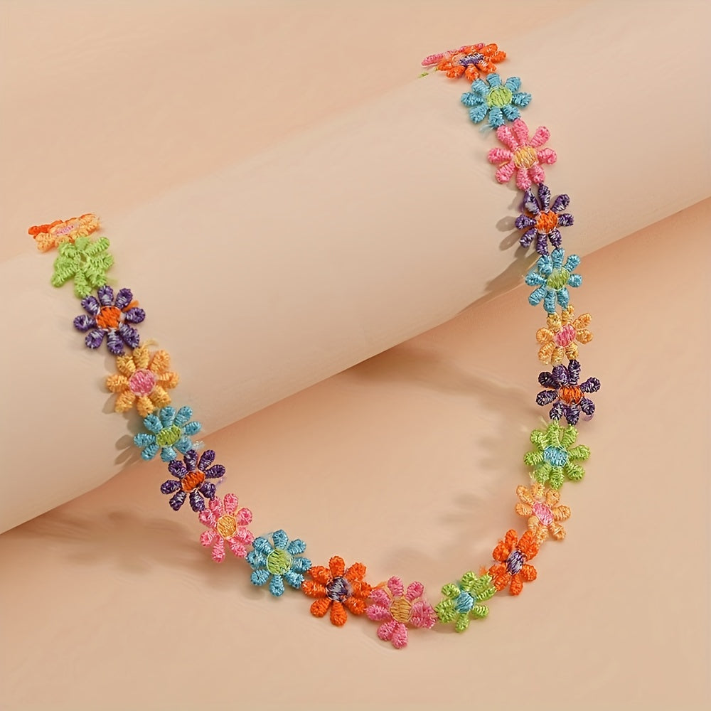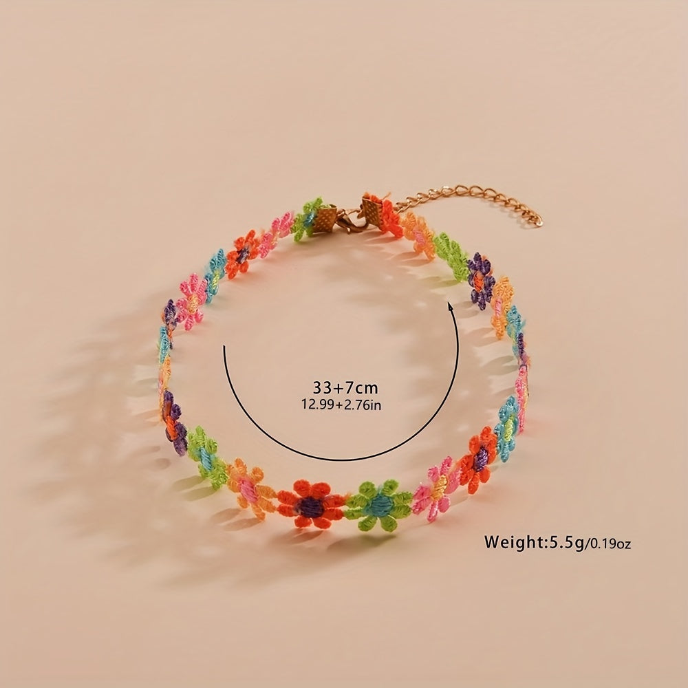 Add a touch of bohemian style to your outfit with this colorful flower fabric choker necklace. Perfect for holiday parties or casual wear.