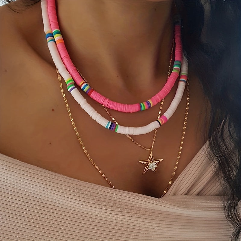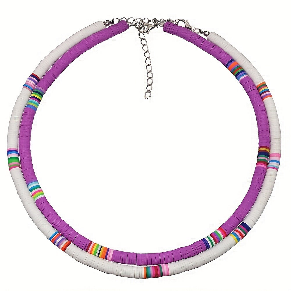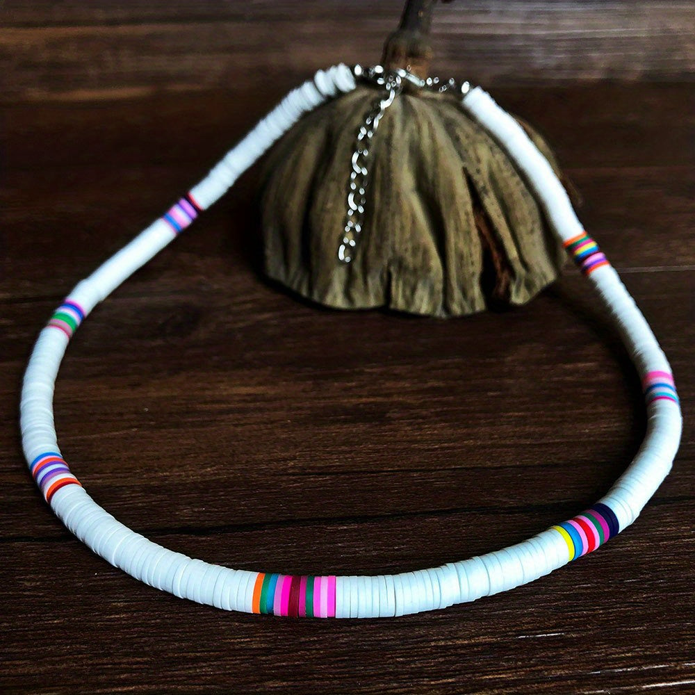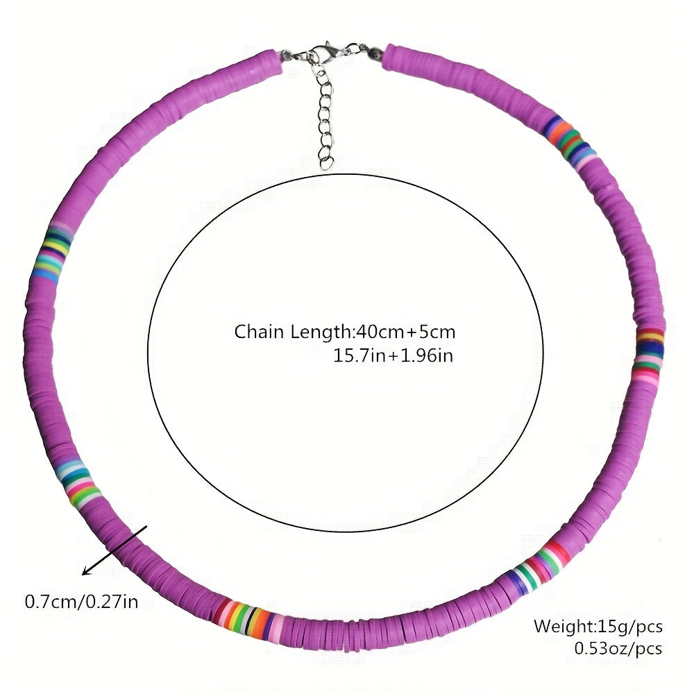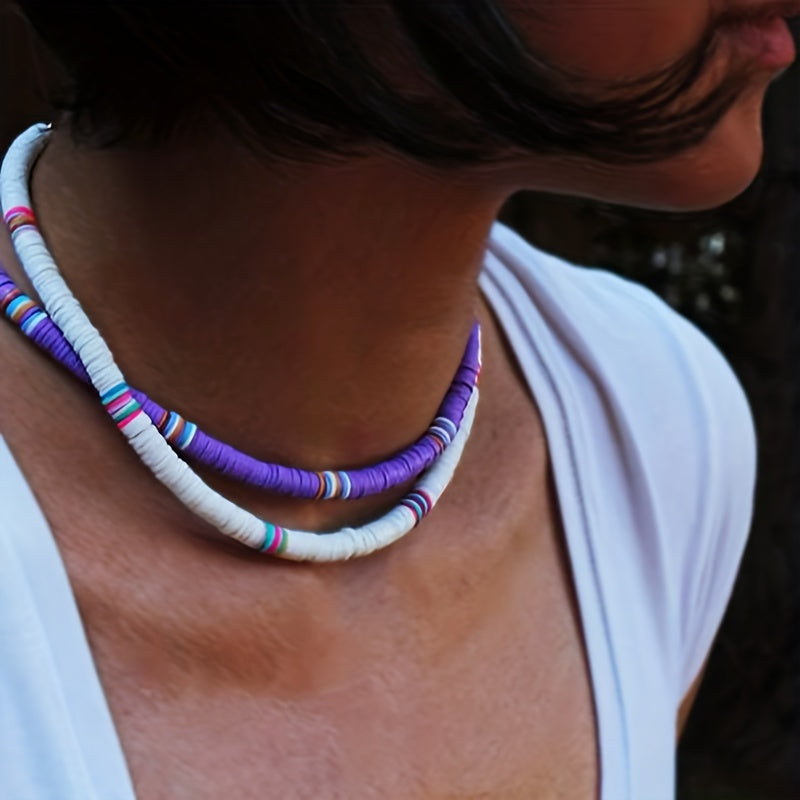 Add a touch of summer beach style to your look with this stackable 6mm soft clay necklace. Perfect for a relaxed and colorful vibe.