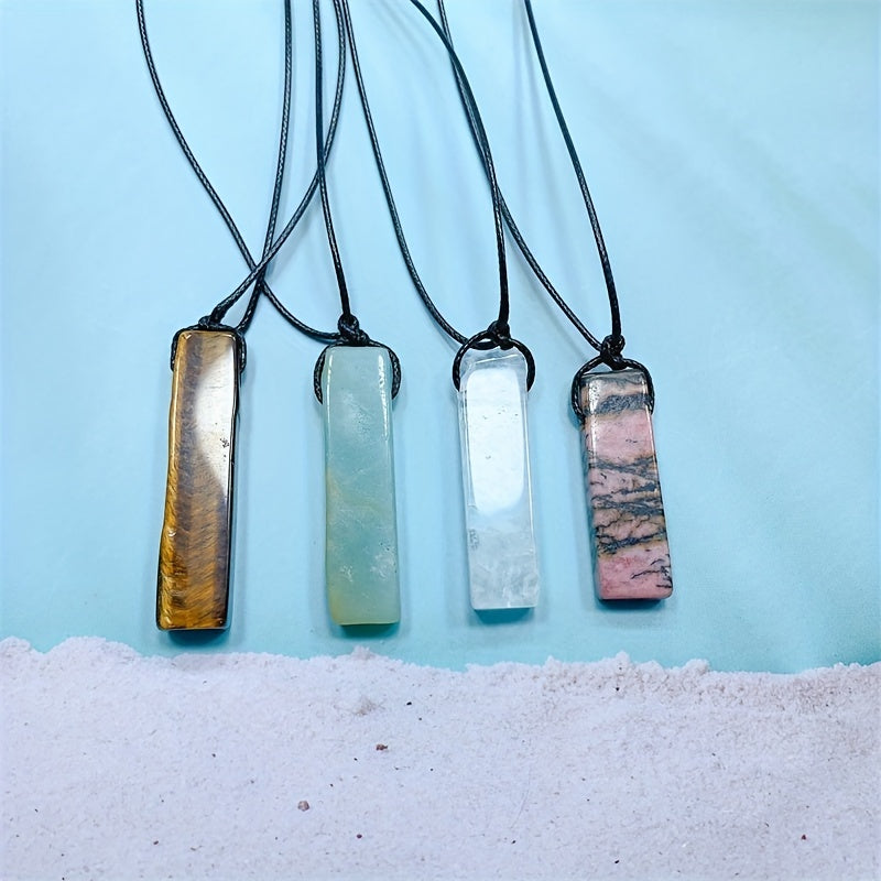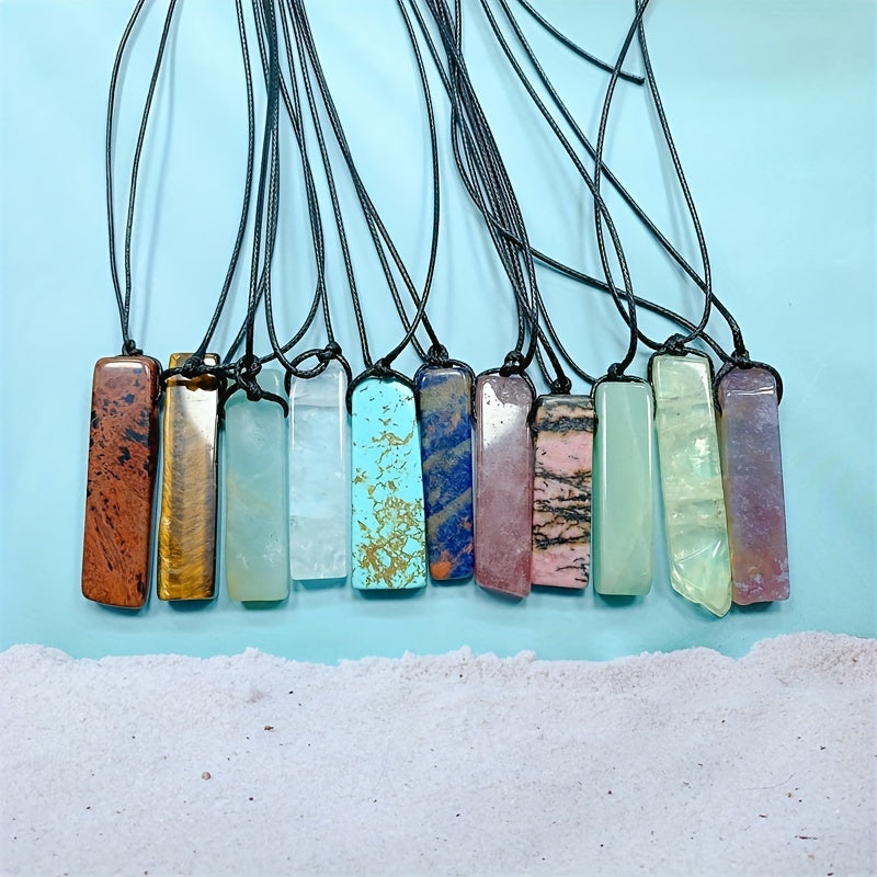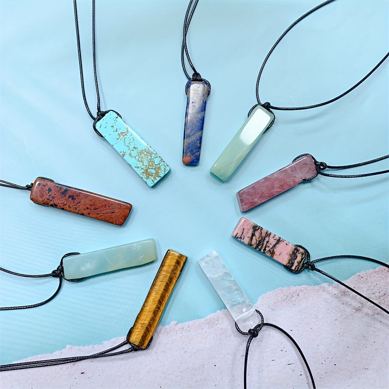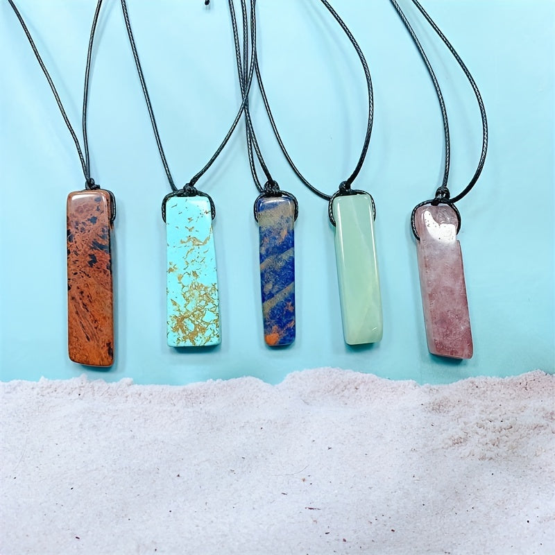This vibrant pendant necklace is a stylish accessory for any occasion. It features a colorful rectangle stone that adds a pop of color to your outfit. Perfect as a holiday or birthday gift.