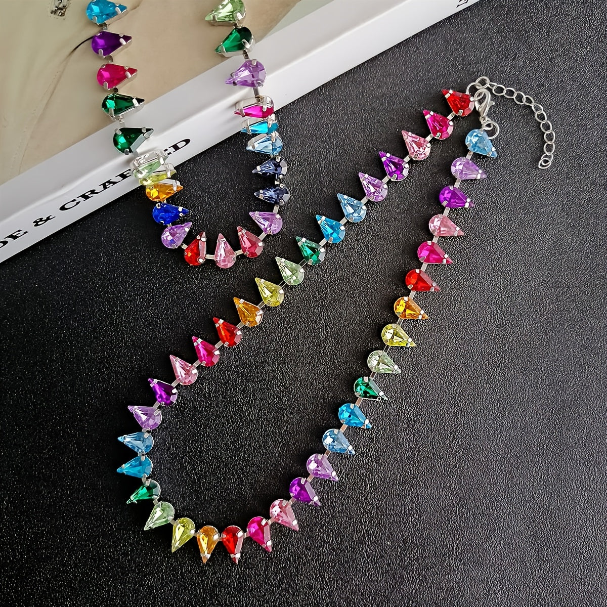 Add a pop of color to your outfits with this water drop shape choker necklace. The adjustable design makes it versatile for any neck size. Perfect for daily wear or special occasions.