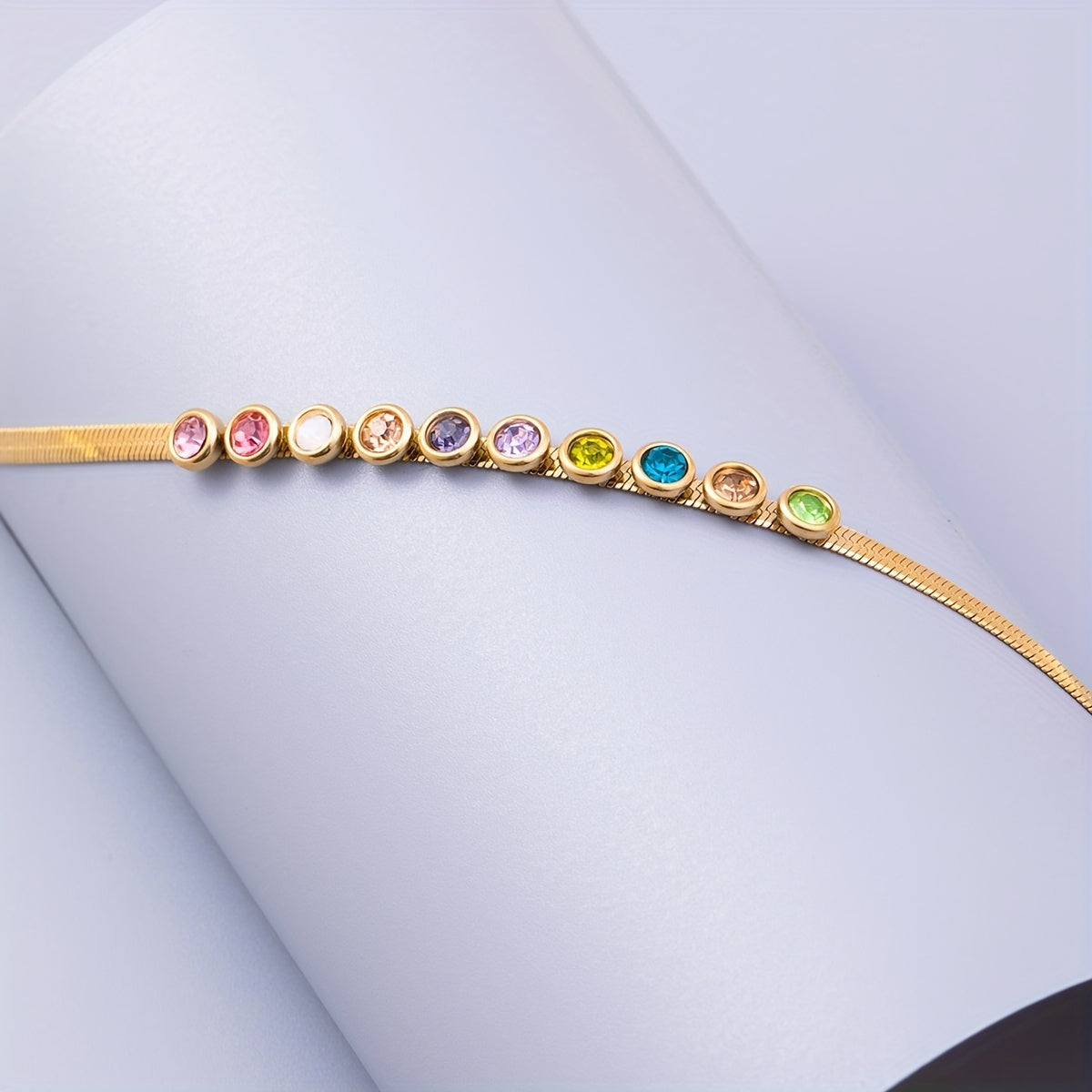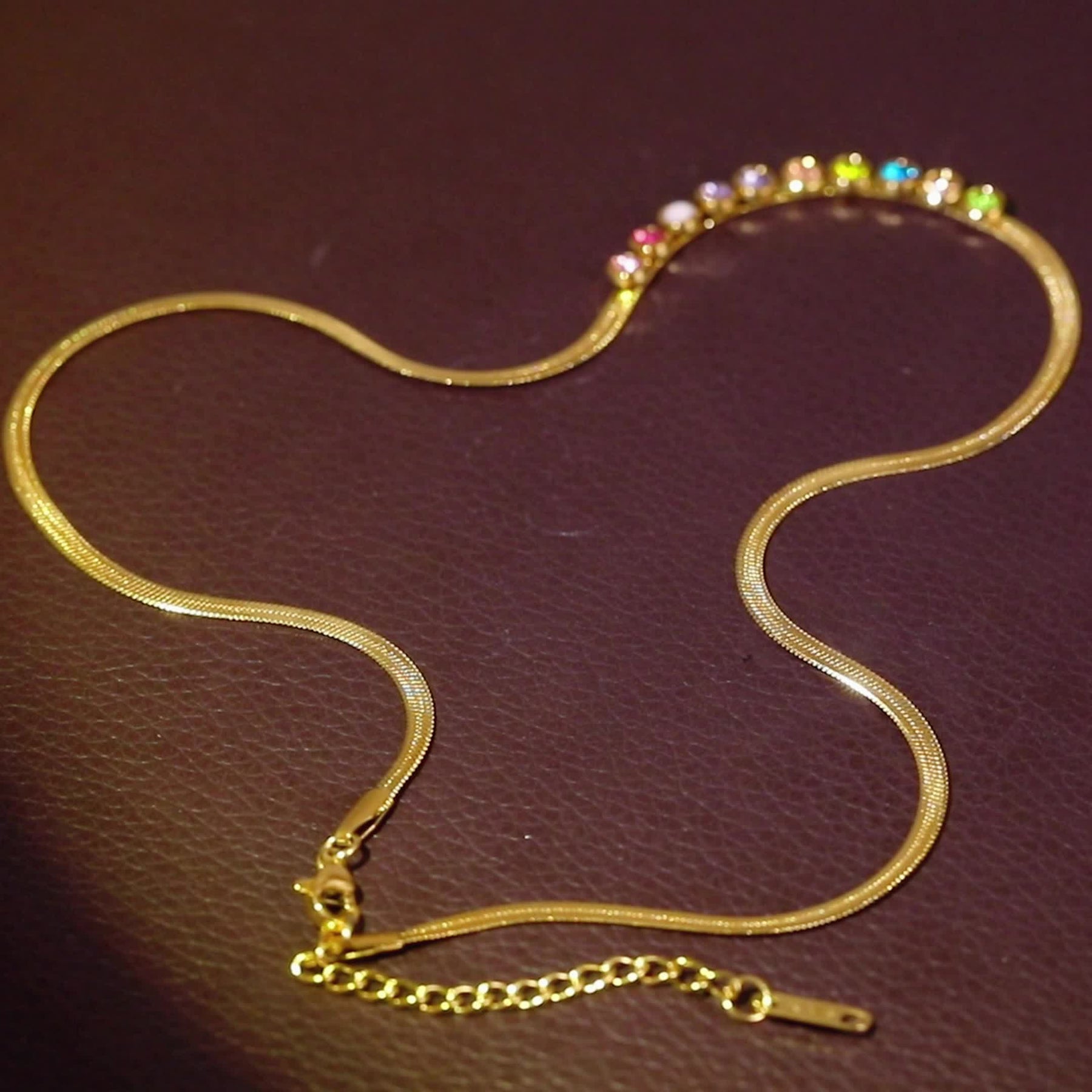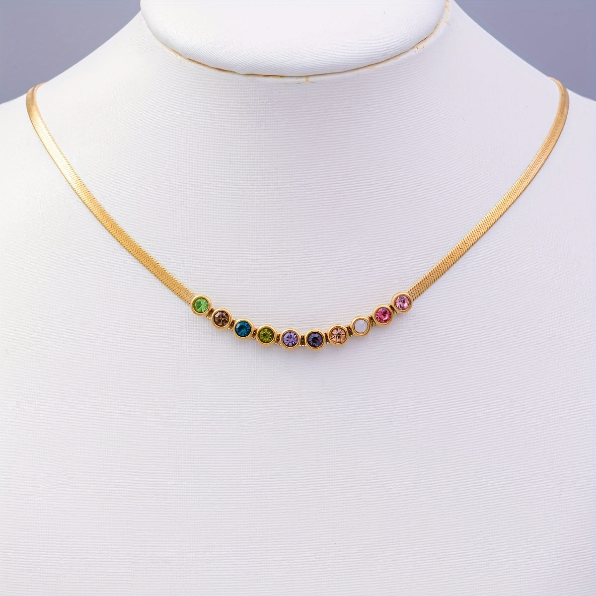 Add a touch of glamour with this colourful rhinestone pendant necklace. Made from stainless steel, it's a perfect accessory for any outfit.