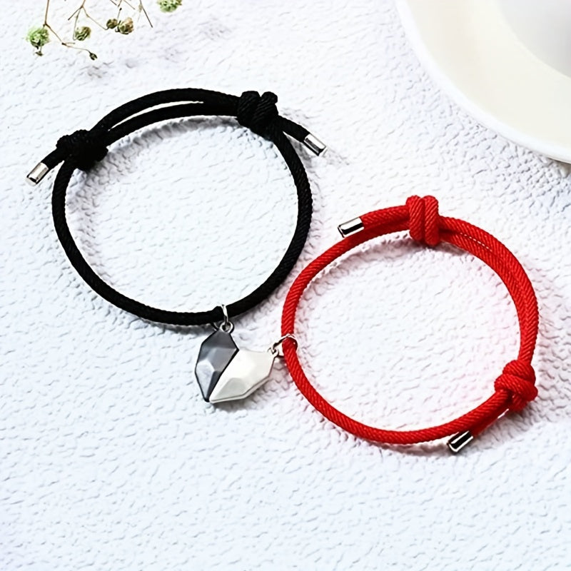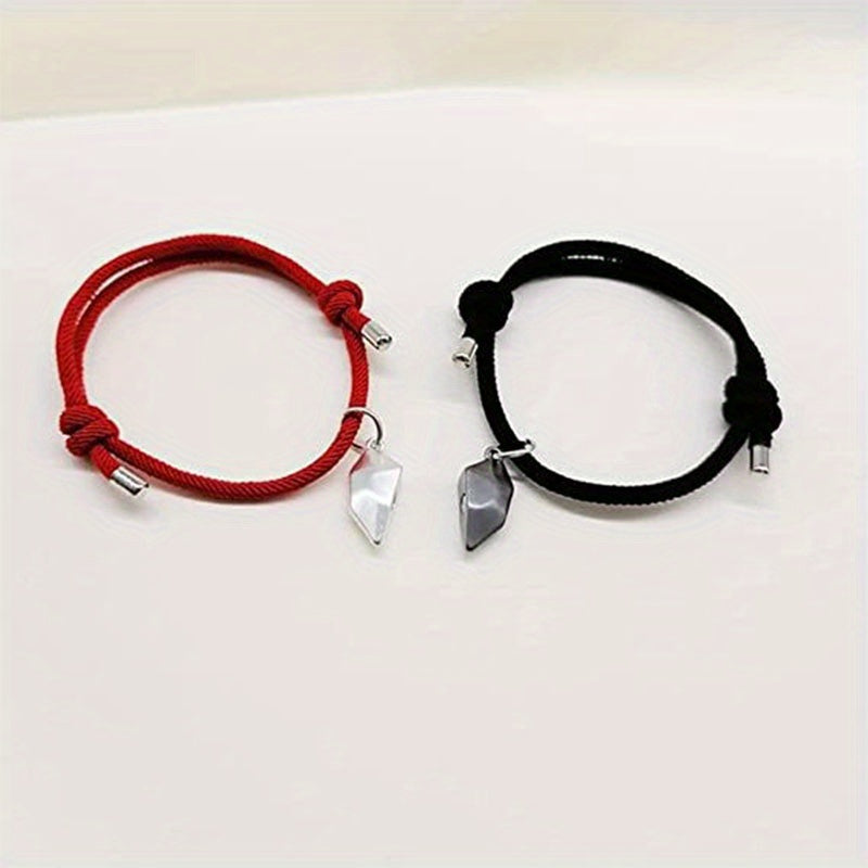 This set includes a pair of matching bracelets with stone vows and lettering on a lucky stone. Perfect for couples to wear as a symbol of their love and commitment.