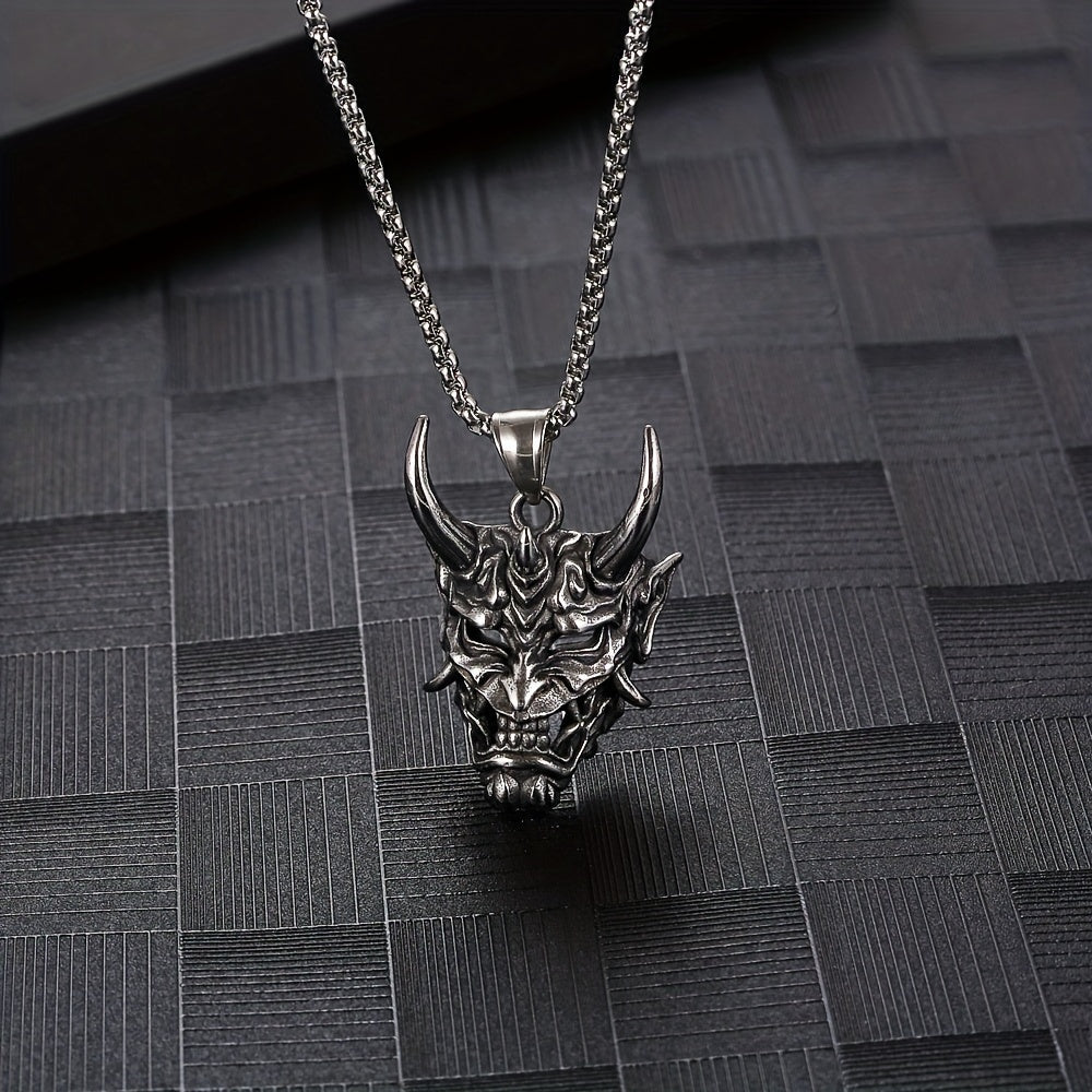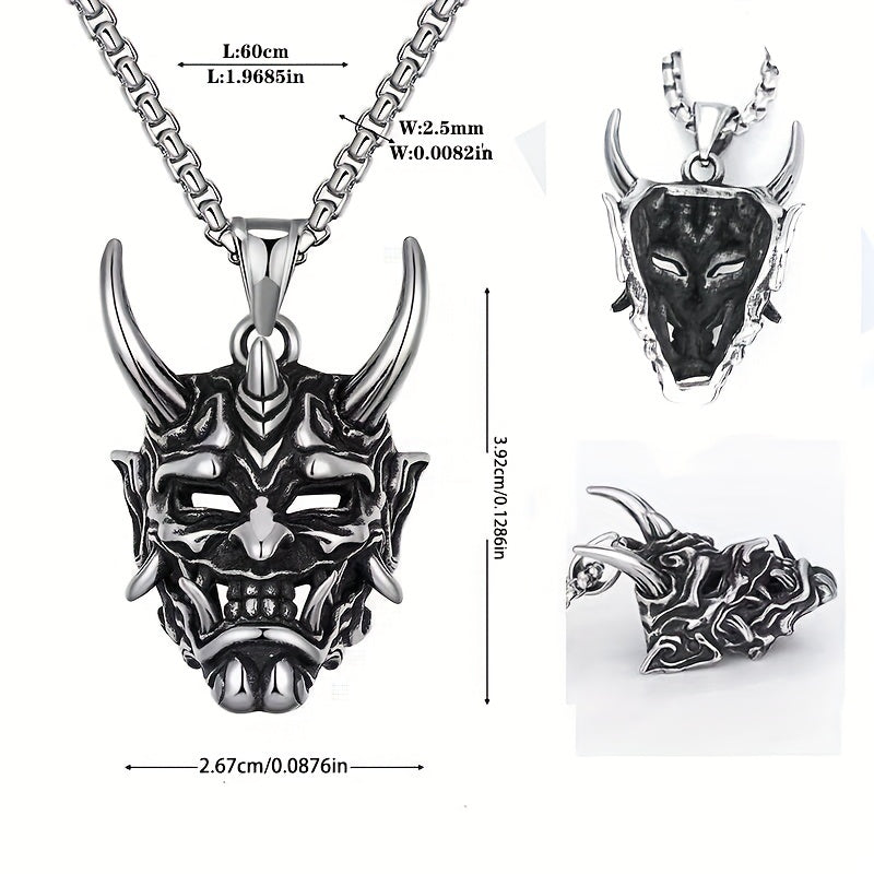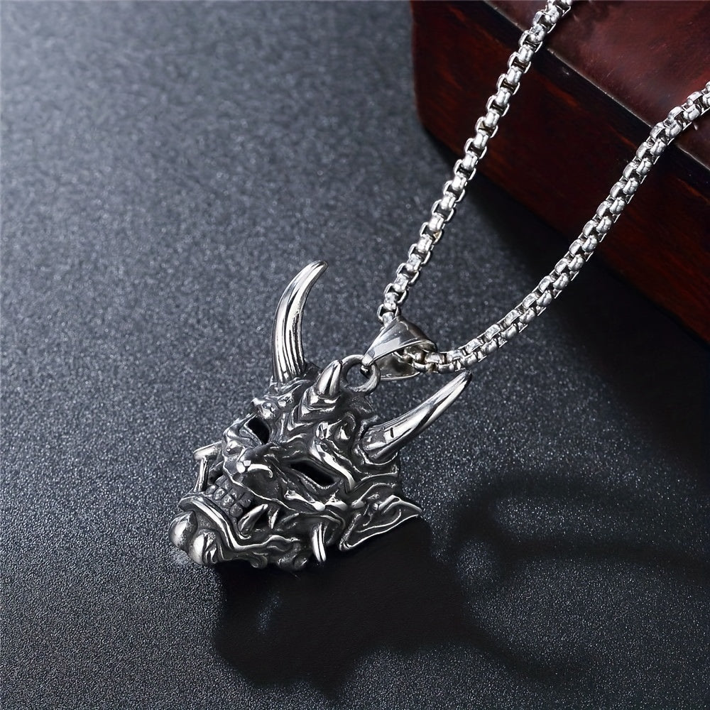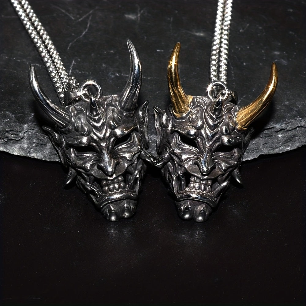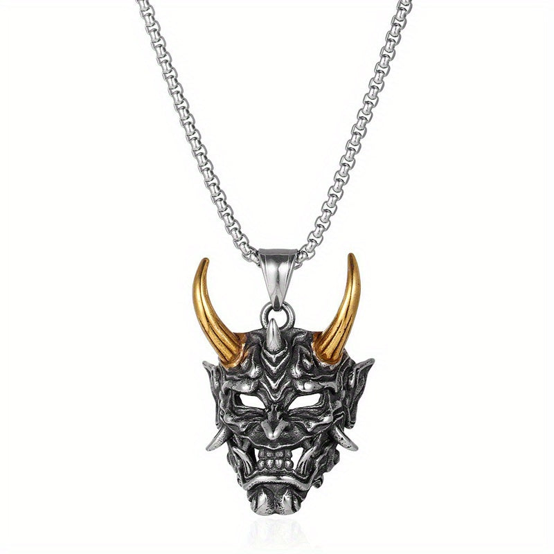 Cow Head Pendant Golden Horn Stainless Steel Men's Ghost Mask Necklace
