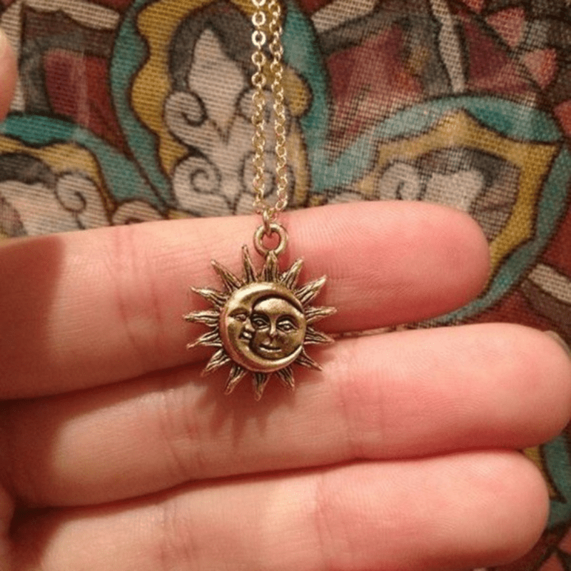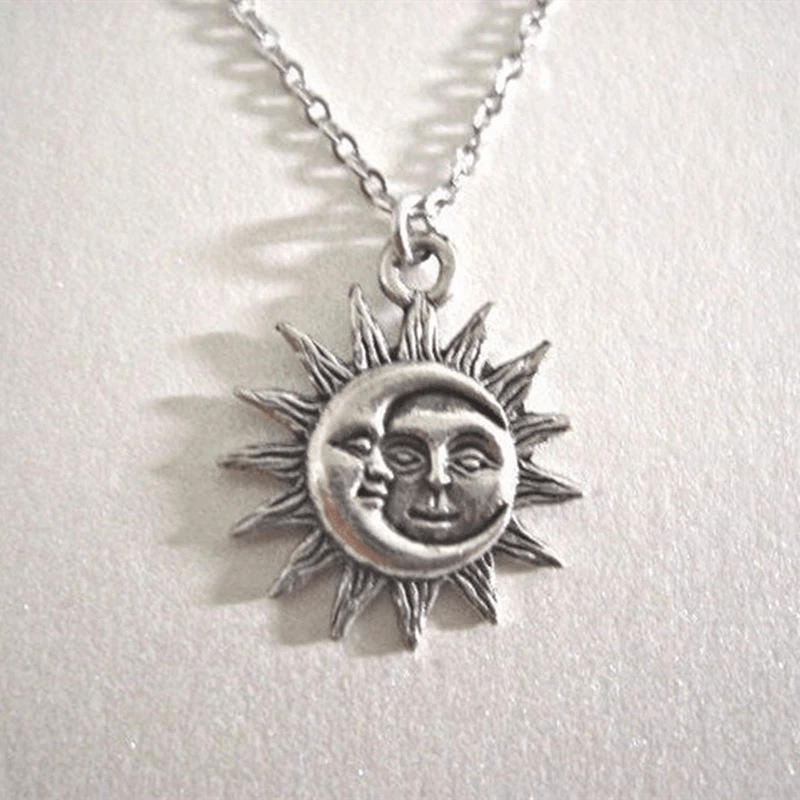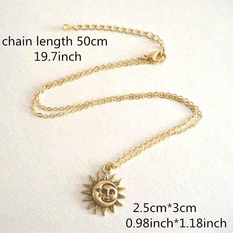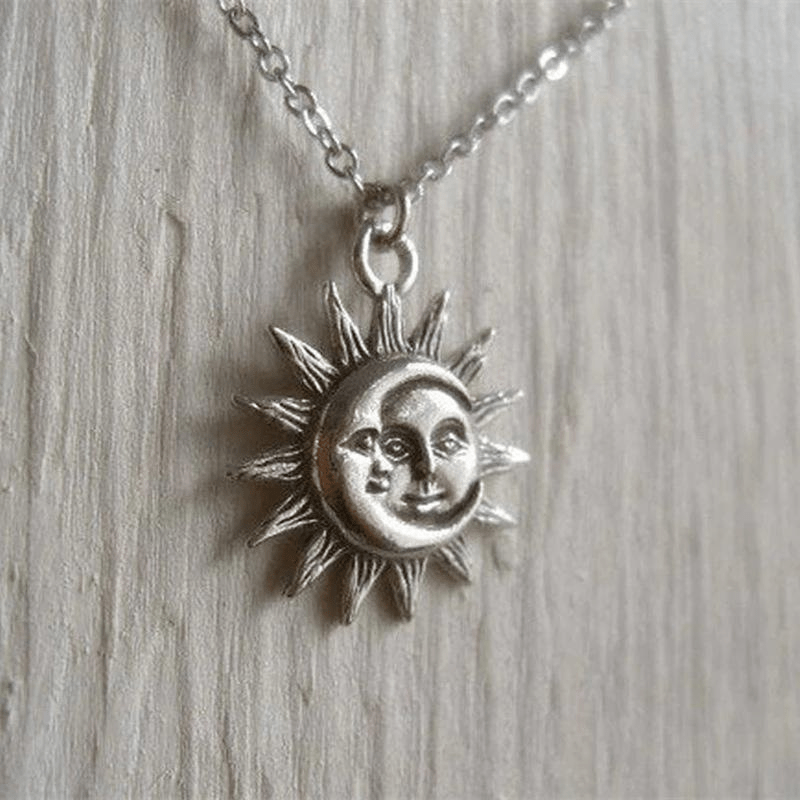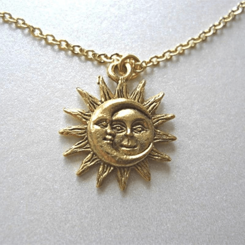 Express your unique style with this stunning sun and moon pendant necklace that will add a touch of celestial charm to your outfit.