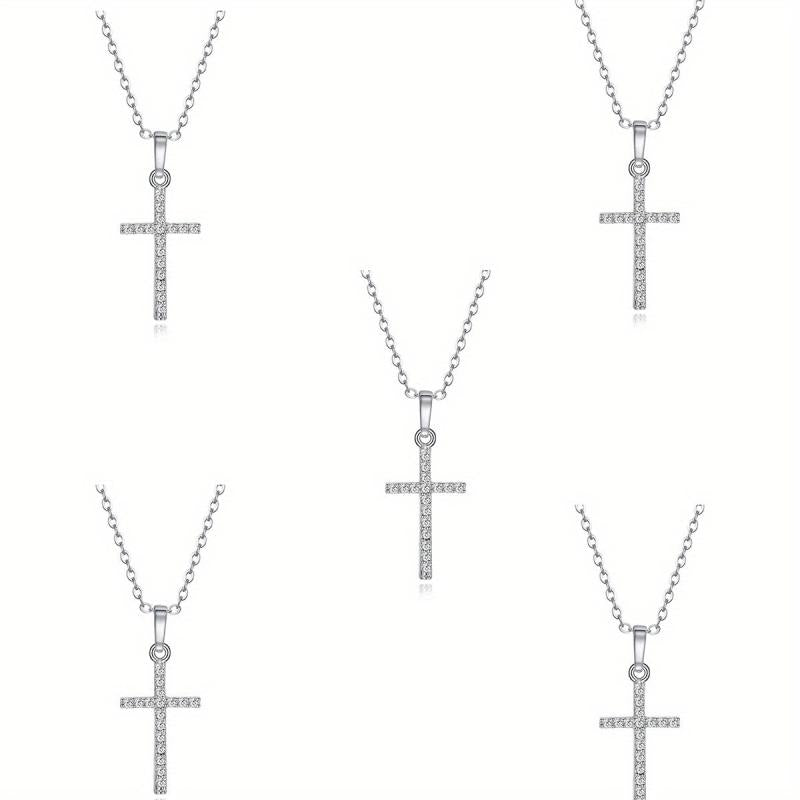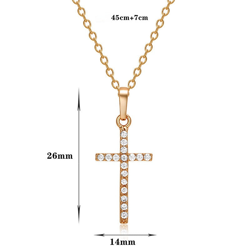 This elegant necklace features a cross design with inlaid zircon, making it a perfect accessory for any outfit.