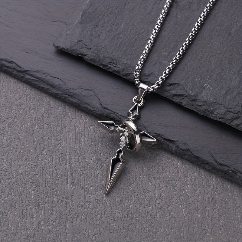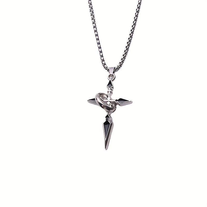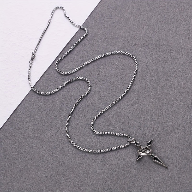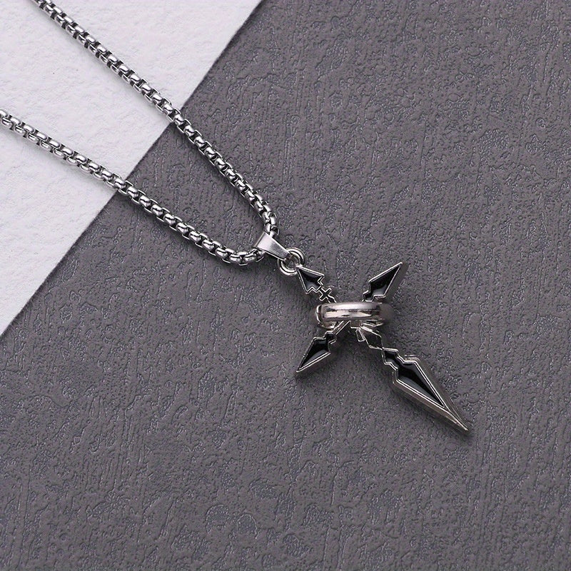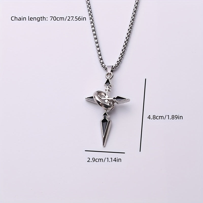 This stylish pendant necklace is a perfect accessory for men. It features a cross pendant with a ring, making it a trendy hip hop street style statement piece. Ideal gift for boyfriend and girlfriend.