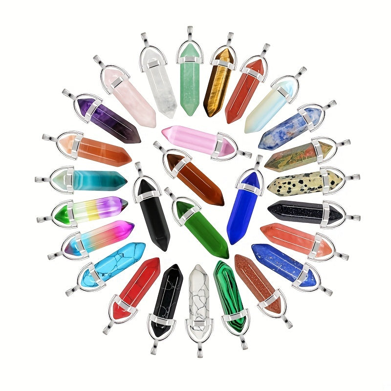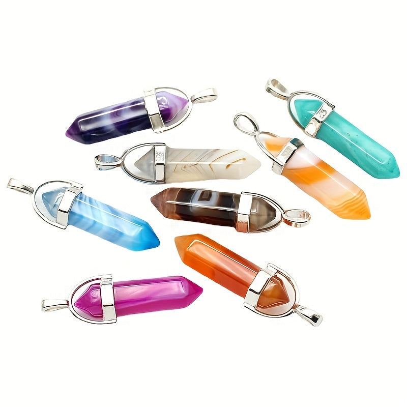 Crystal Agate Natural Stone Hexagon Column Pendant