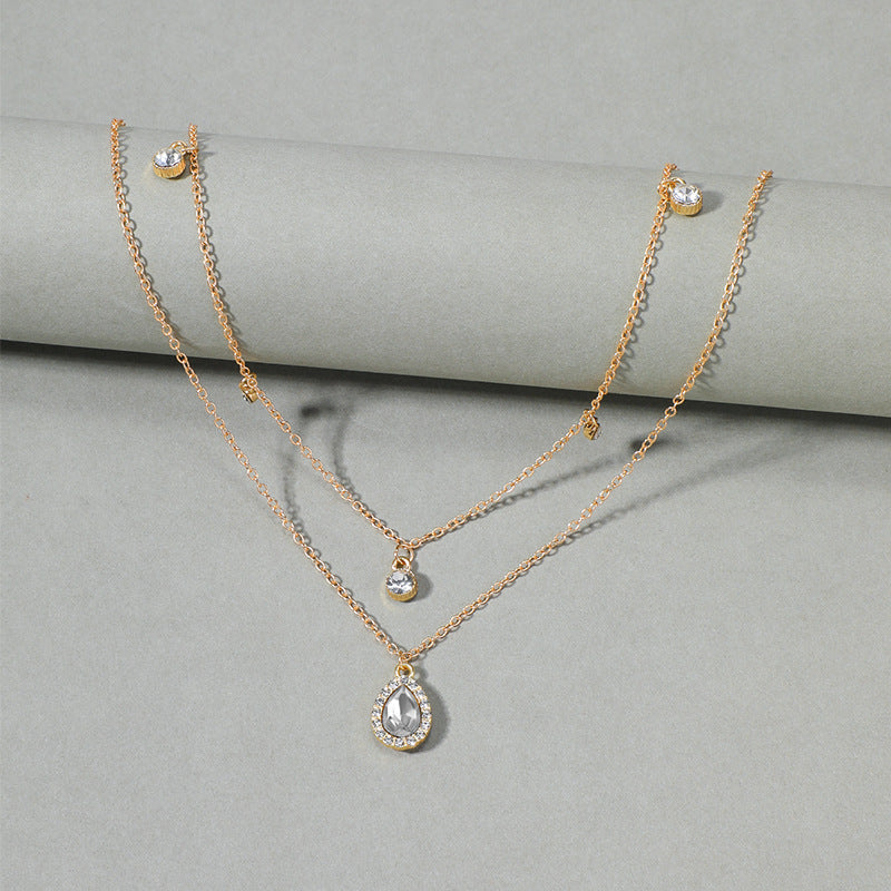 Add a touch of elegance to your look with this stunning crystal geometric pendant necklace. This necklace features a golden finish and is adorned with sparkling rhinestones for a vintage-inspired appeal.