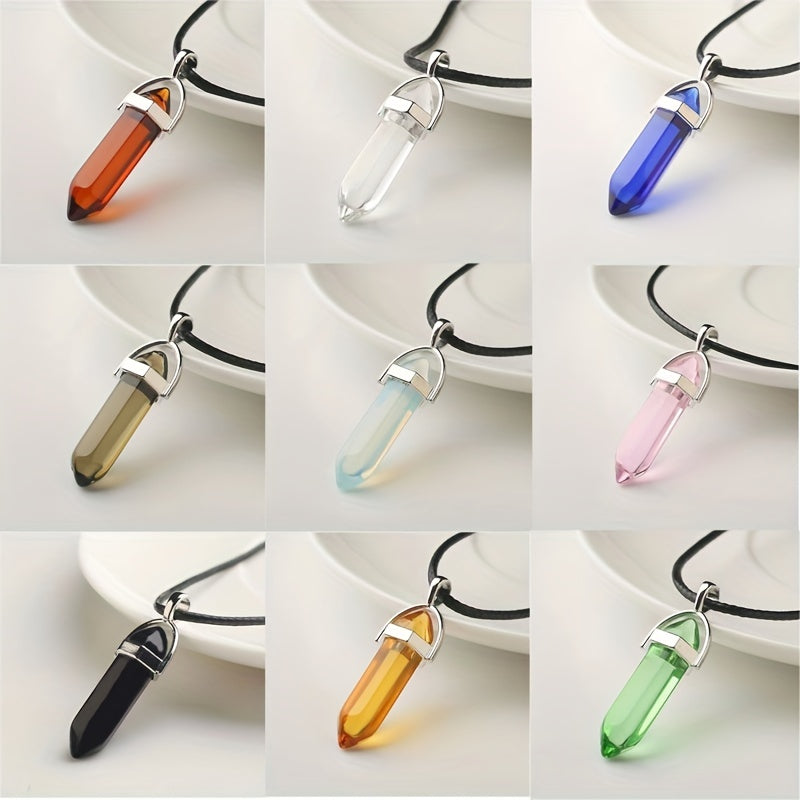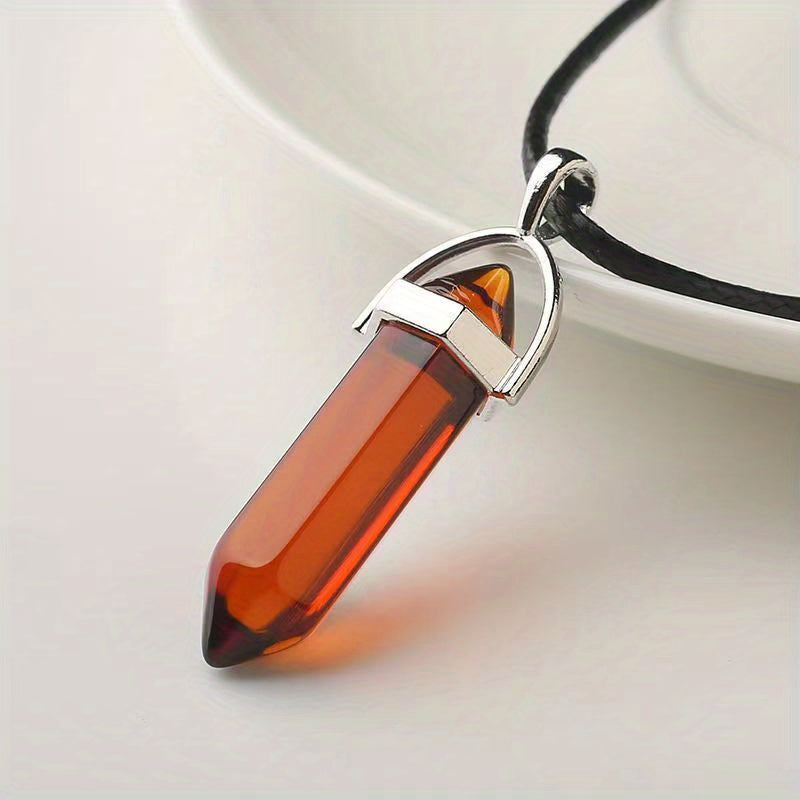 This stunning crystal hexagonal column pendant necklace is a chic accessory that adds a touch of elegance to any outfit.