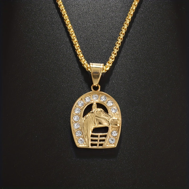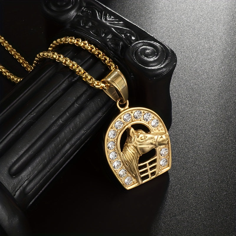 This stunning crystal horse head pendant necklace is the perfect accessory for men who love horse racing. It makes a great gift for any horse rider or racing enthusiast.