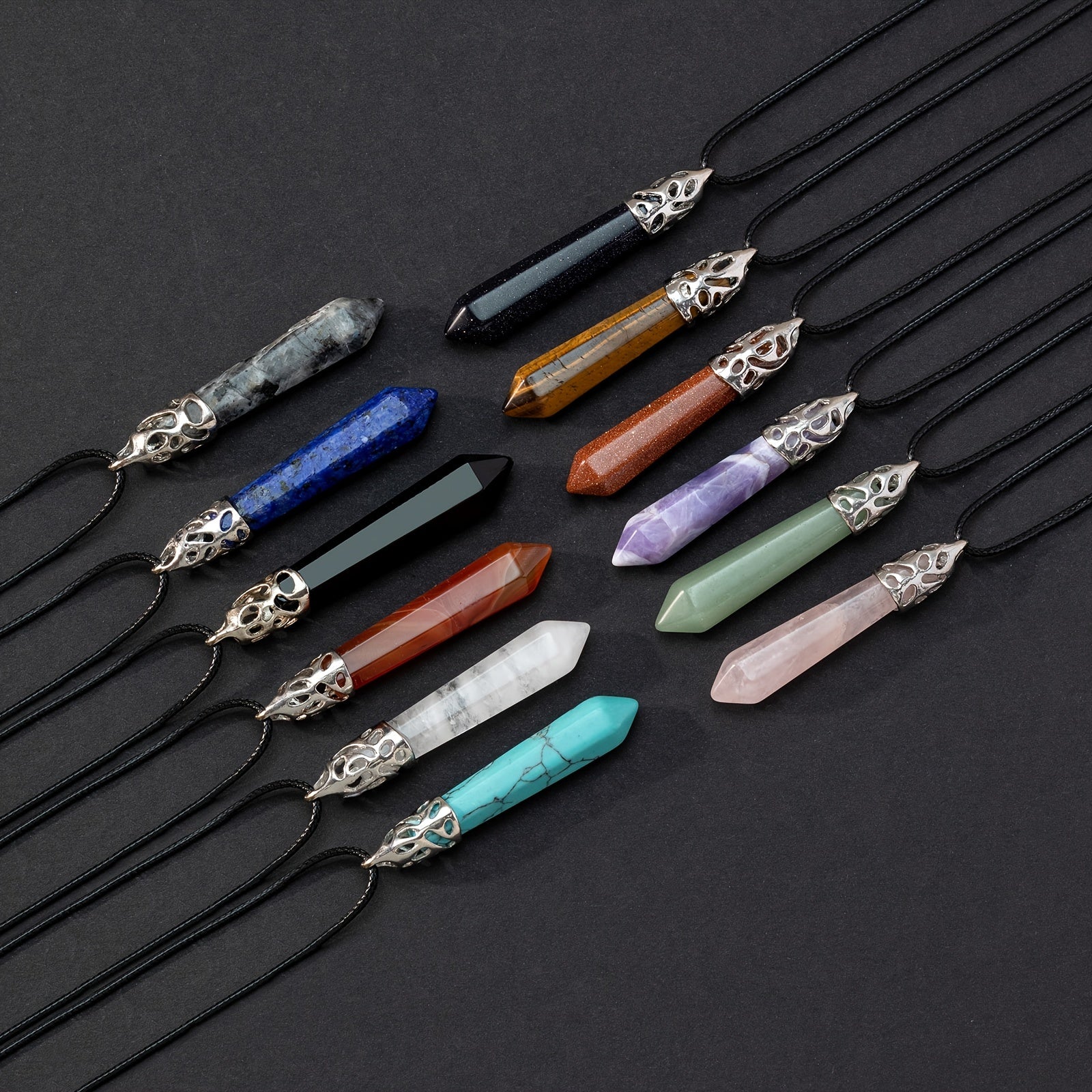 Enhance your style with this beautiful crystal pendant rope chain necklace featuring hexagonal gemstone and chakra pendant. Perfect for any occasion!