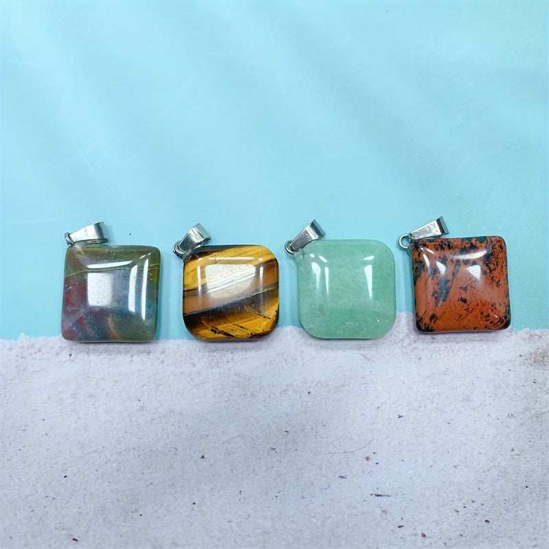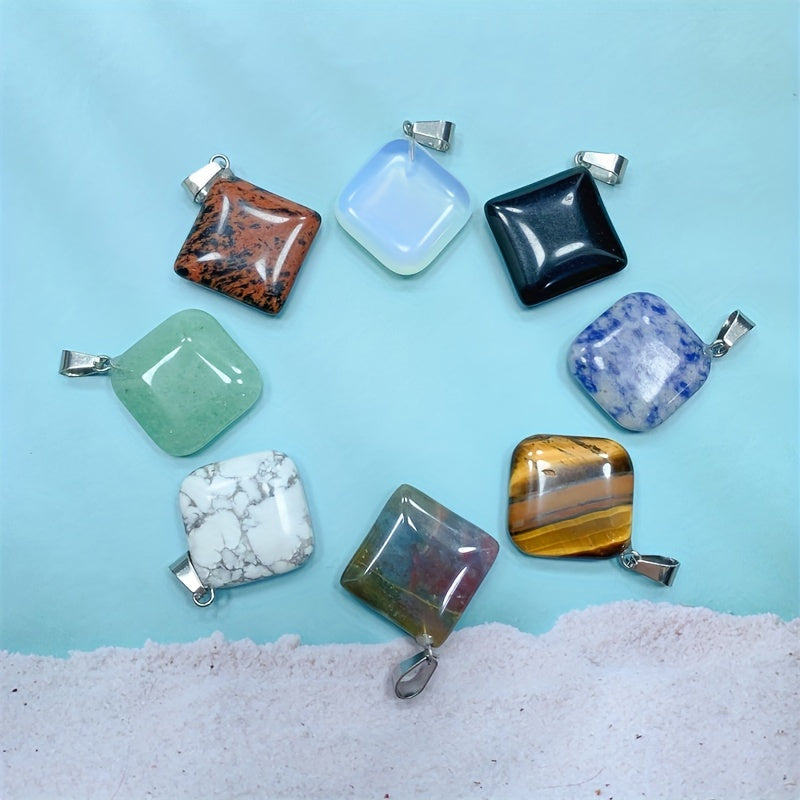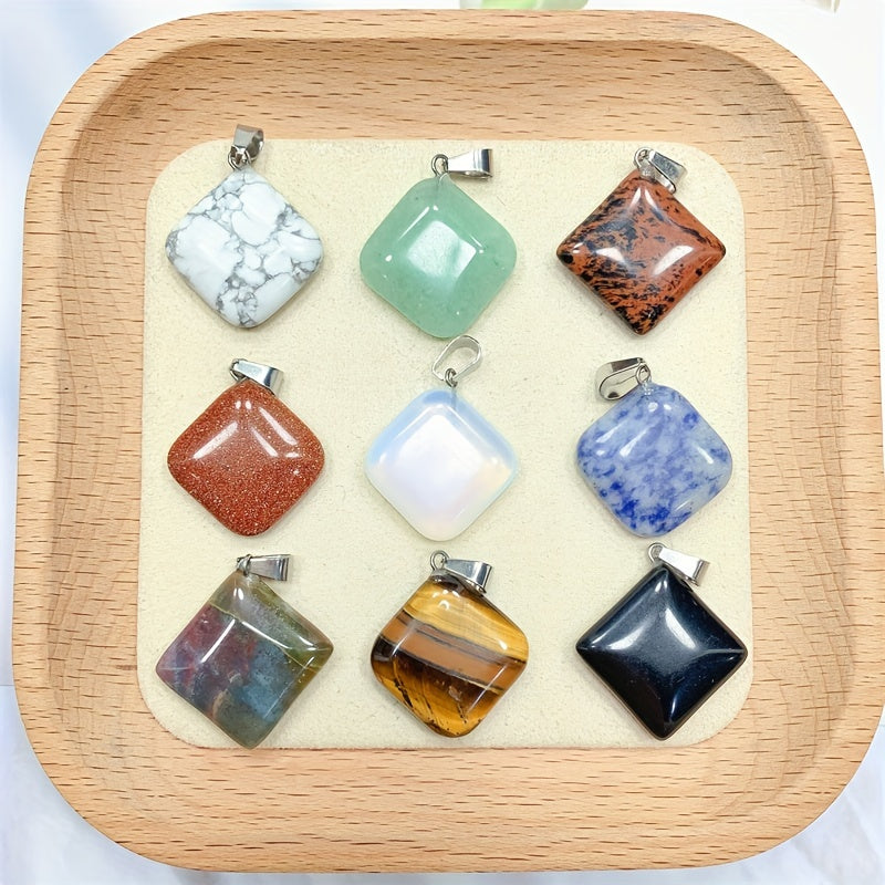 Elegant crystal pendant featuring a square shaped design with a mix of healing stones, perfect for making necklaces and jewelry.
