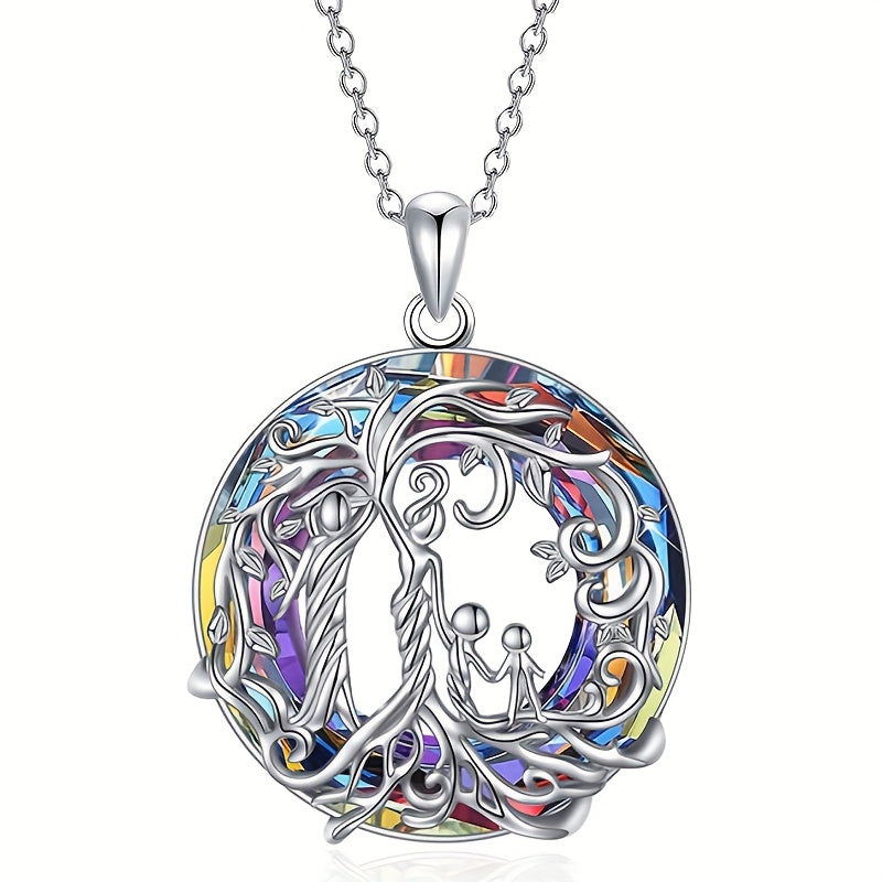 Elegant Tree Of Life necklace with crystal pendant, perfect for banquets, parties, or as an anniversary gift. Ideal for wife, daughter, or mom.