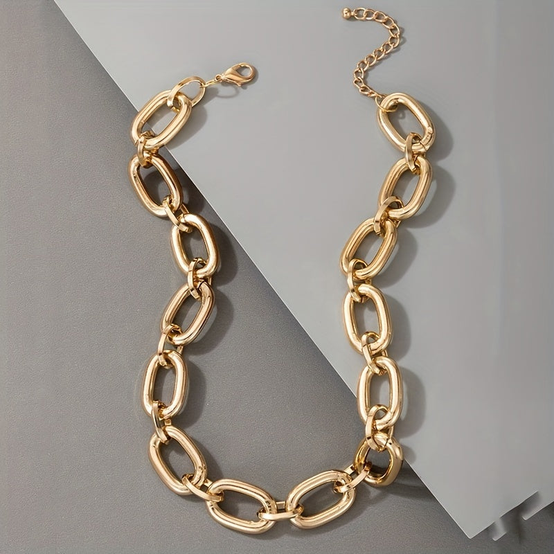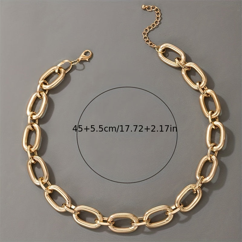 Unique and stylish Cuban lock oval ring chunky necklace made of high-quality 18K plated material. Perfect unisex neck jewelry gift for women.