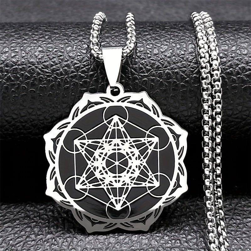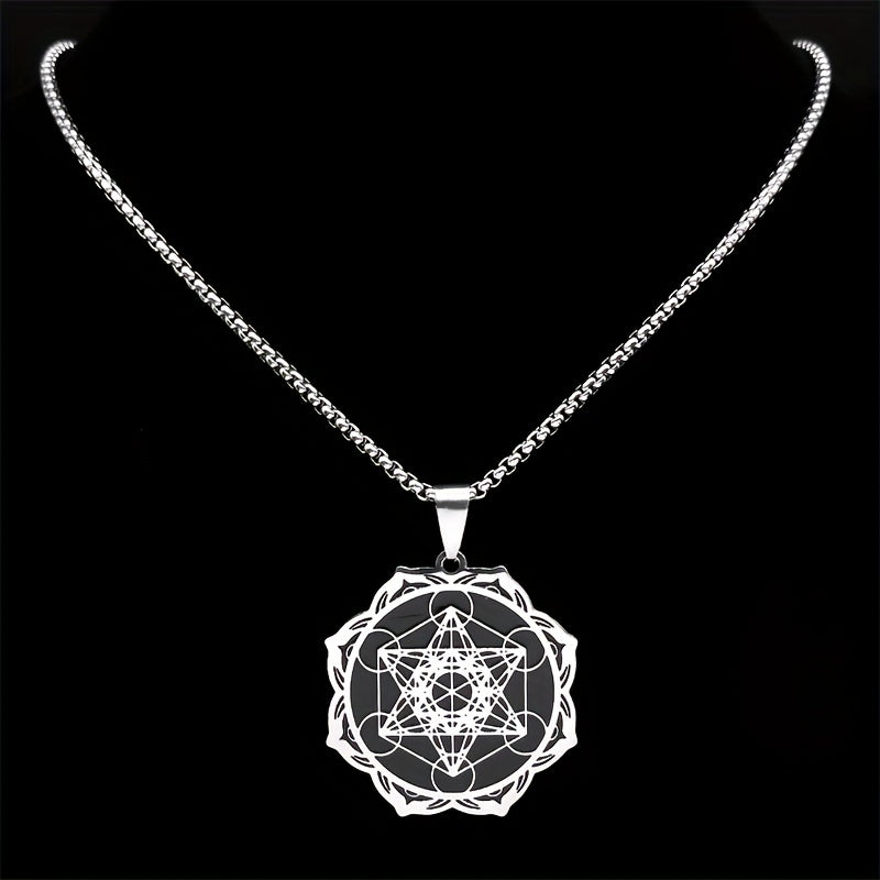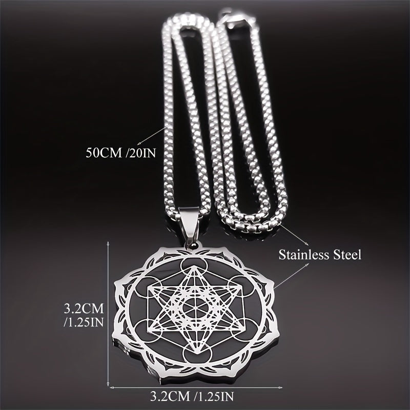 This stylish cube necklace is made of stainless steel and features a chakra flower lotus design. It is perfect for men and makes a great Christmas or birthday gift.
